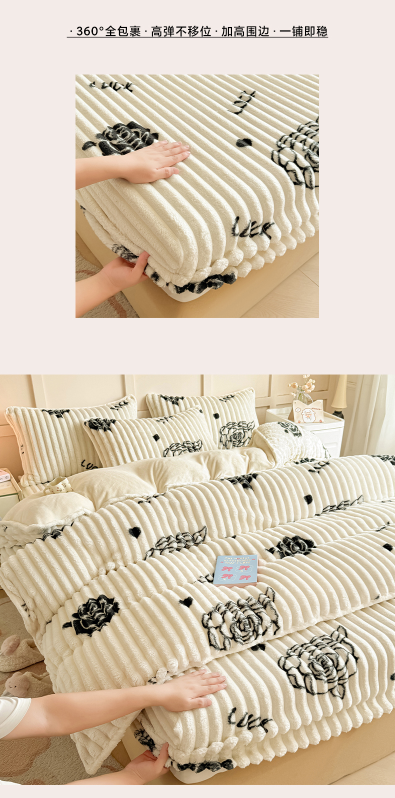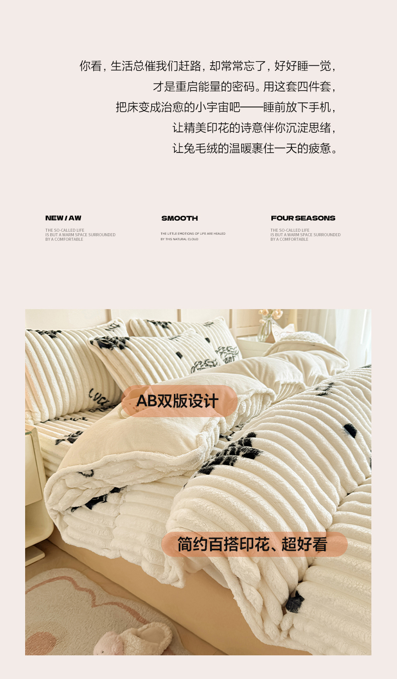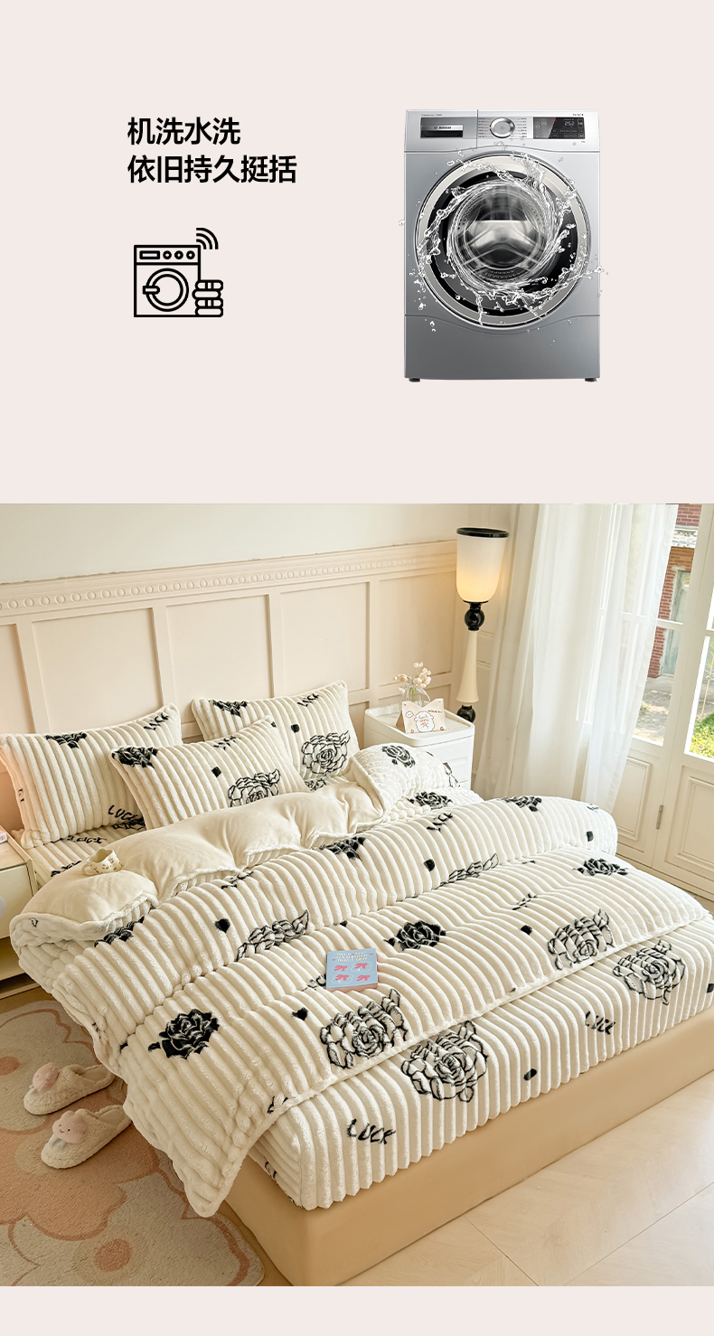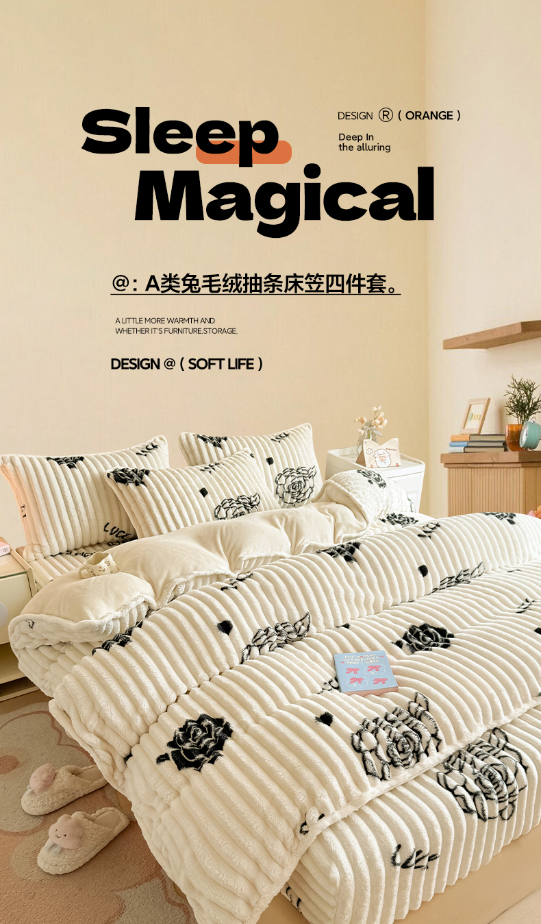 当前位置: 91家纺网 > 商品网购 > 床品套件 > 四件套 > 牛奶绒四件套 > 眠势力 2025新款兔兔绒抽条印花床笠款四件套冬季兔绒加绒保暖四件套 幸运玫瑰