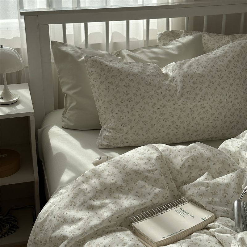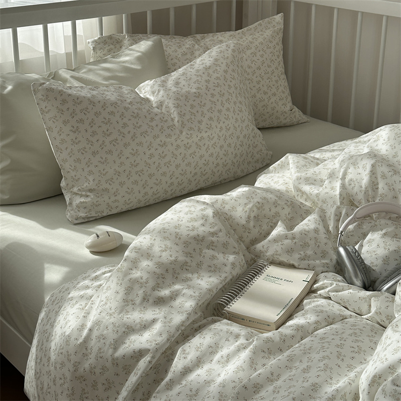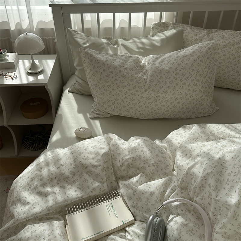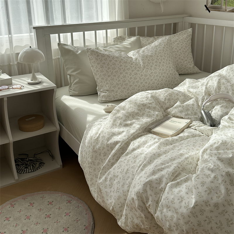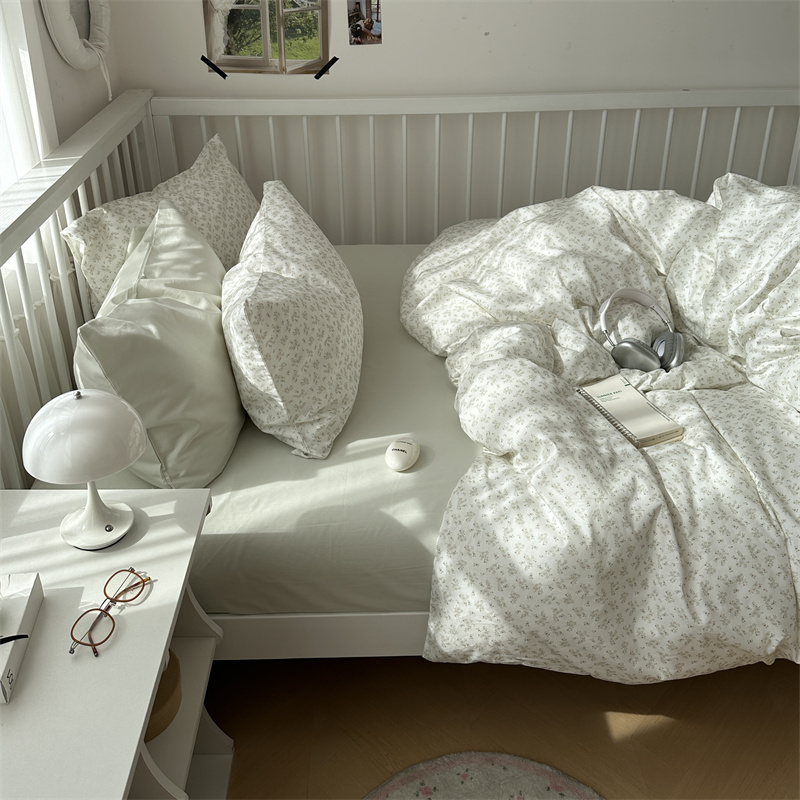 (总)尺素 2025新款田园小清新纯棉四件套出口韩国ins博主风全棉被套纯色加大床单1.8床笠印花枕套学生宿舍三件套,春不晚 桃粉,花似锦 奶白,紫鸢千夏紫