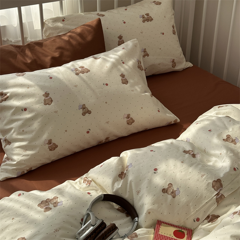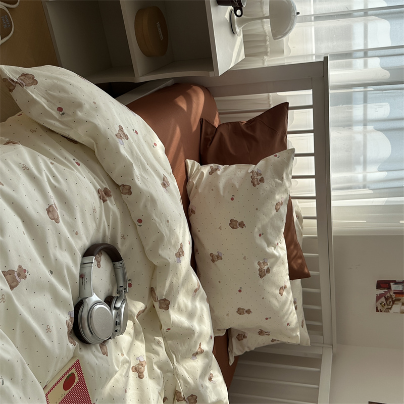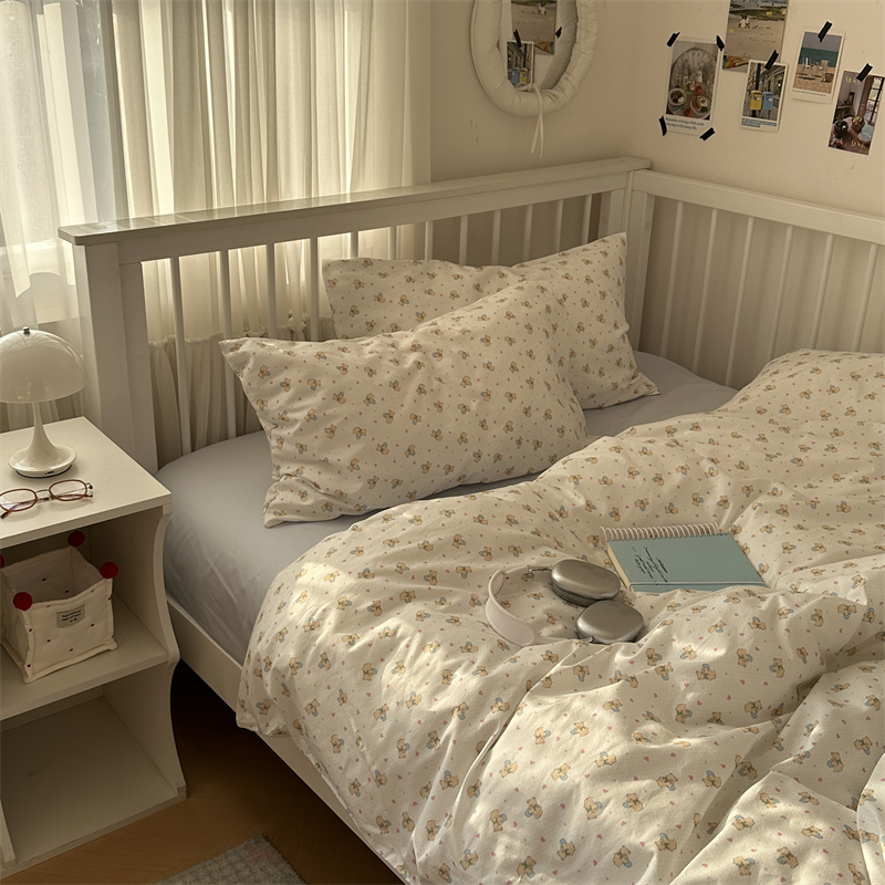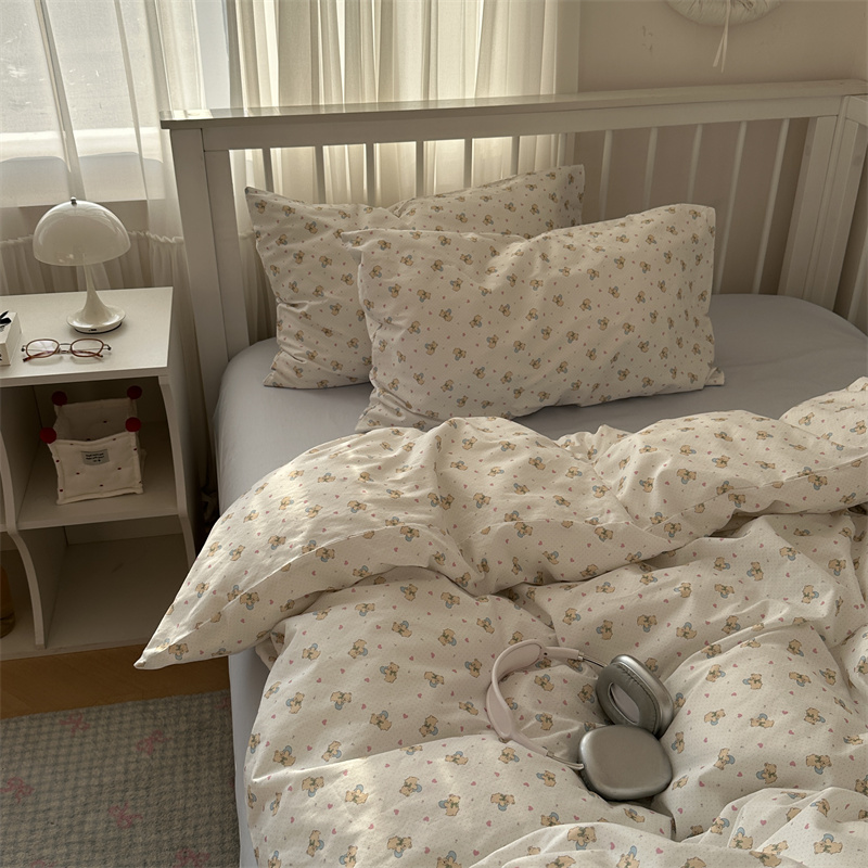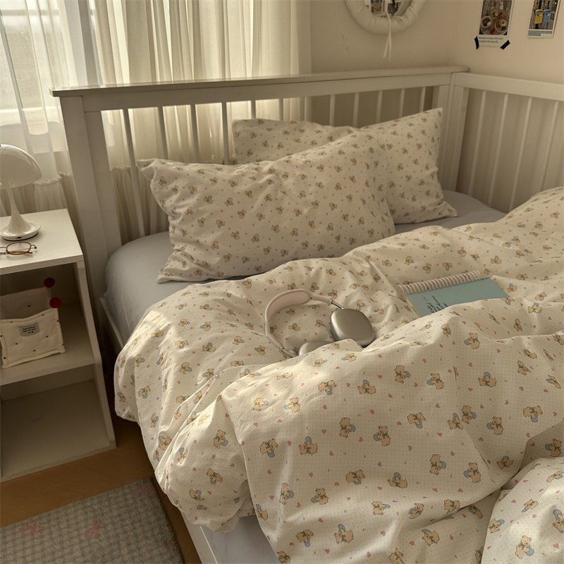 (总)尺素 2025新款纯棉卡通ins风四件套可爱少女风全棉被套纯色1.8床笠加大床单学生1.2三件套,告白熊--浅蓝,格调粉--奶黄,格调粉--桃粉,蓝白情书--浅蓝,清梦--冰沙绿,清梦--浅黄,小熊软糖--焦糖