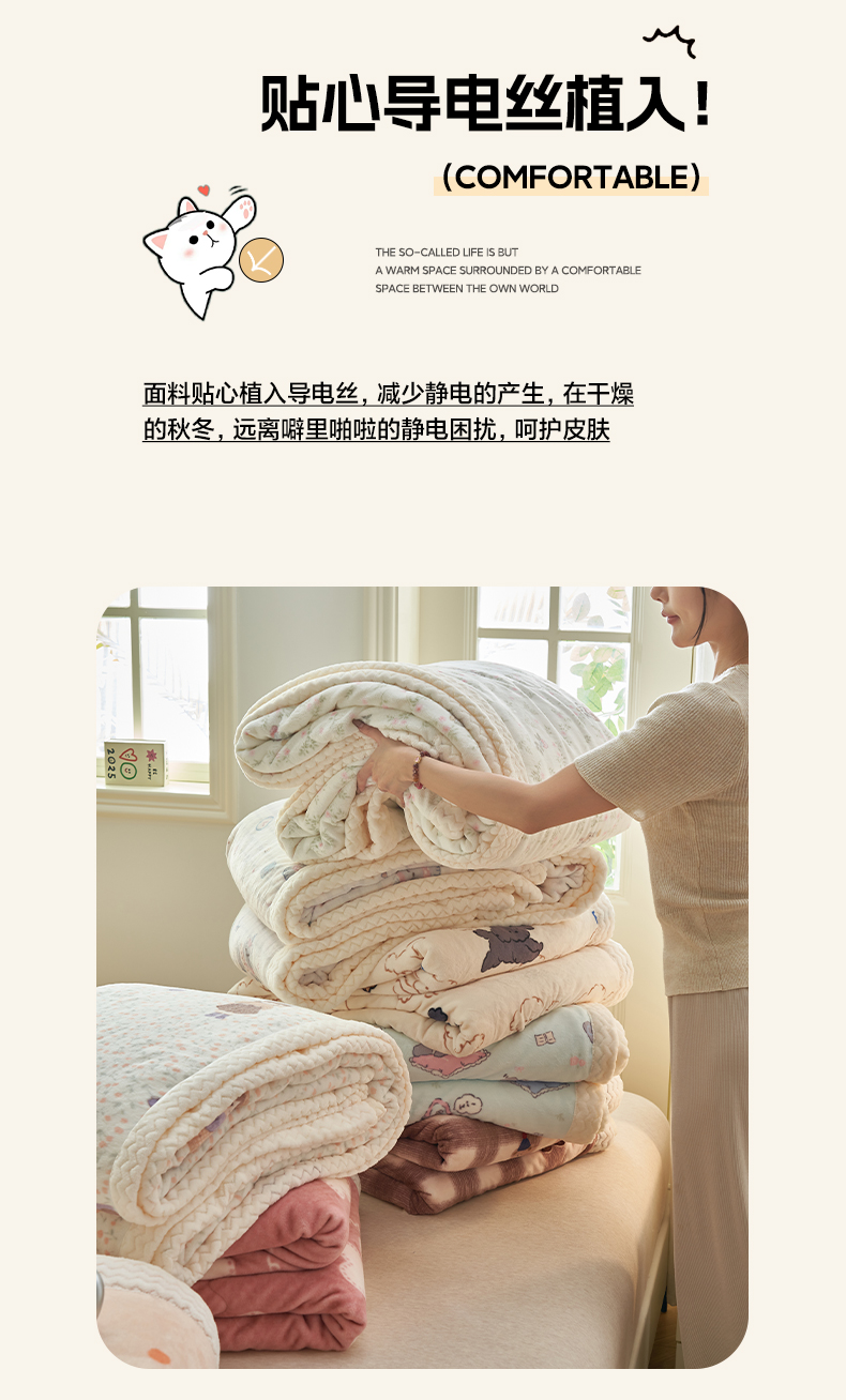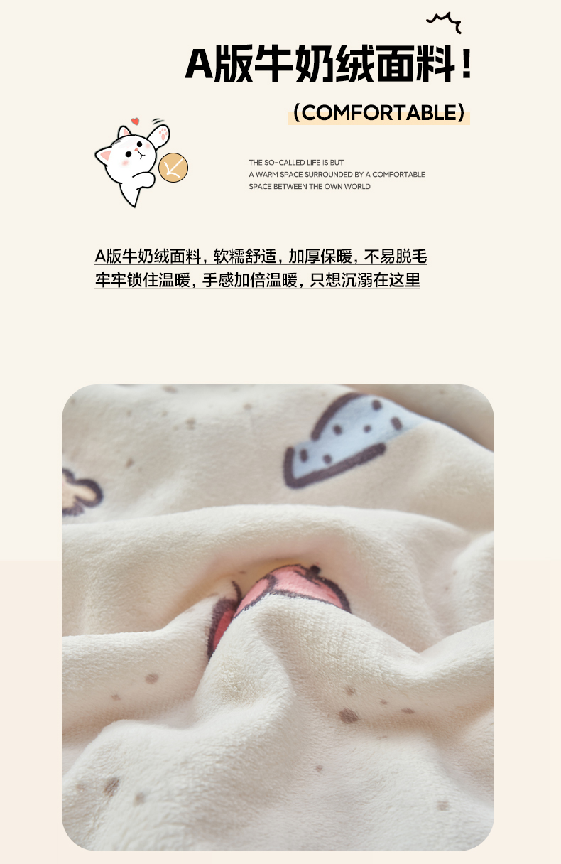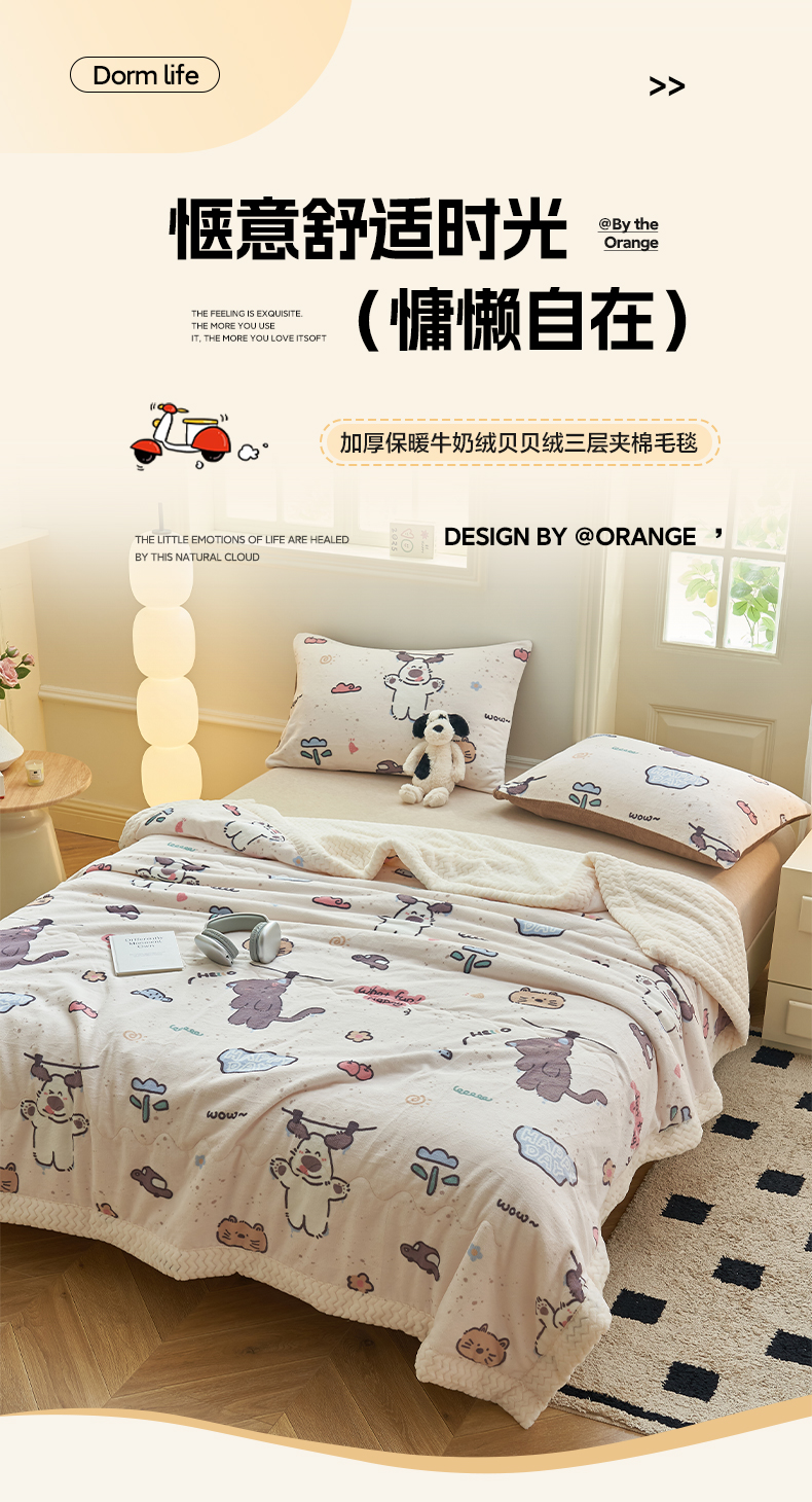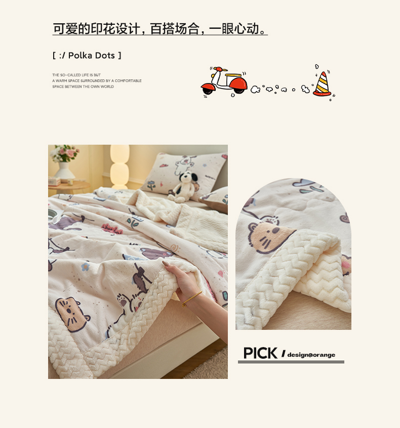 商品名称:晨曦家纺 2025新款加厚保暖牛奶绒贝贝绒三层夹棉毛毯可爱卡通 调皮猫狗