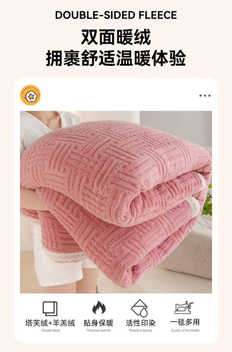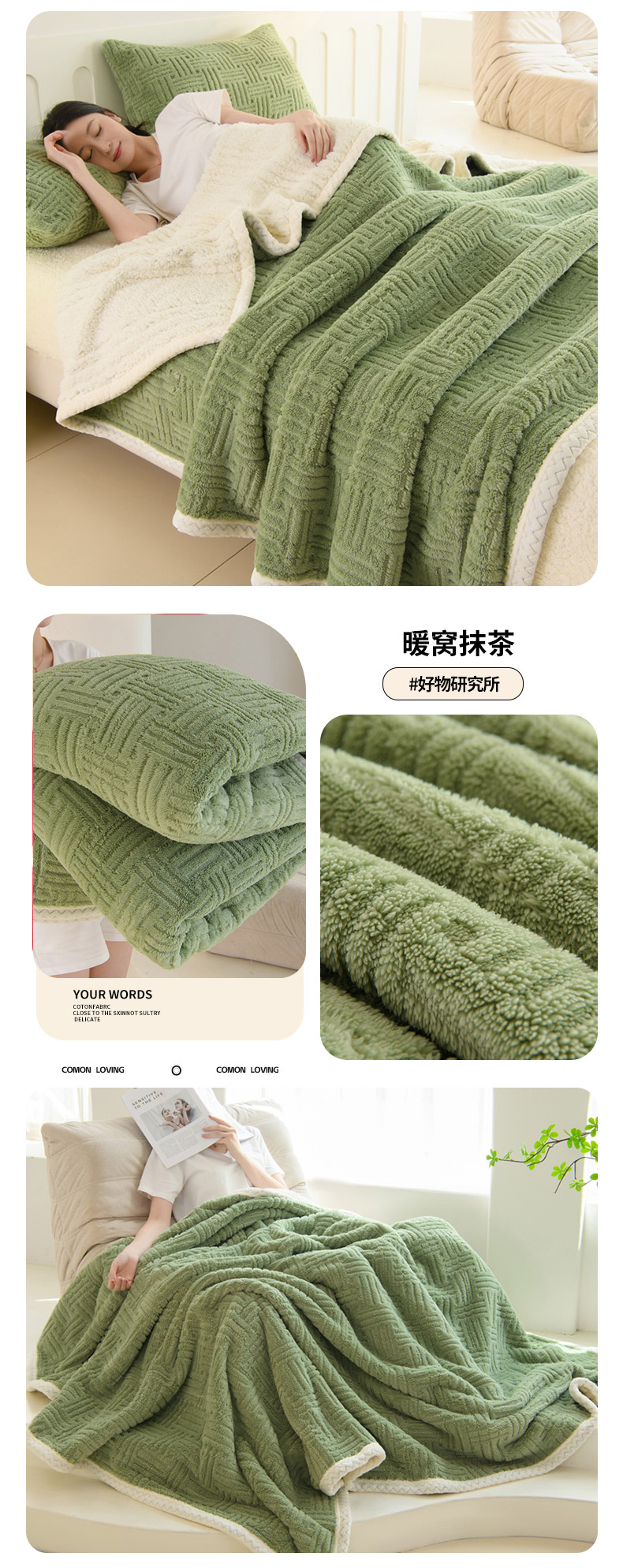 圣楚家纺 2025新款塔芙绒羊羔绒双层毛毯盖毯毯子-暖窝 暖窝抹茶