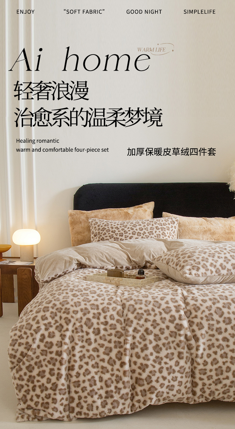 当前位置: 91家纺网 > 商品网购 > 床品套件 > 四件套 > 其它四件套 > ONE TWO ONE 121 2025新款轻奢加厚保暖皮草绒四件套 豹纹摩卡