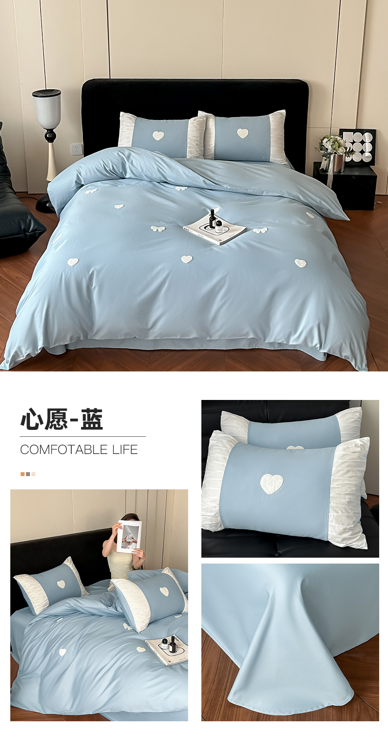 (总)理想家家纺 2025新款纯棉轻奢刺绣四件套-心愿系列,心愿-白,心愿-粉,心愿-红,心愿-蓝