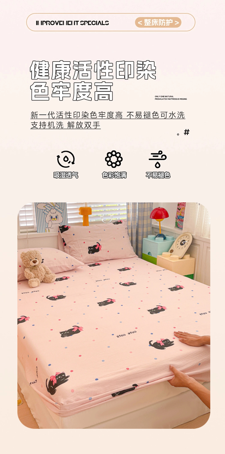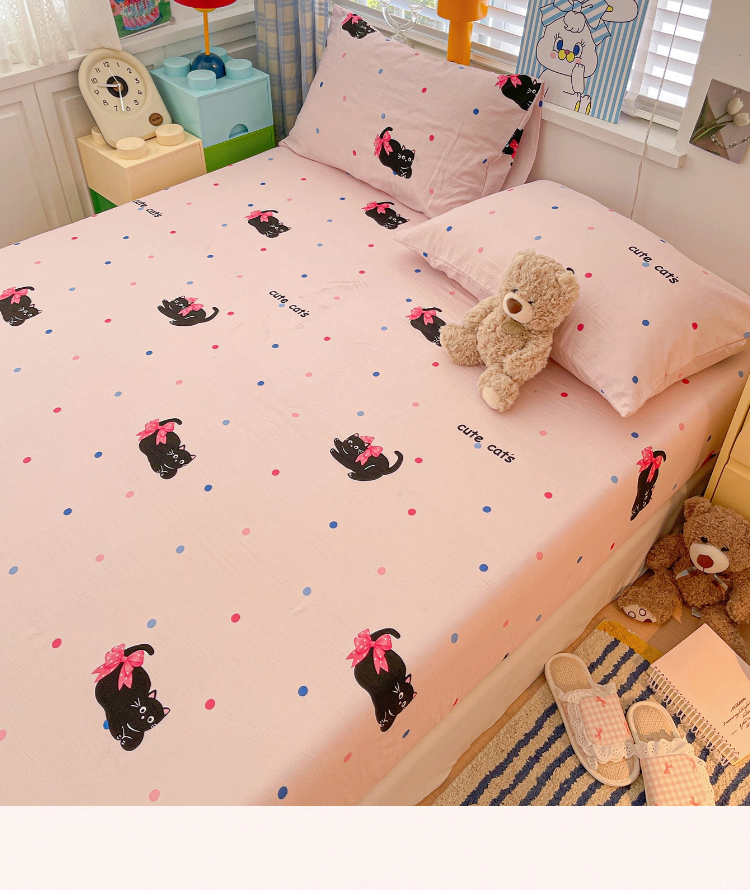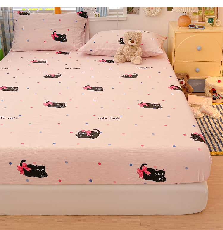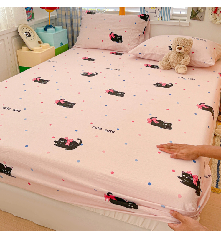 维娜斯家纺 2025新款A类水洗棉双层纱床笠单件 可爱猫咪