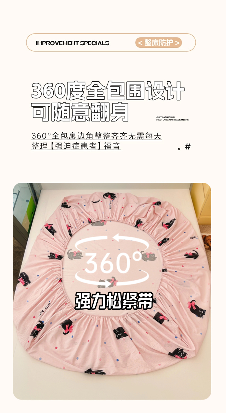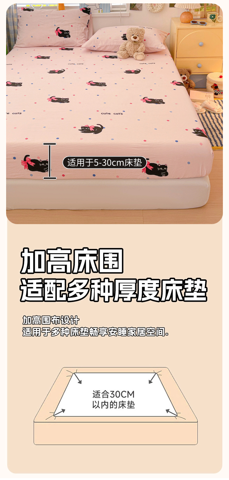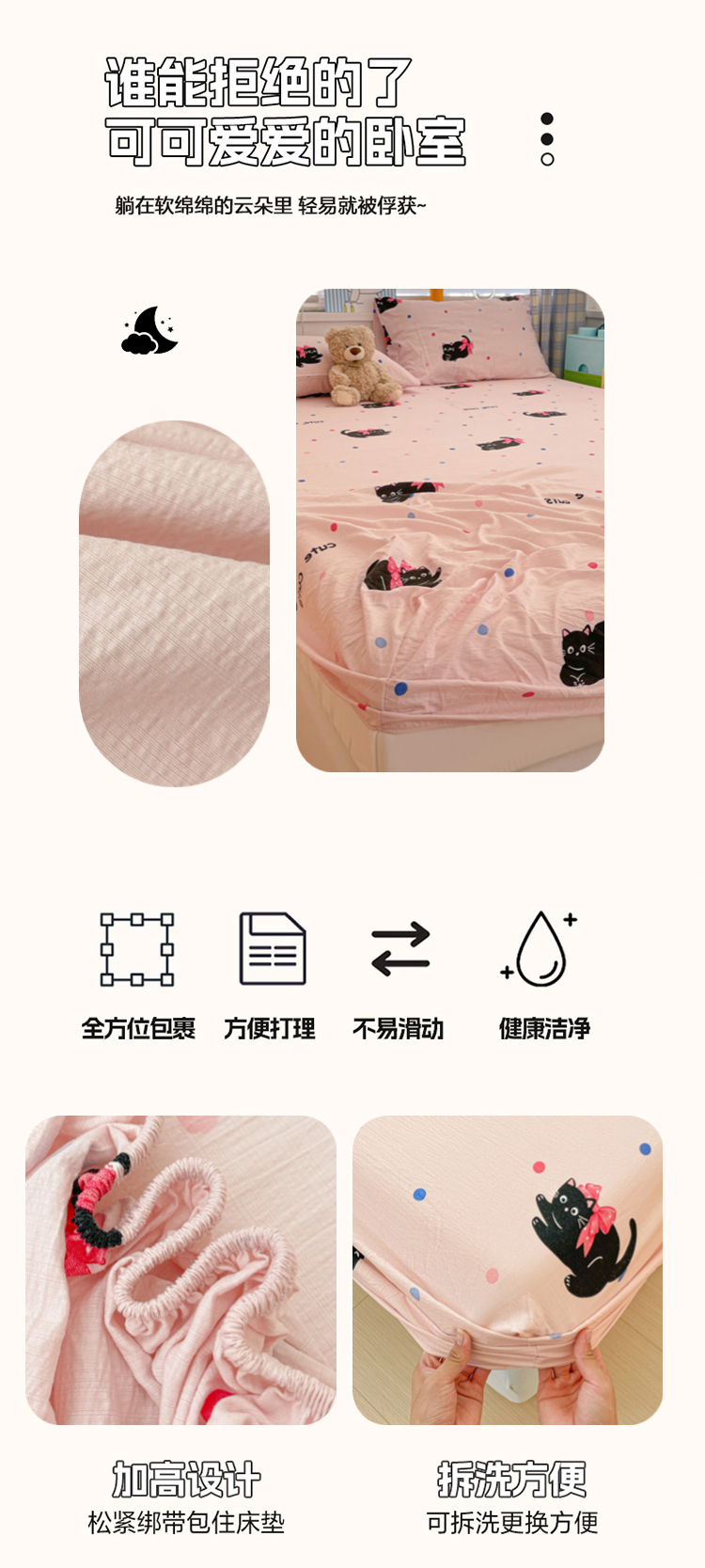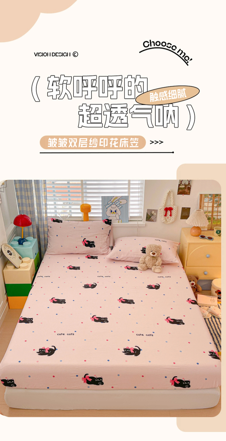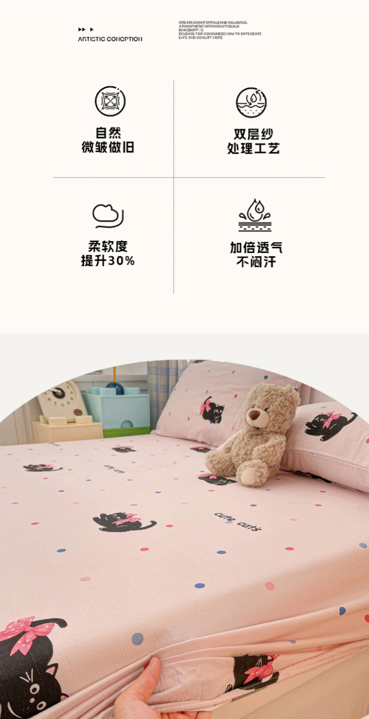 商品名称:维娜斯家纺 2025新款A类水洗棉双层纱床笠单件 可爱猫咪