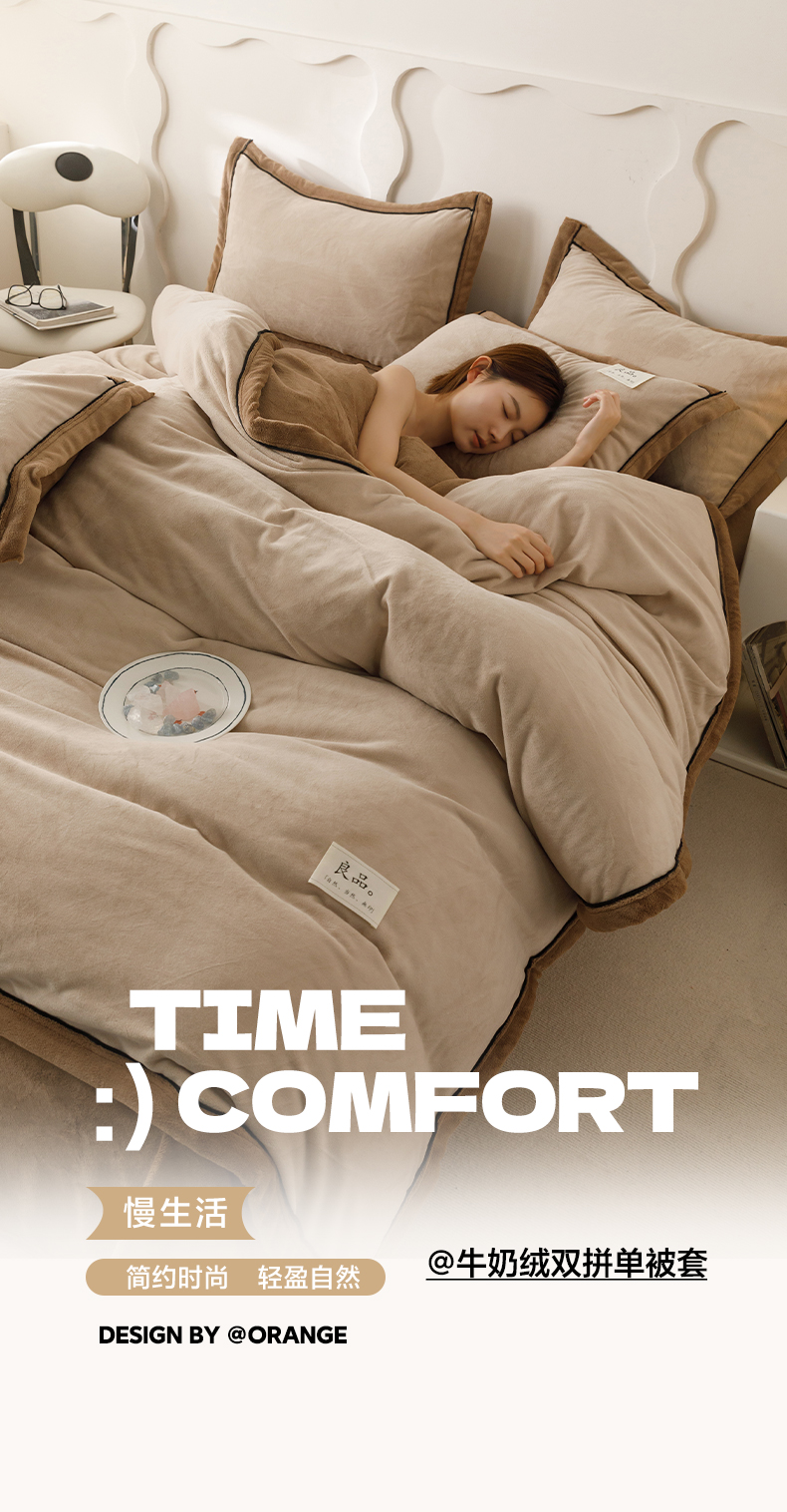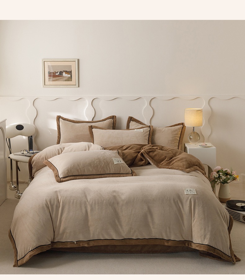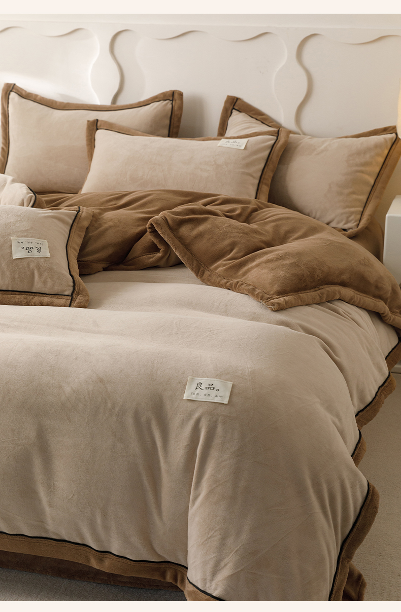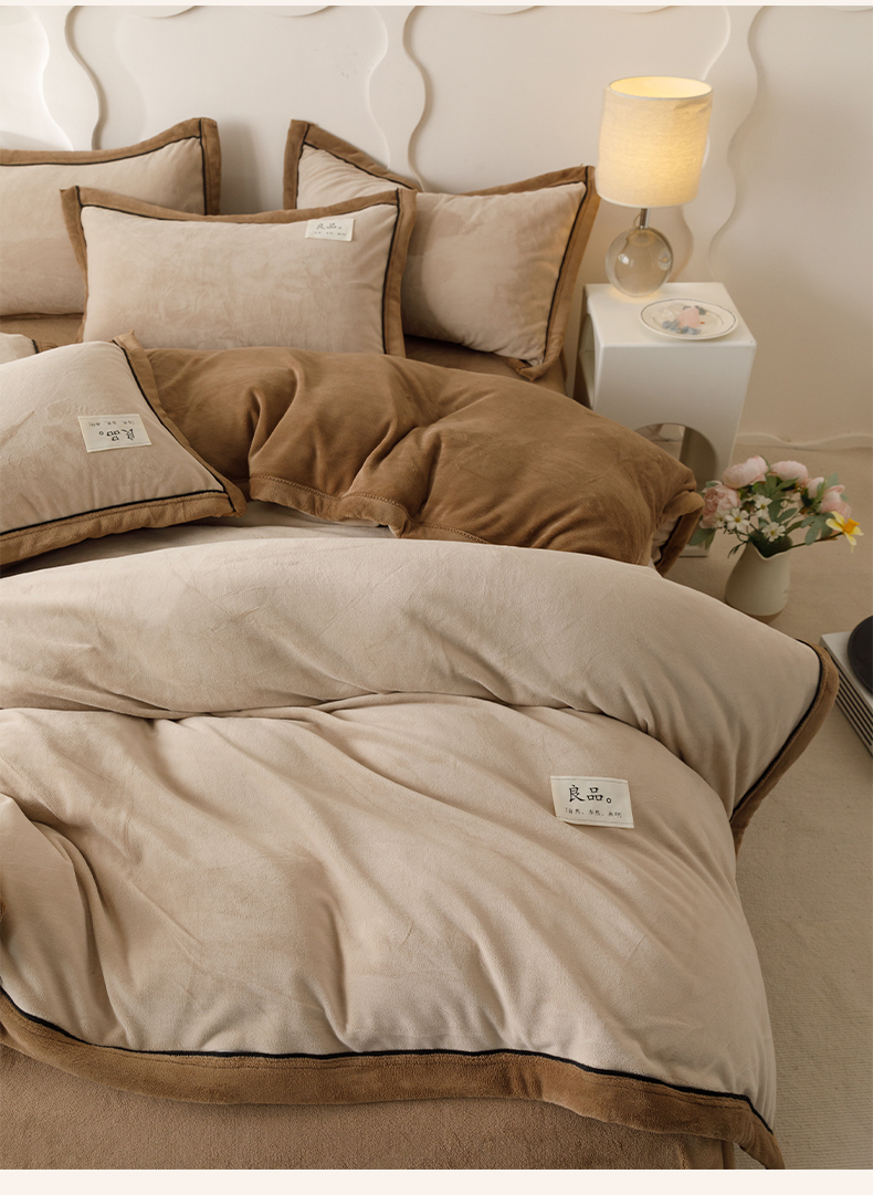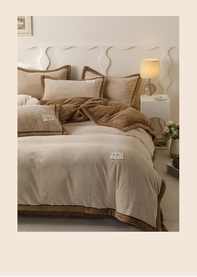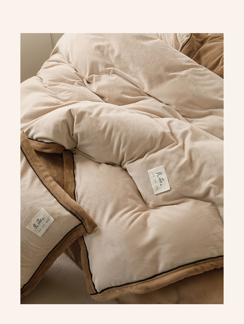 • 91家纺网 家纺一手货源 找家纺 寐绸家纺 2025新款牛奶绒双拼单被套 双拼被套-米驼+奶茶咖