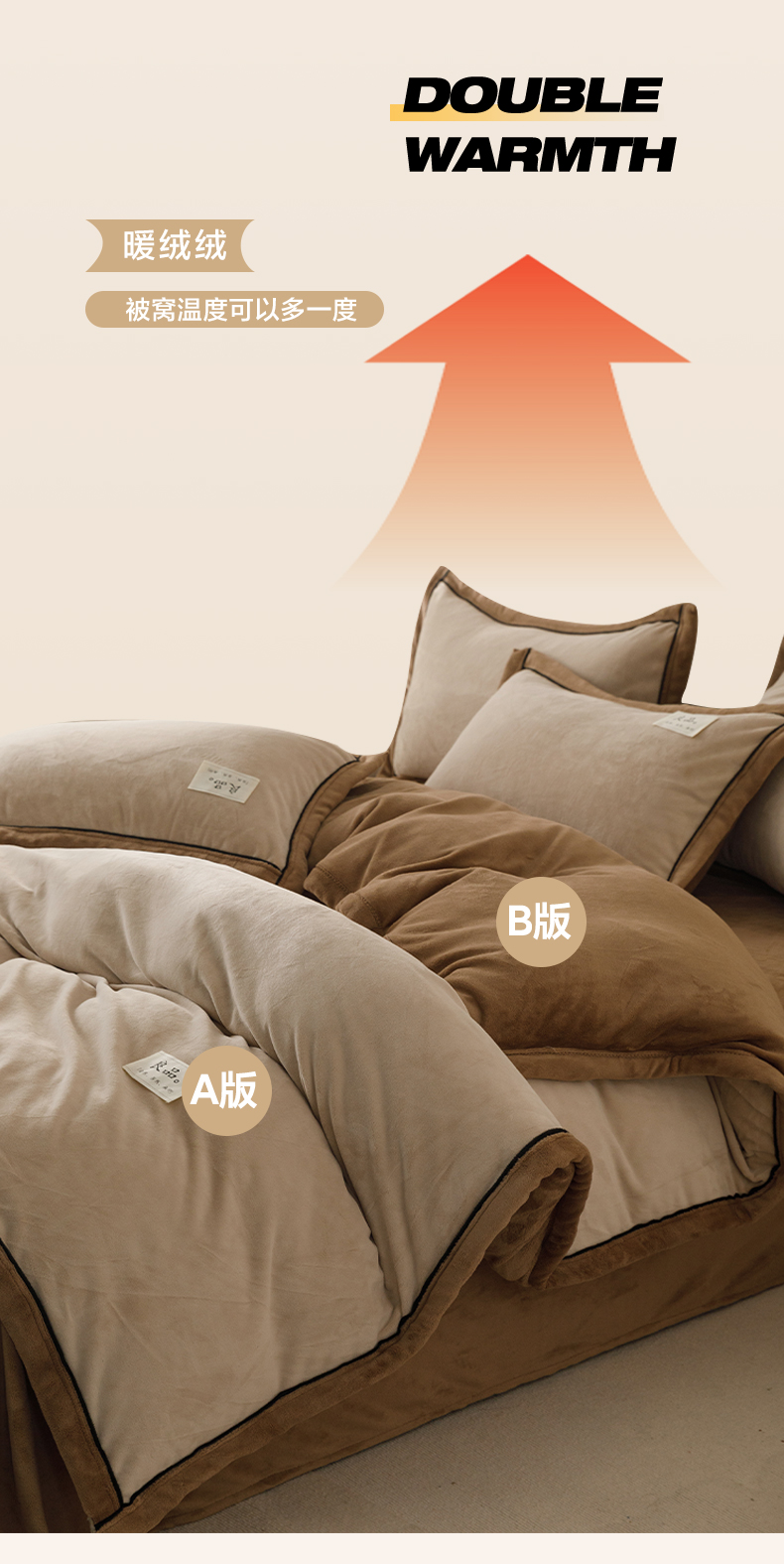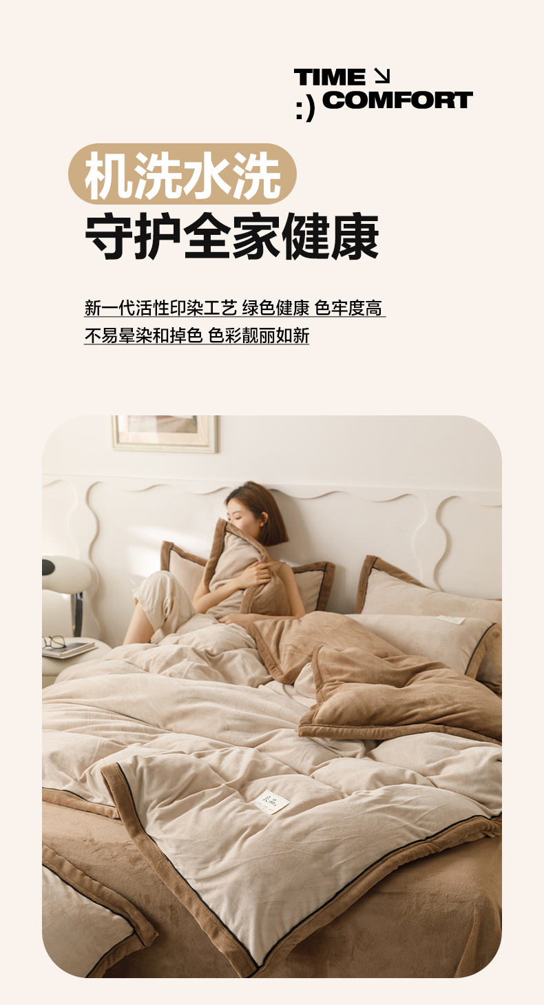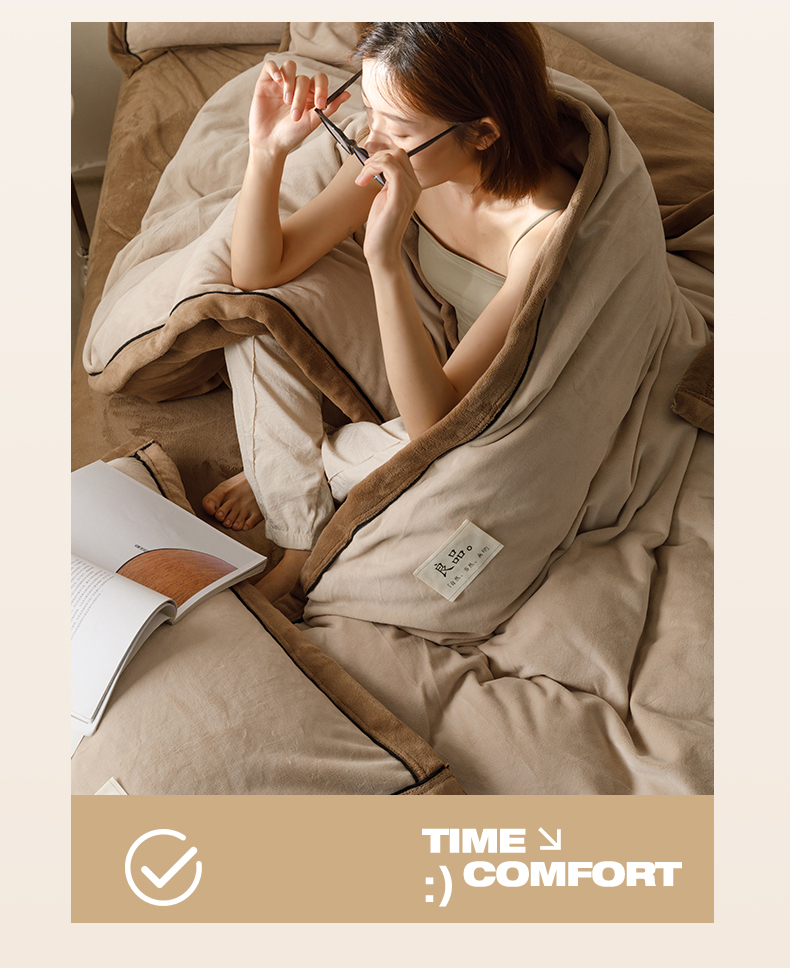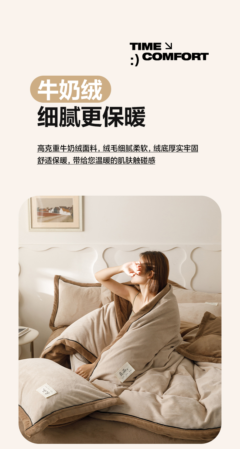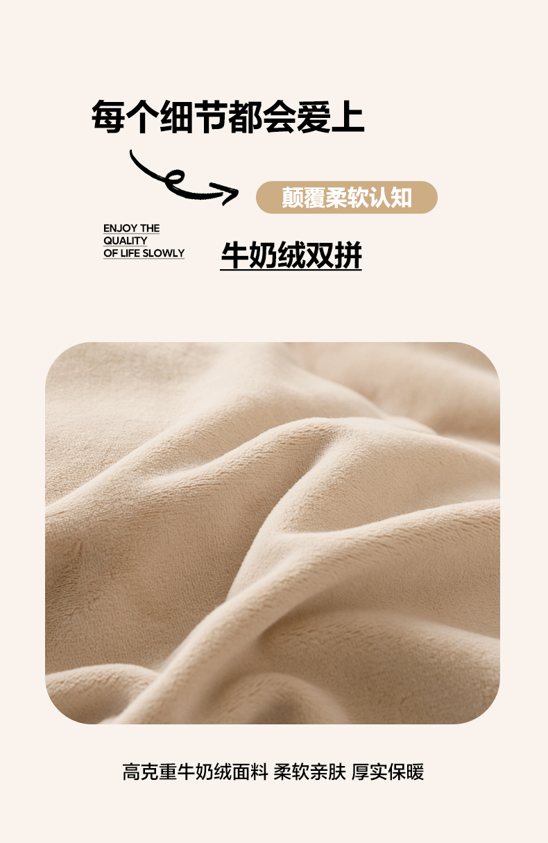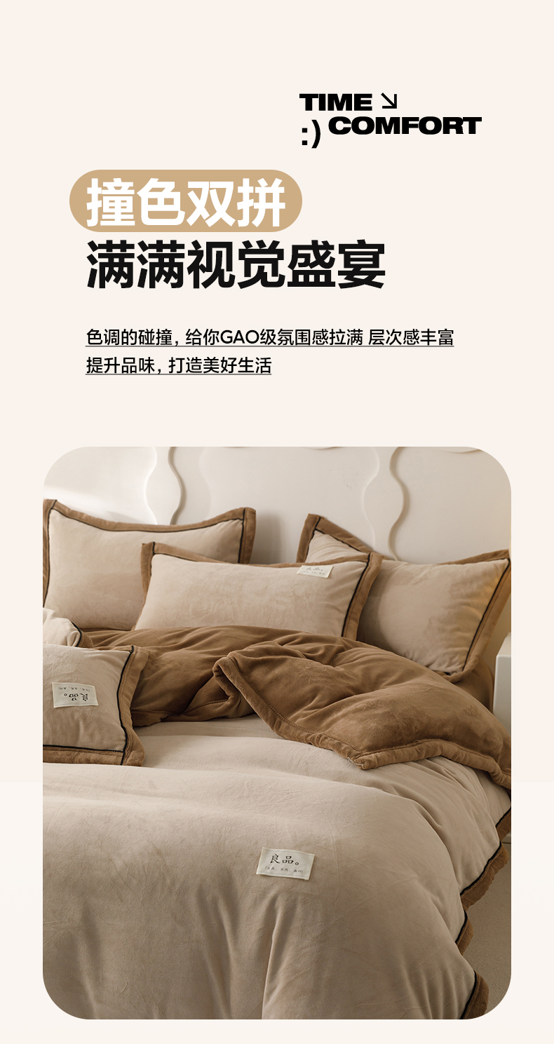• 91家纺网 家纺一手货源 找家纺 寐绸家纺 2025新款牛奶绒双拼单被套 双拼被套-米驼+奶茶咖