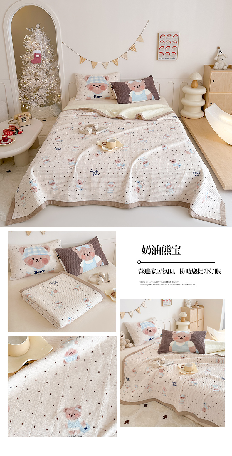 商品名称:RYB红黄兰 2025新款设计师原创数码印花牛奶绒夹棉床盖三件套 奶油熊宝