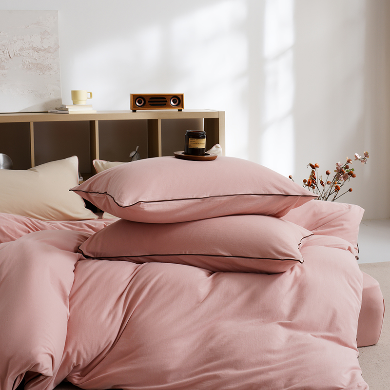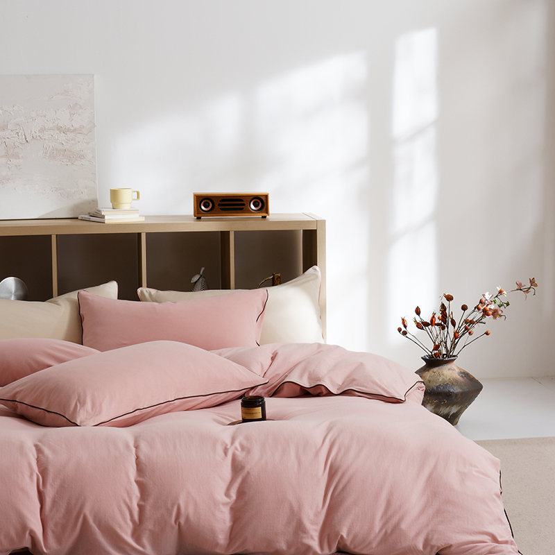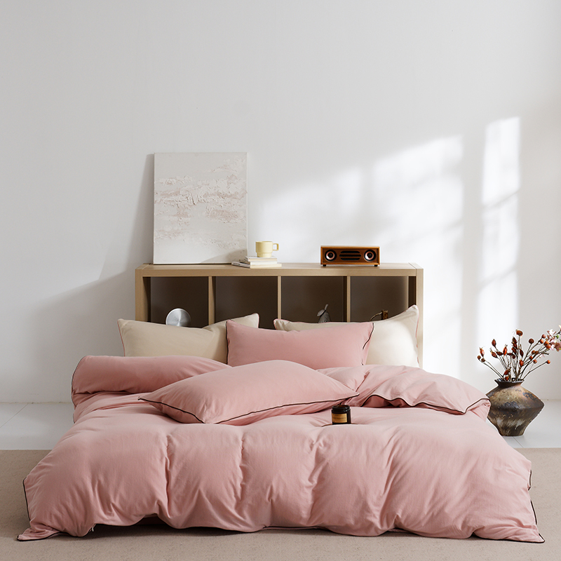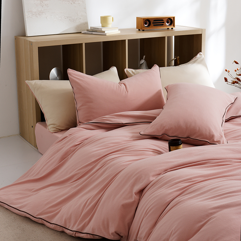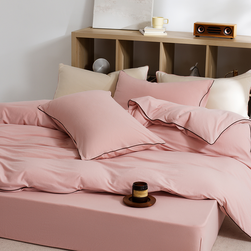 (总)LADYCOCO可可家居 2025新款纯棉针织四件套(控价不低于279元),粉色,咖色,米色