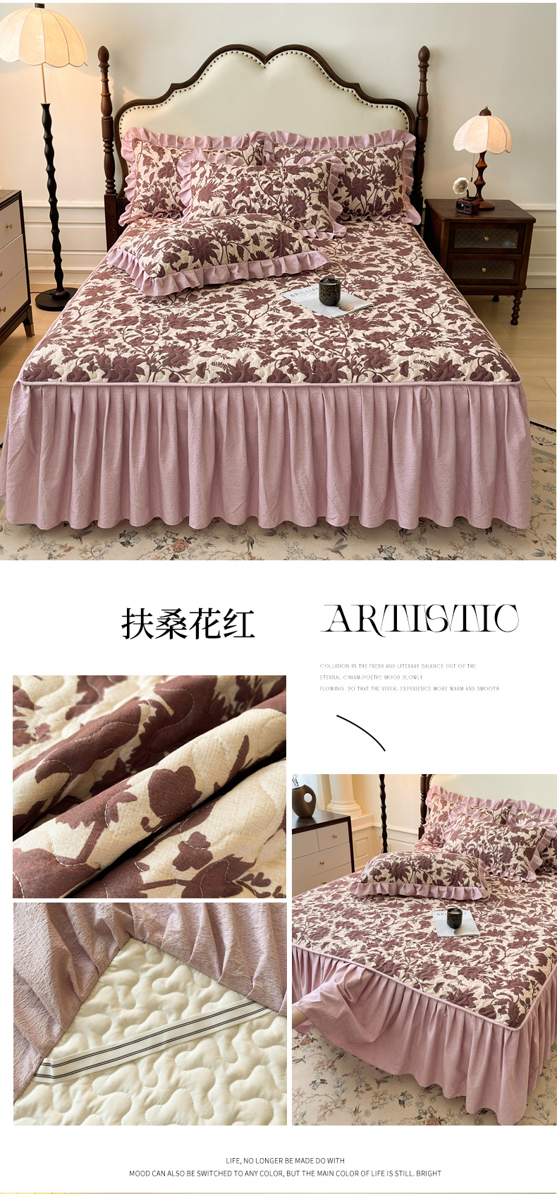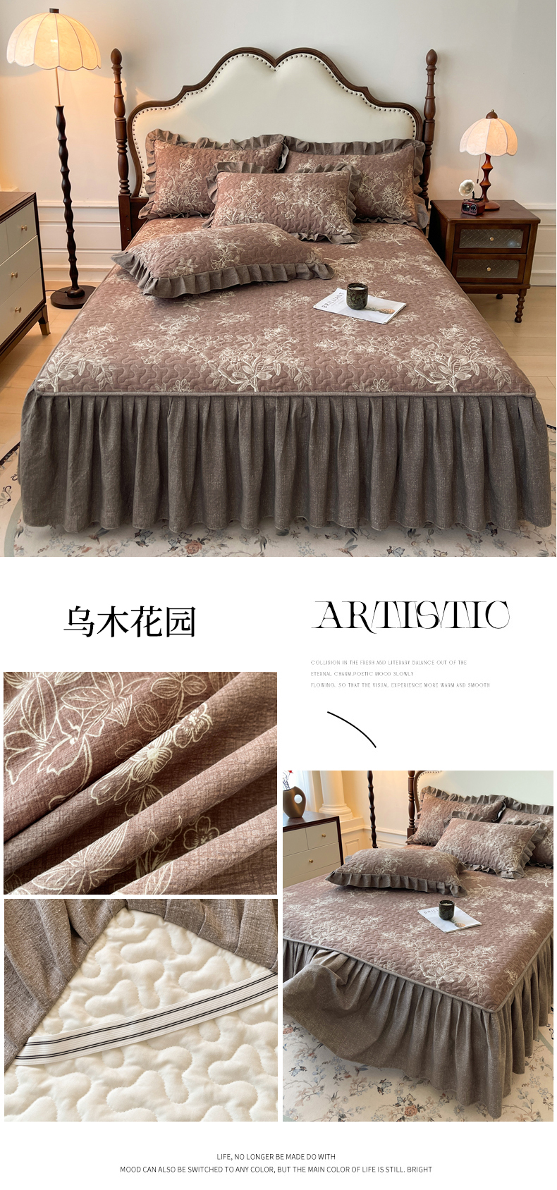 (总)笠裙家纺 2026新款加厚云感水洗棉印花夹棉床笠床罩【幻彩系列】,幻彩-茶巷,幻彩-浮绘花影,幻彩-花田错,幻彩-兰亭序,幻彩-乌木花园,幻彩-月神蝶,幻彩-云黛紫,组合图
