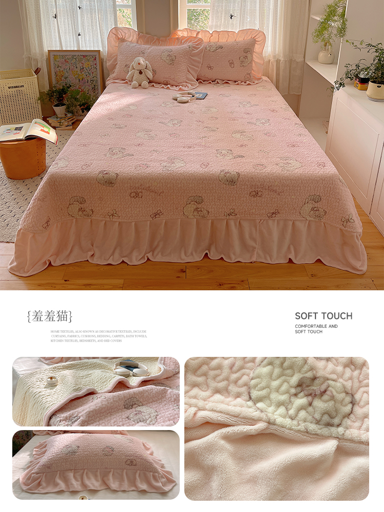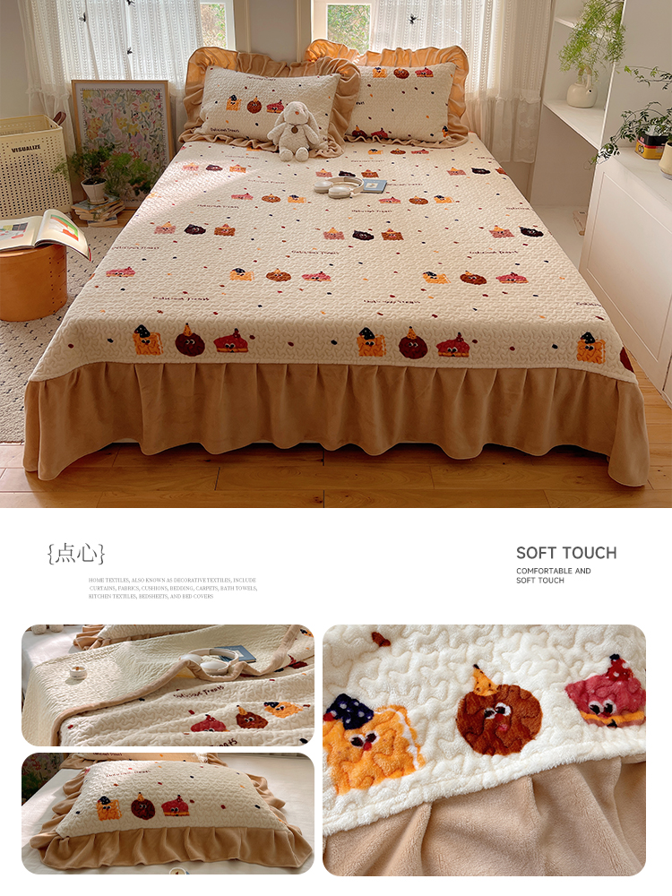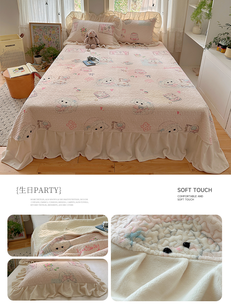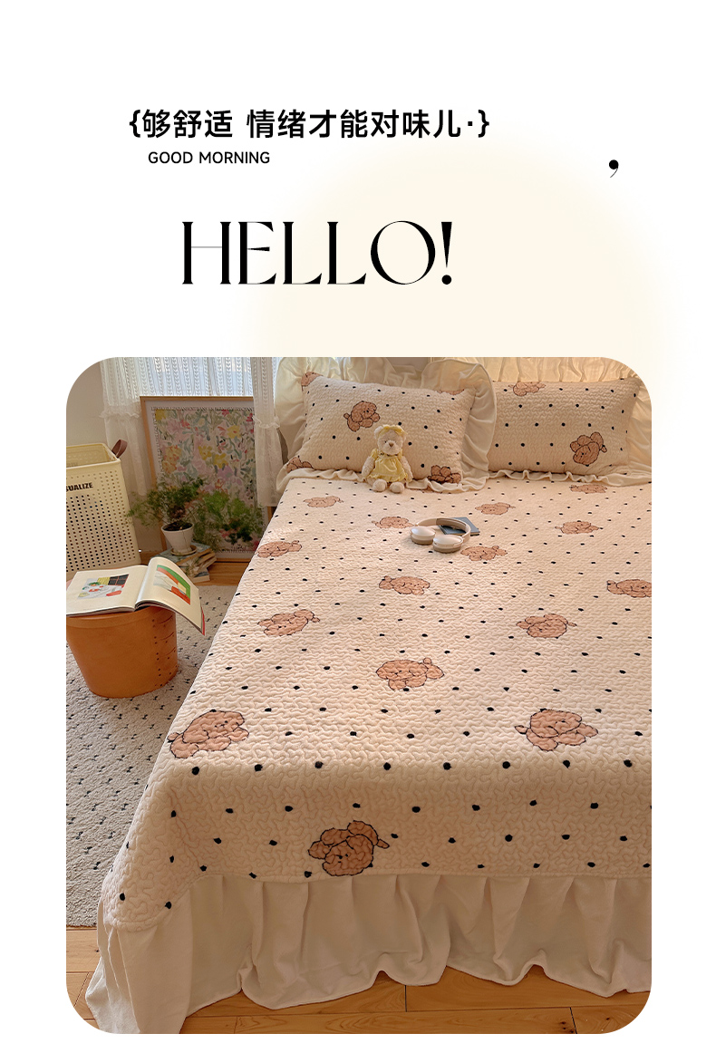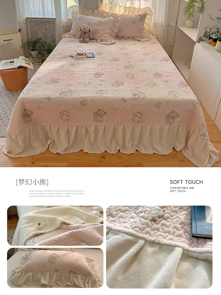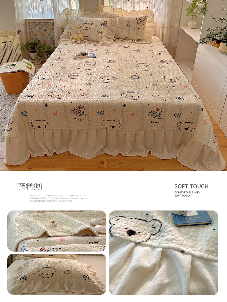 (总)红嘴企鹅 2025新款花边加厚牛奶绒单品床盖单件床盖三件套,波点狗,波点猫,大力,蛋糕狗,点心,蝶梦,动物乐园,蝴蝶狗狗,可爱比熊,萌萌熊,梦幻小熊,摩卡熊,奶油狗,平安猫,棋盘狗,少女猫咪,生日Party,圣诞老人,圣诞猫,淘气狗,小星甜点,星星乐园,星云小熊,羞羞猫,字母熊