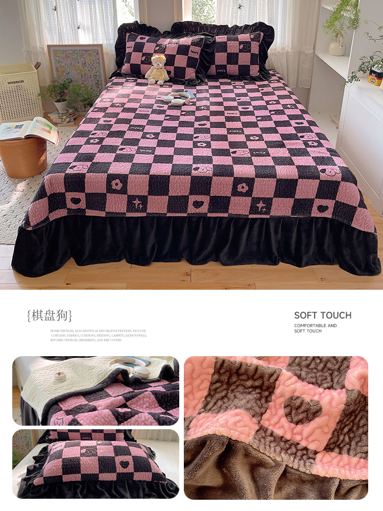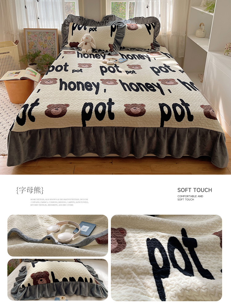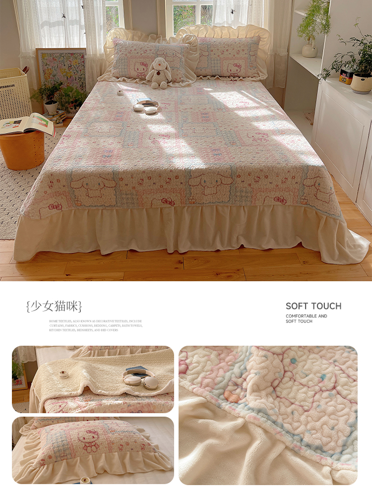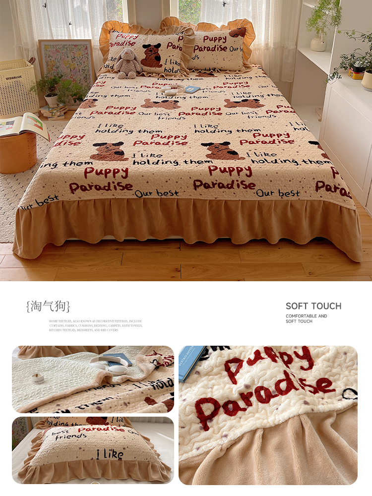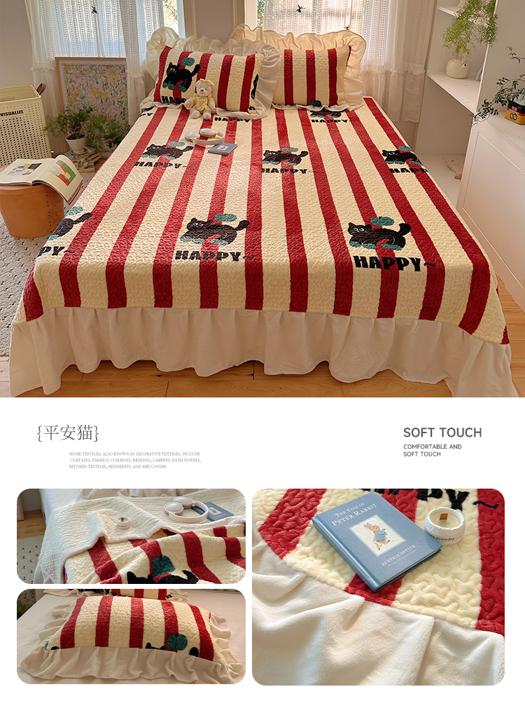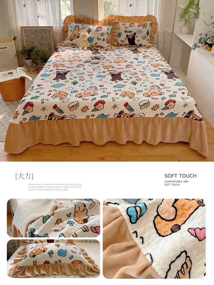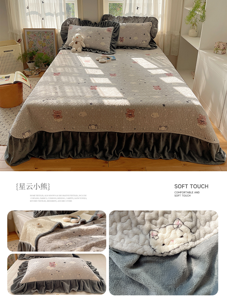 (总)红嘴企鹅 2025新款花边加厚牛奶绒单品床盖单件床盖三件套,波点狗,波点猫,大力,蛋糕狗,点心,蝶梦,动物乐园,蝴蝶狗狗,可爱比熊,萌萌熊,梦幻小熊,摩卡熊,奶油狗,平安猫,棋盘狗,少女猫咪,生日Party,圣诞老人,圣诞猫,淘气狗,小星甜点,星星乐园,星云小熊,羞羞猫,字母熊