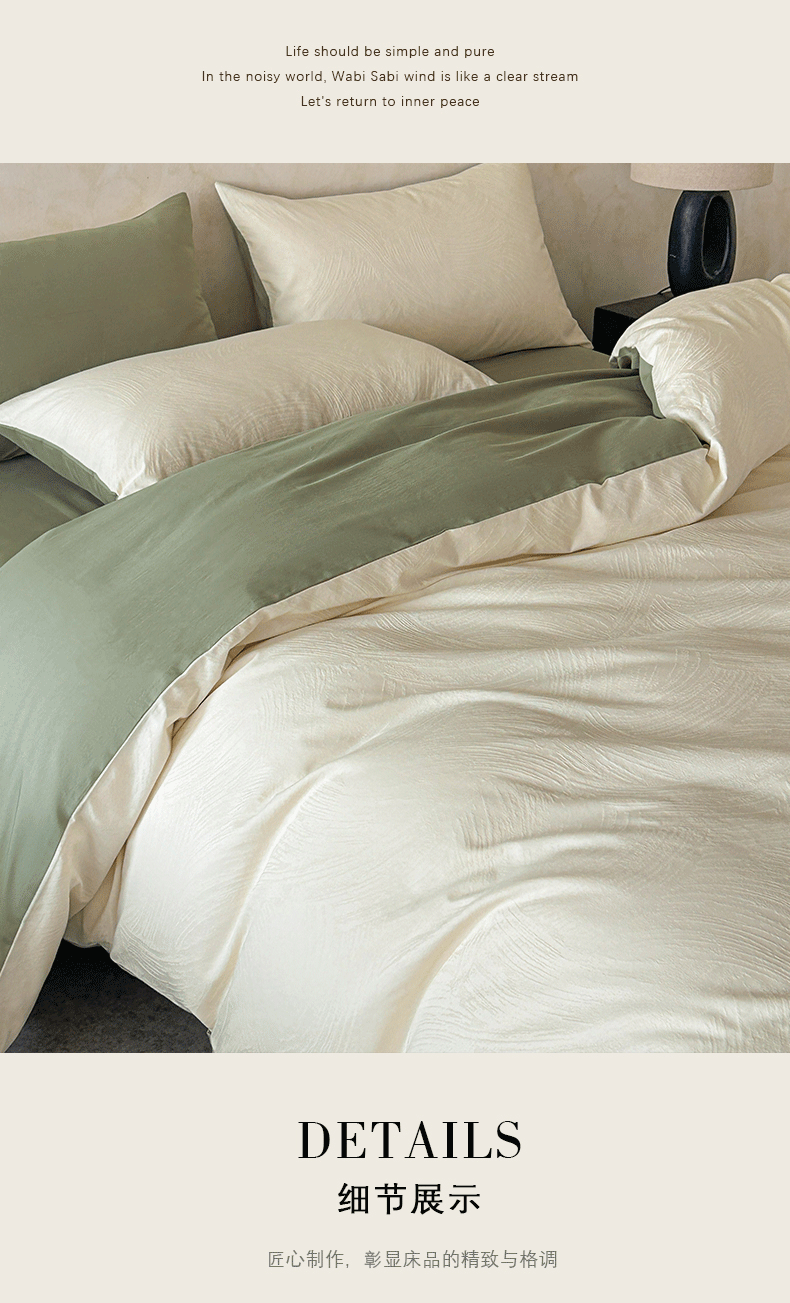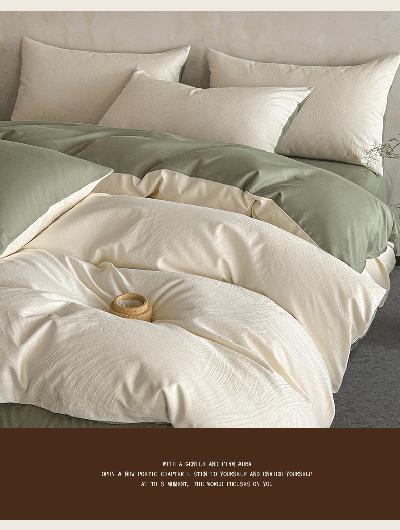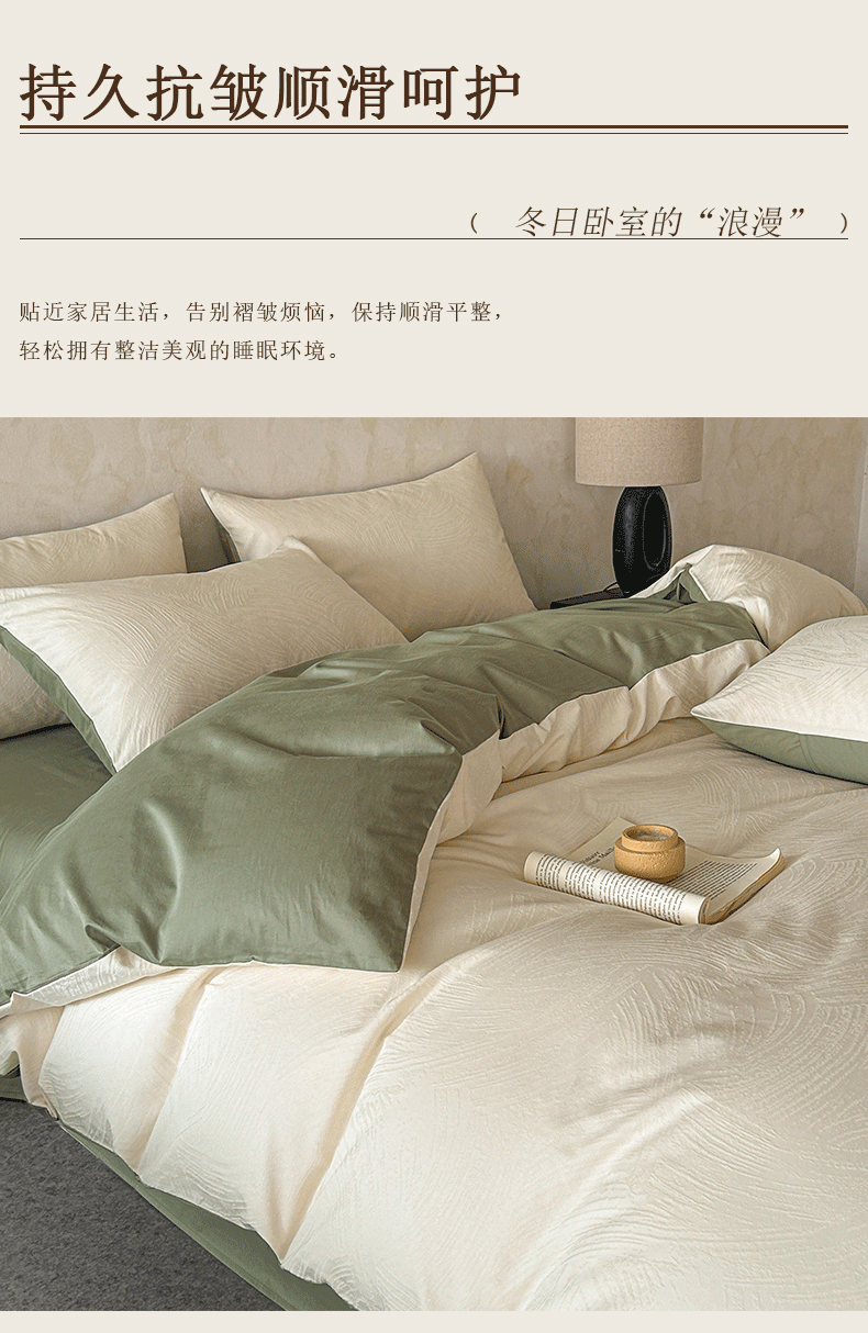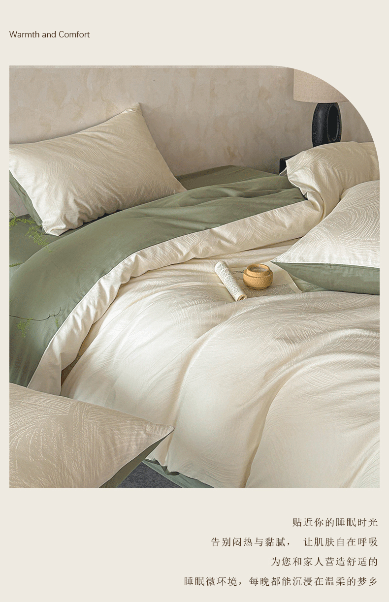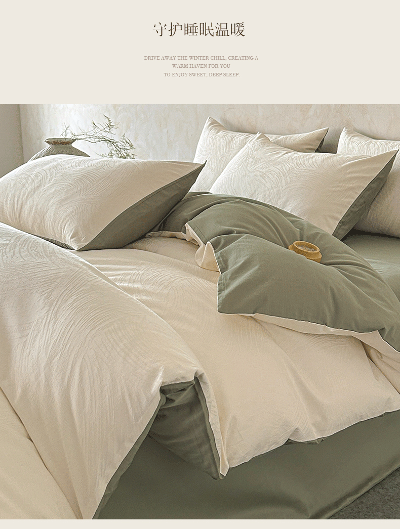 618家纺 2025新款全棉磨毛提花法式双拼四件套-赫本系列 赫本-风织绿