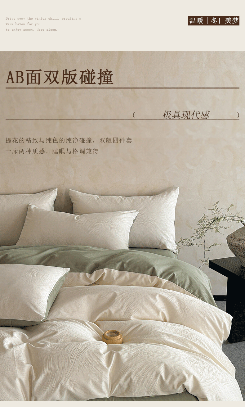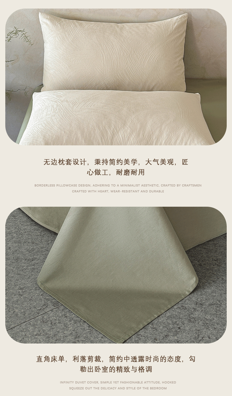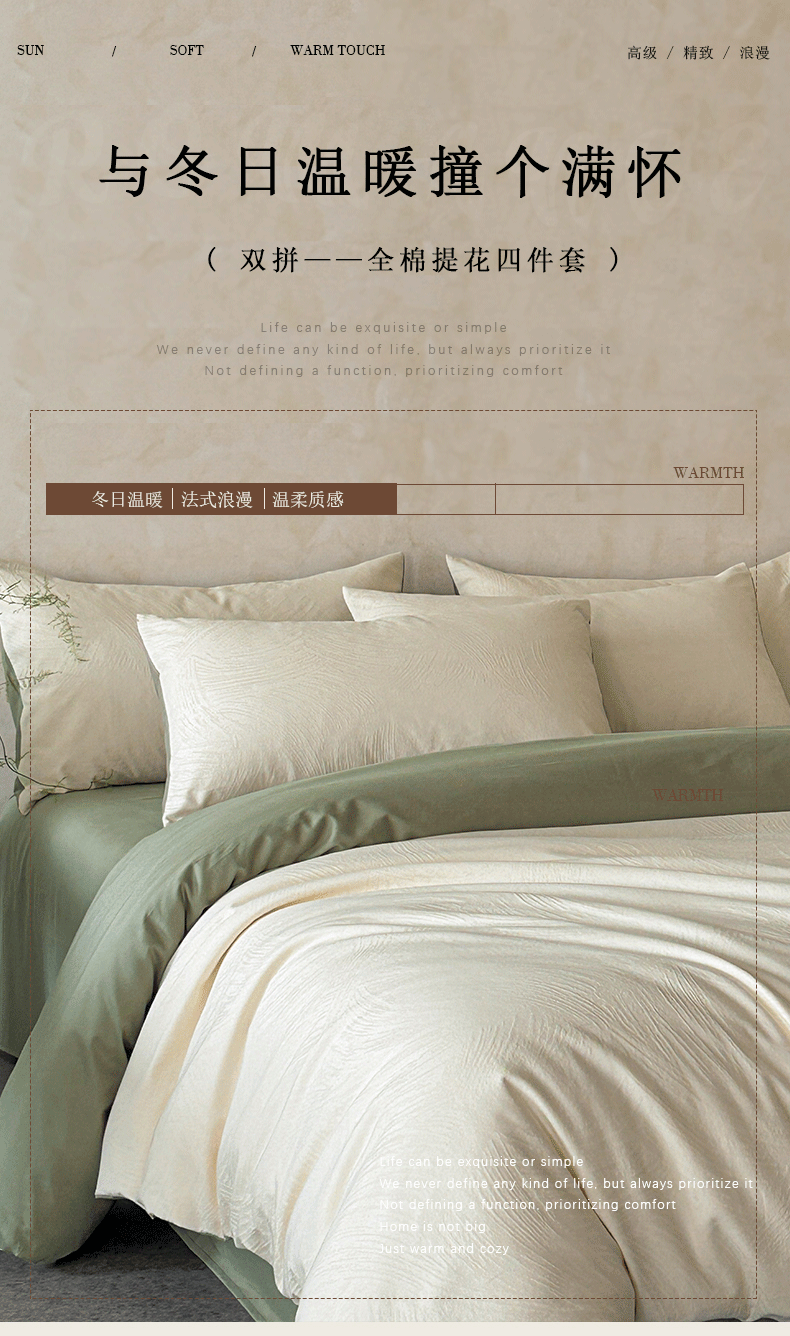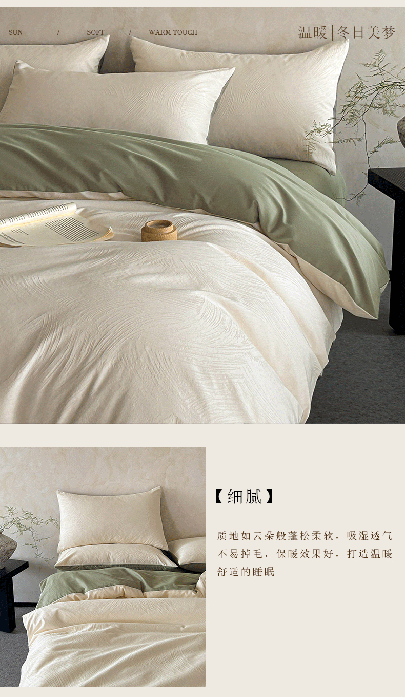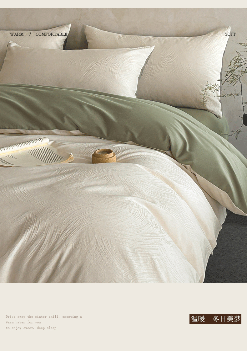 618家纺 2025新款全棉磨毛提花法式双拼四件套-赫本系列 赫本-风织绿