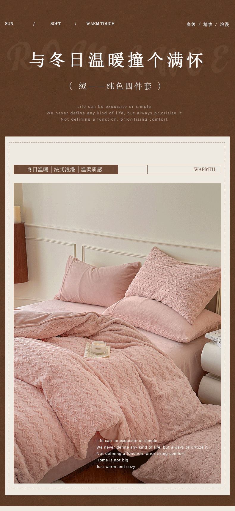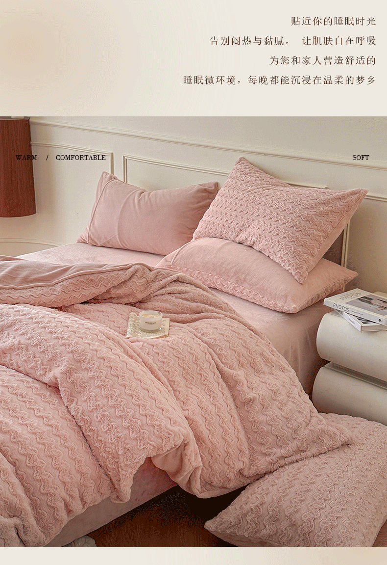 商品名称:618家纺 2025新款冬日温暖纯色法式浪漫云舒绒四件套 云舒绒-菱光粉