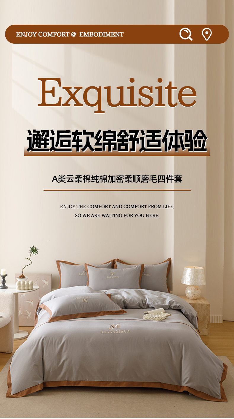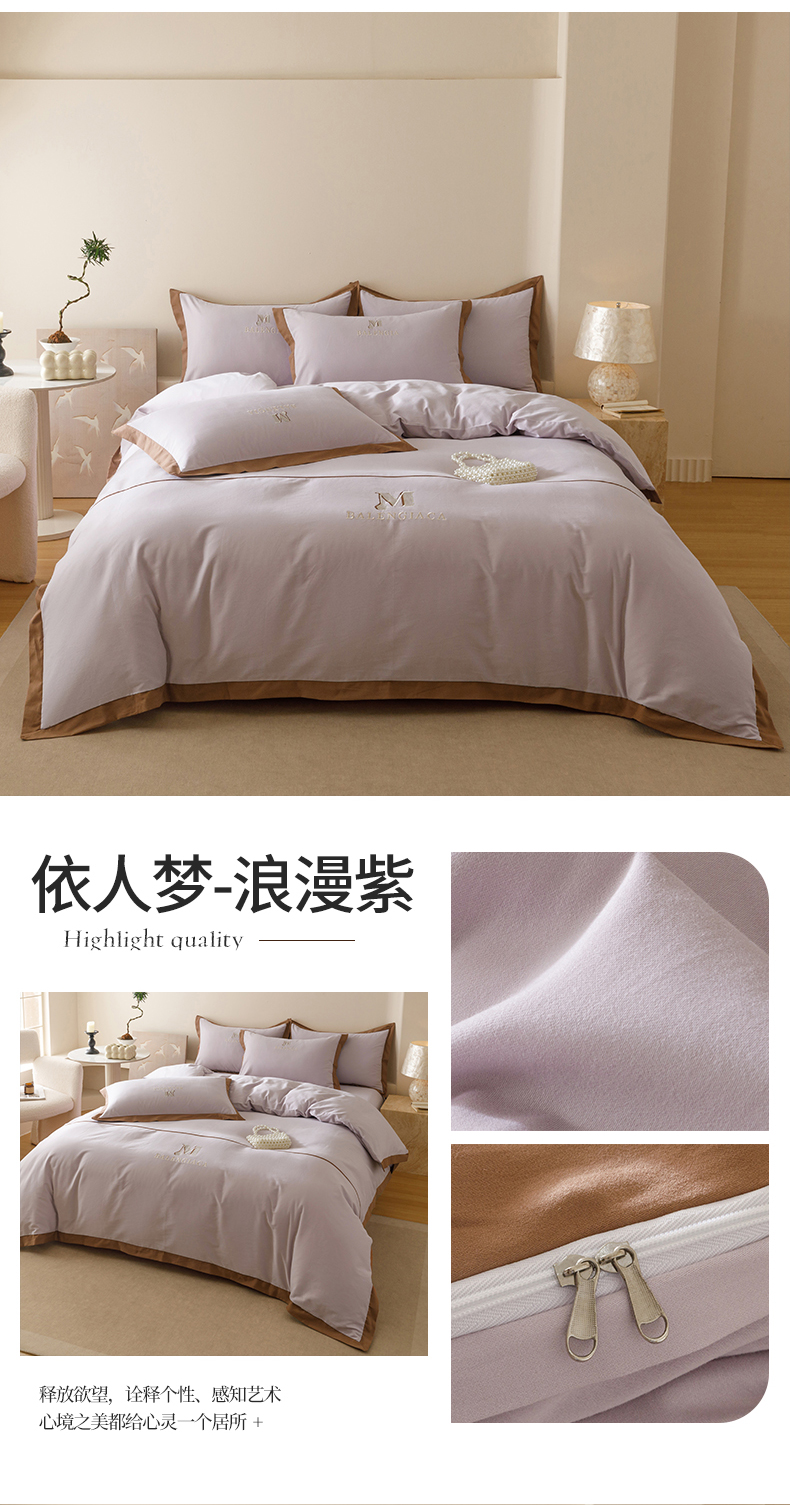 (总)艾莱家纺 2025新款A类50S云柔棉加密柔顺磨毛四件套-依人梦,依人梦-巴黎粉,依人梦-高级灰,依人梦-浪漫紫,依人梦-浅香槟