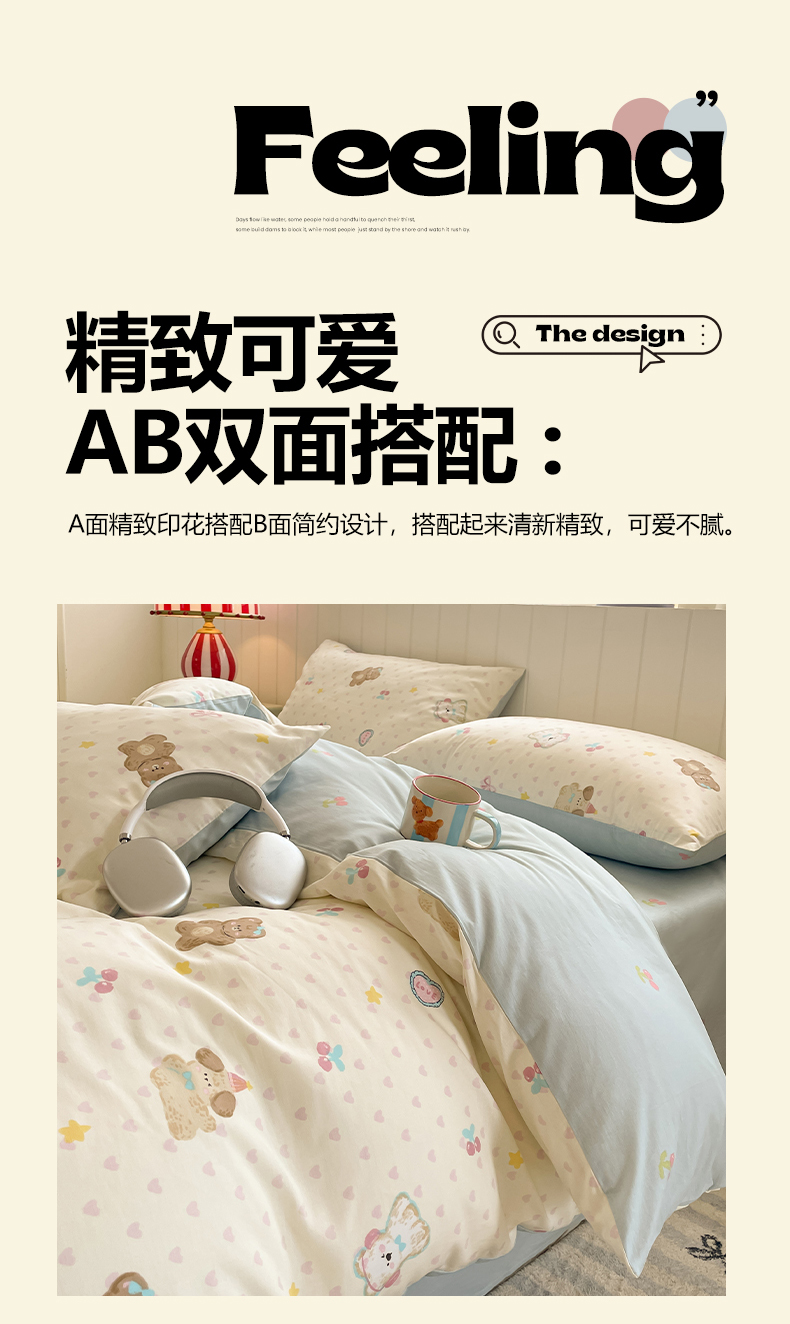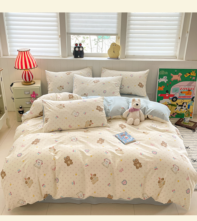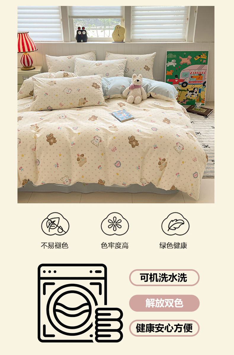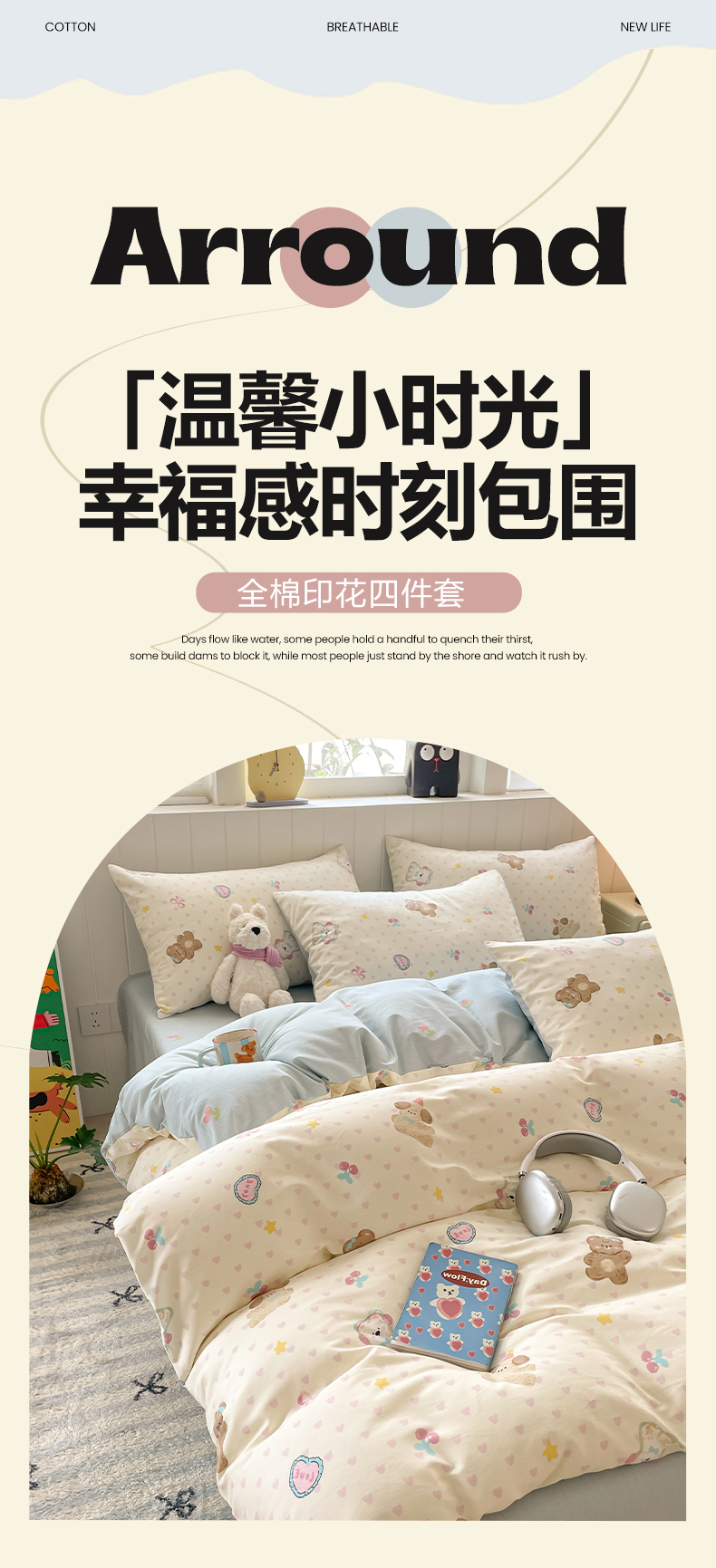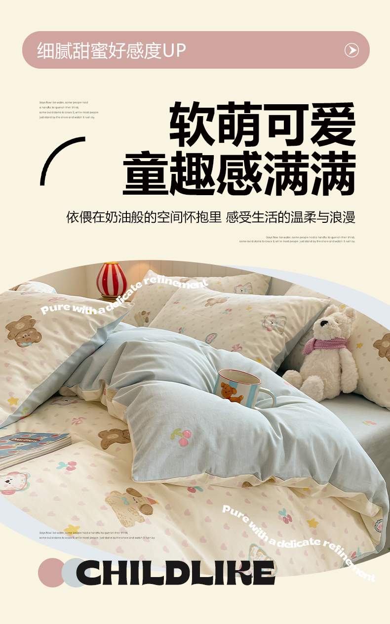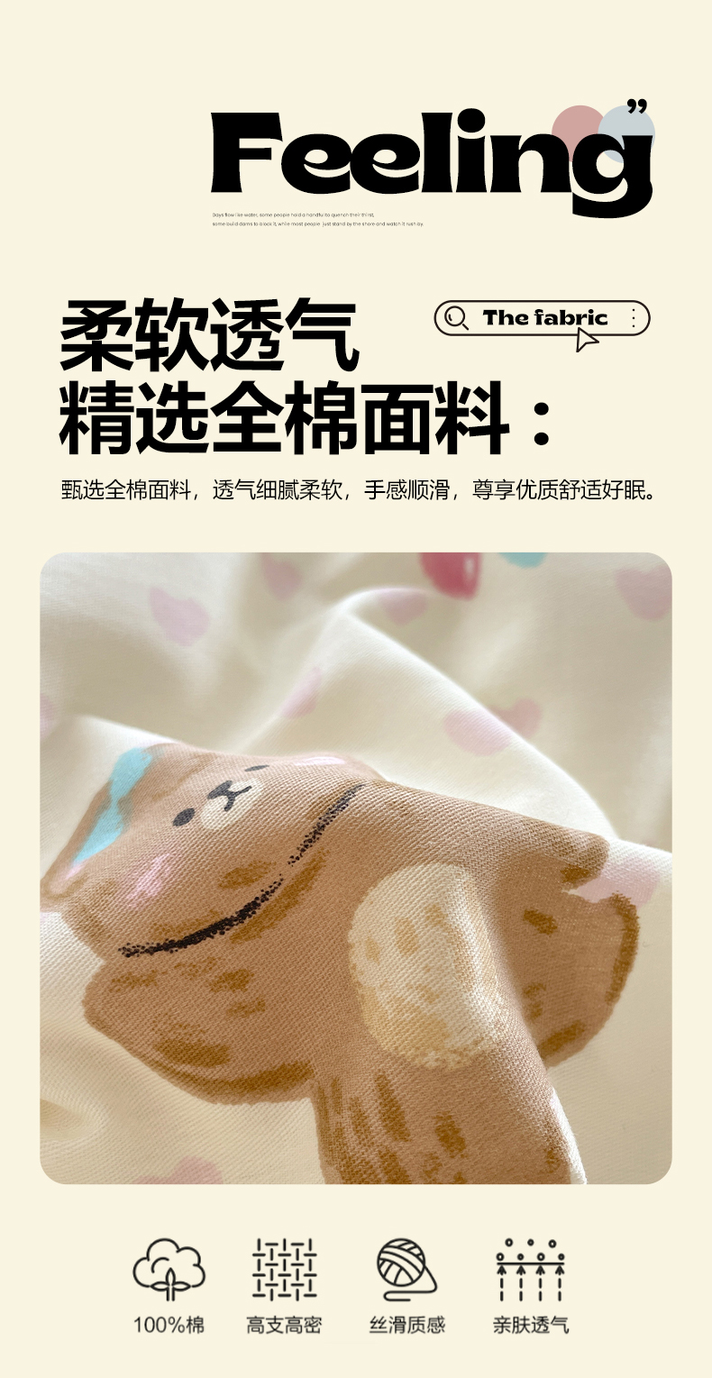 • 91家纺网 家纺一手货源 找家纺 吉象家纺 2025新款12868全棉印花单被套 奶油甜心熊