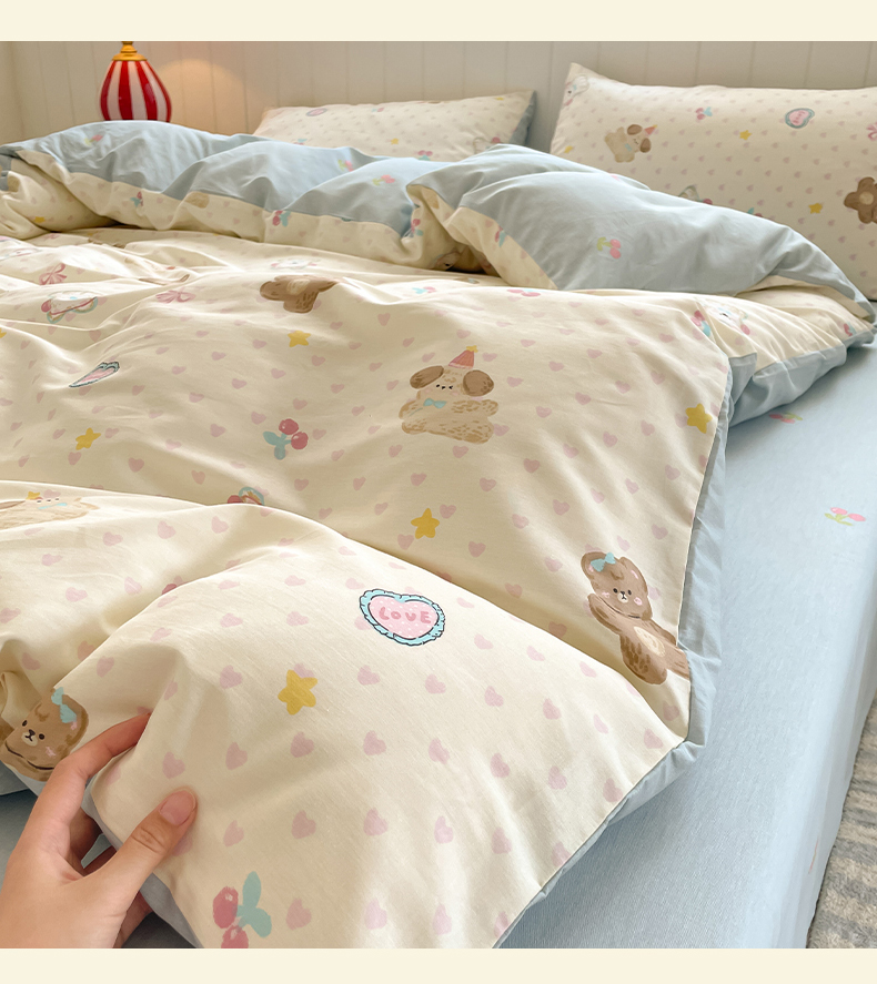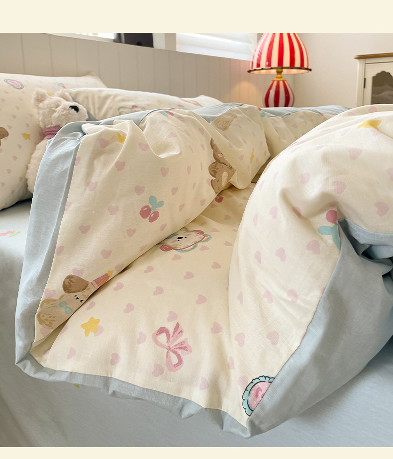 吉象家纺 2025新款12868全棉印花单被套 奶油甜心熊