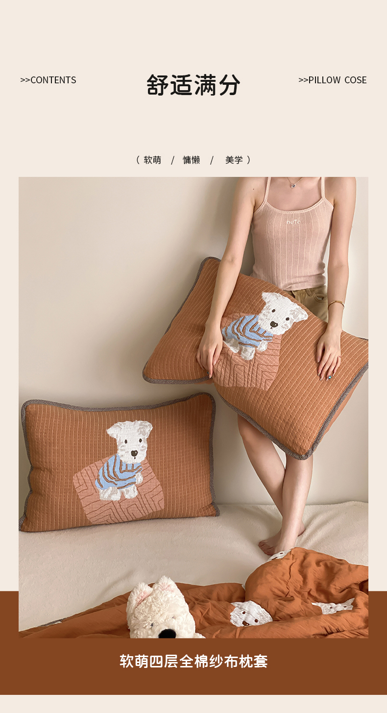 商品名称:麻依 2025新款软萌四层全棉纱布枕套 西单小狗