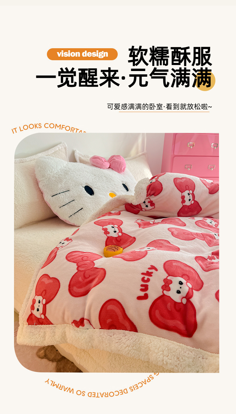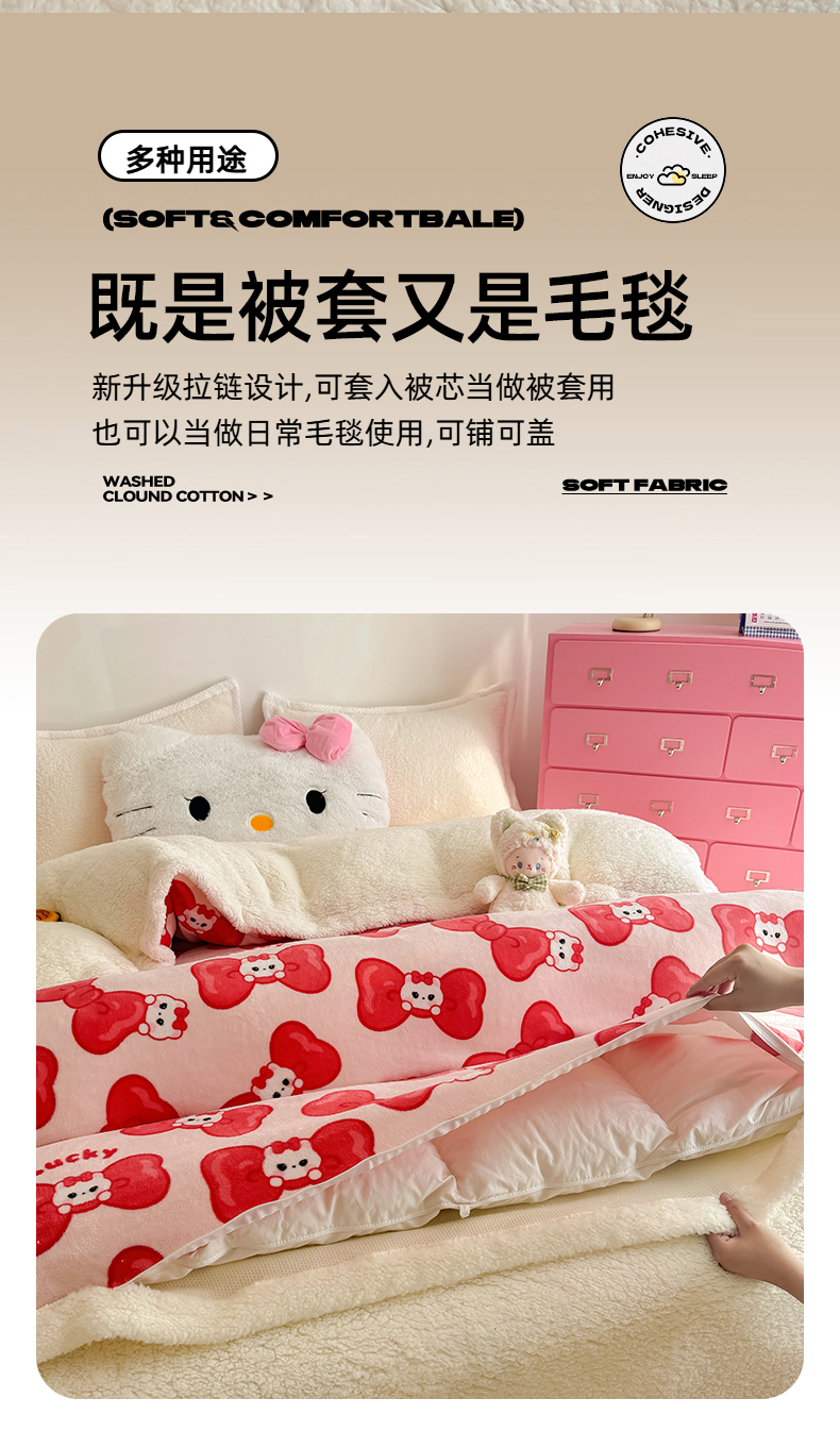 商品名称:艾特你 2025新款多功能羊羔绒牛奶绒单毛毯单被套 羊-多多猫咪