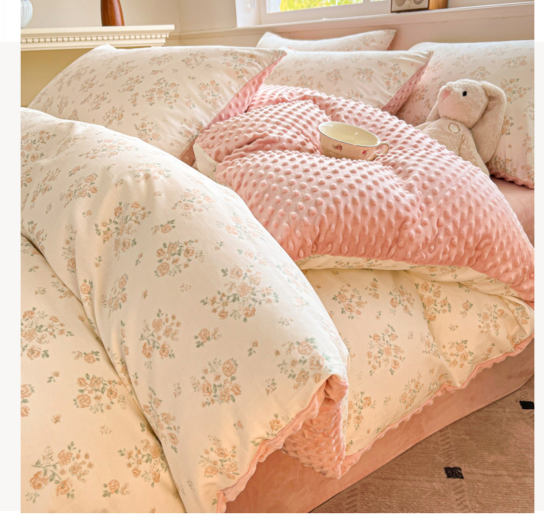 当前位置: 91家纺网 > 商品网购 > 床品套件 > 四件套 > 全棉普通四件套 > 麦伦家居 2025秋冬新品多功能床品全棉+豆豆绒四件套卡通小清新系列 浣花