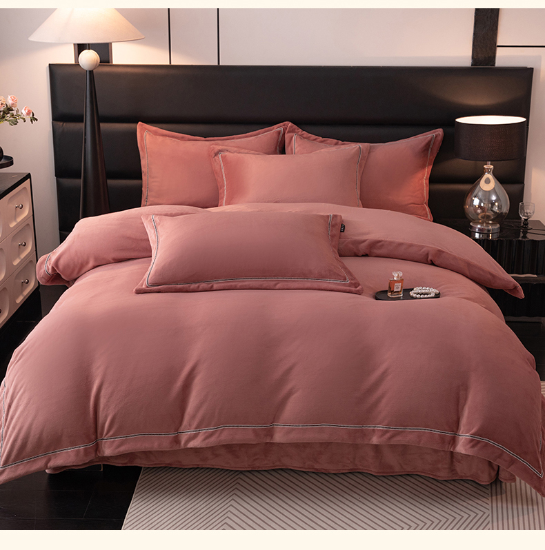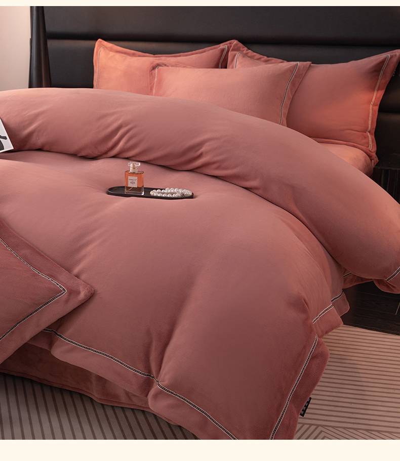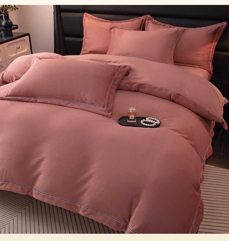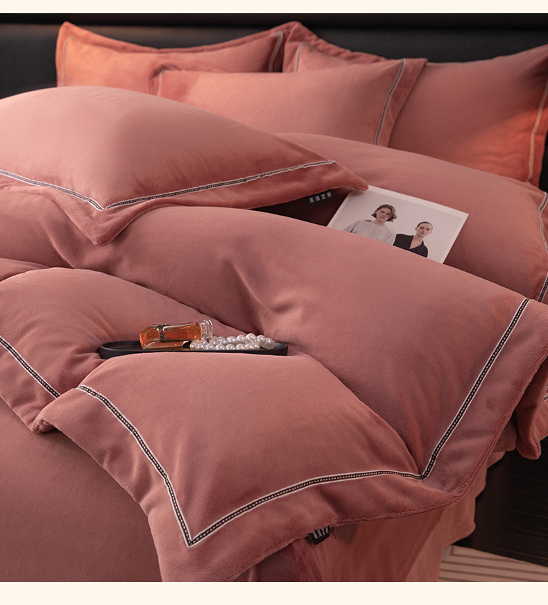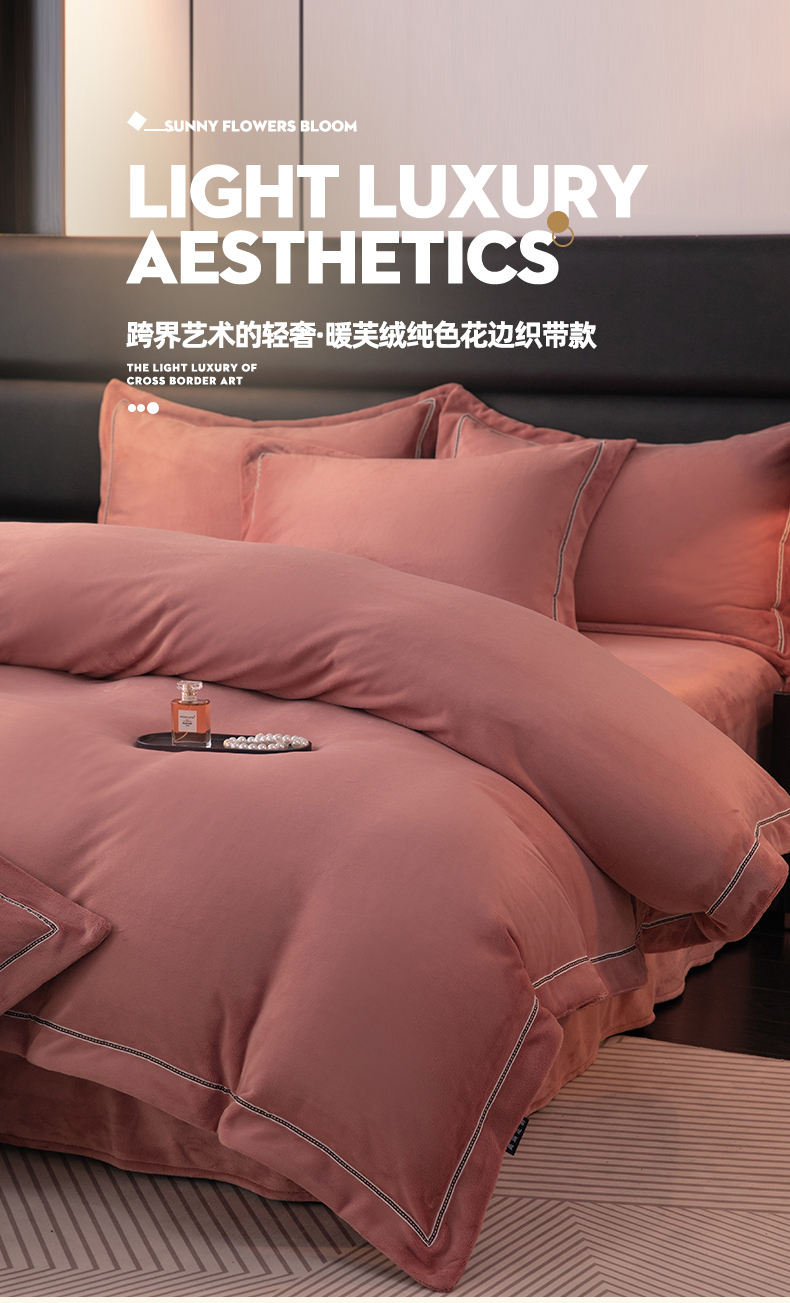 当前位置: 91家纺网 > 商品网购 > 床品套件 > 四件套 > 牛奶绒四件套 > 暖洋 2025新款240克高克重全工艺纯色织带花边款牛奶绒四件套 云锦红
