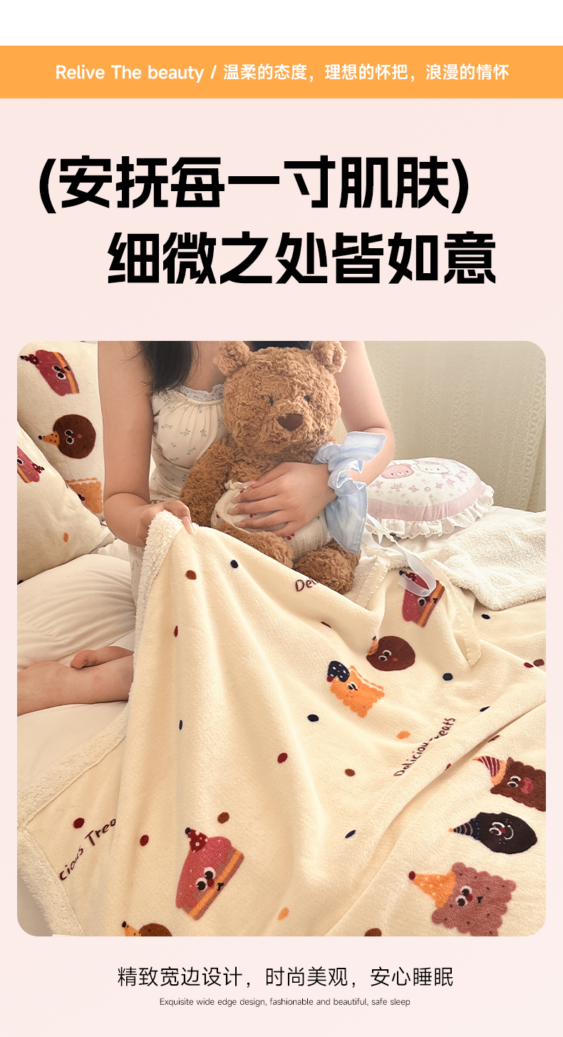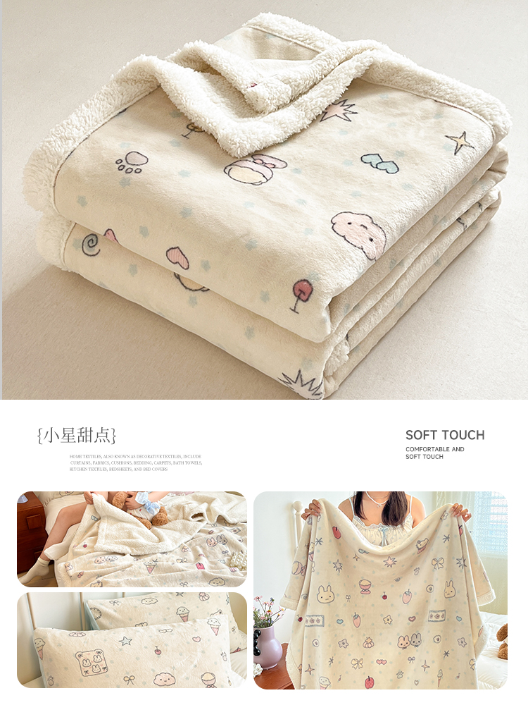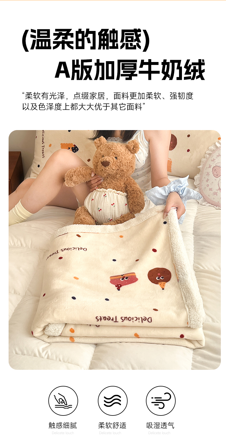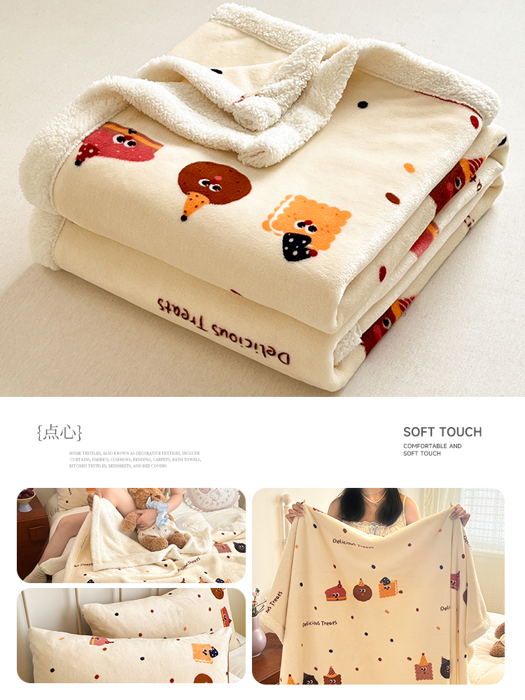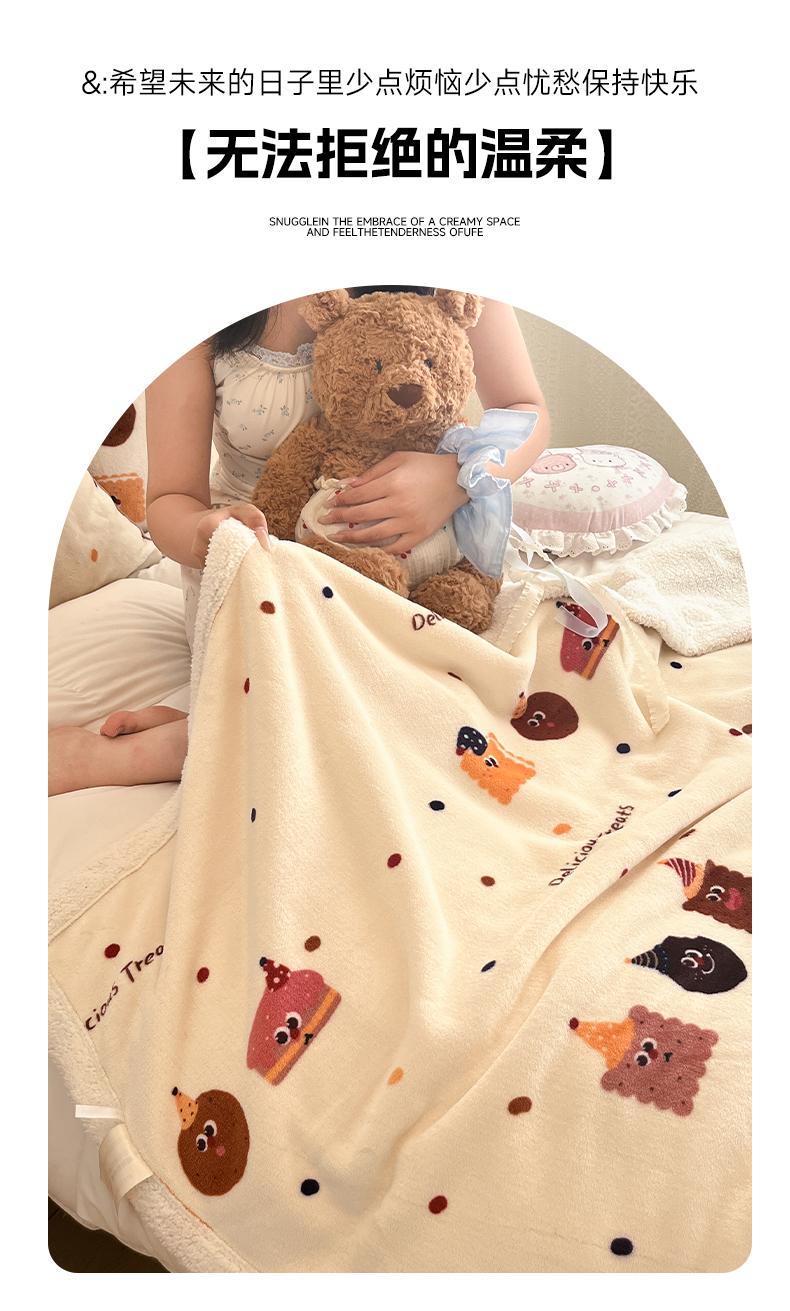 商品名称:红嘴企鹅 2026新款A类ins风卡通可爱加厚牛奶绒羊羔绒毛毯毯子办公室沙发儿童空调盖毯午休毯 点心