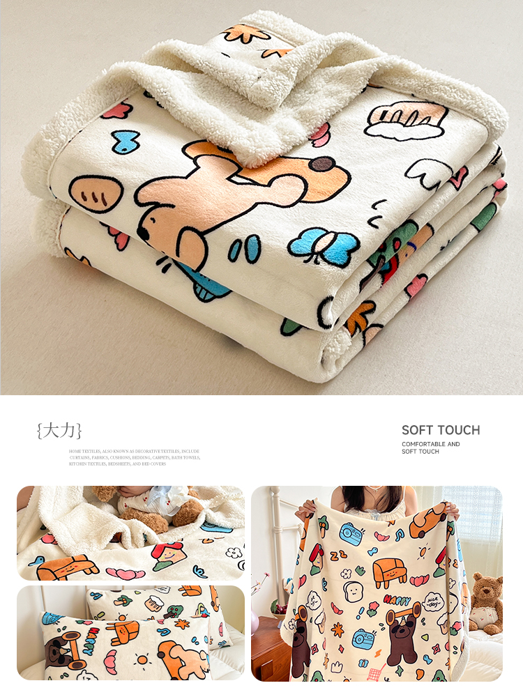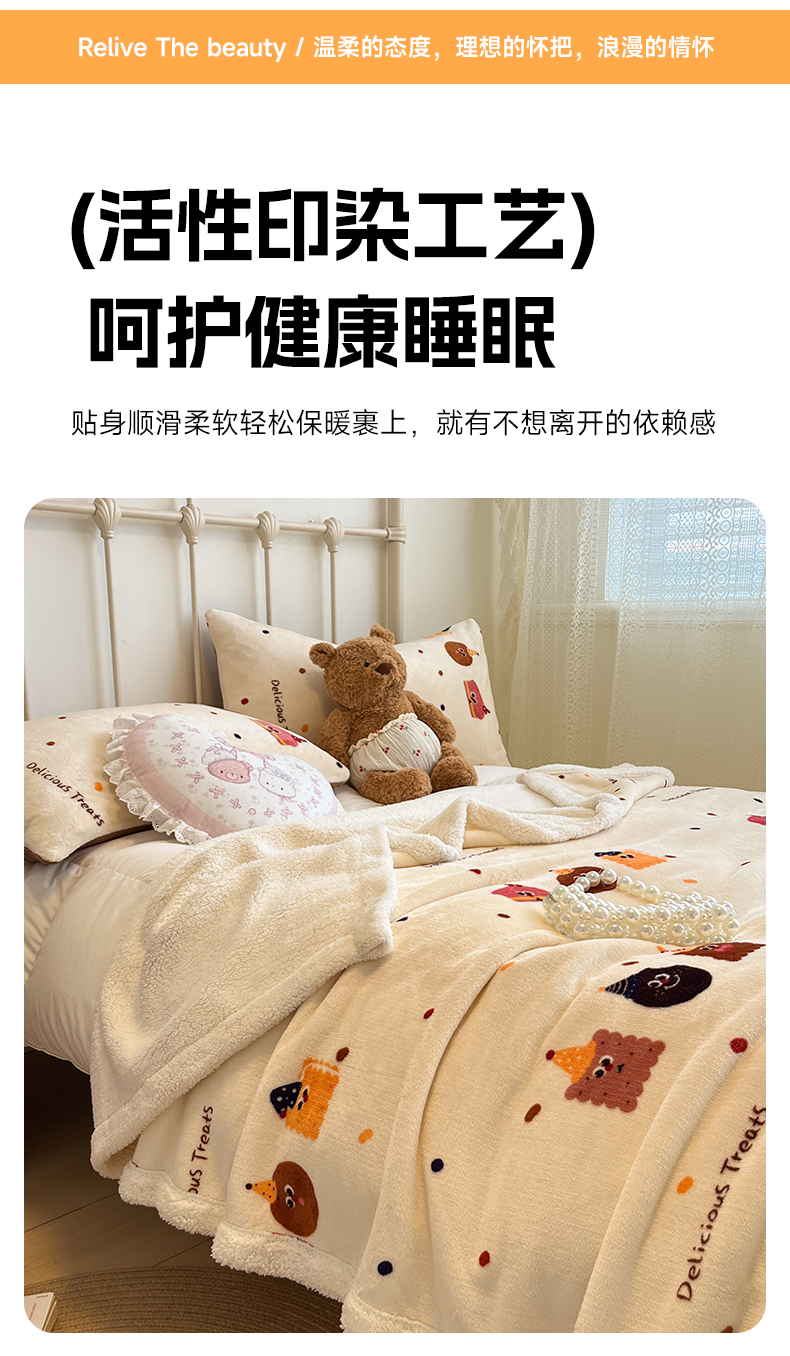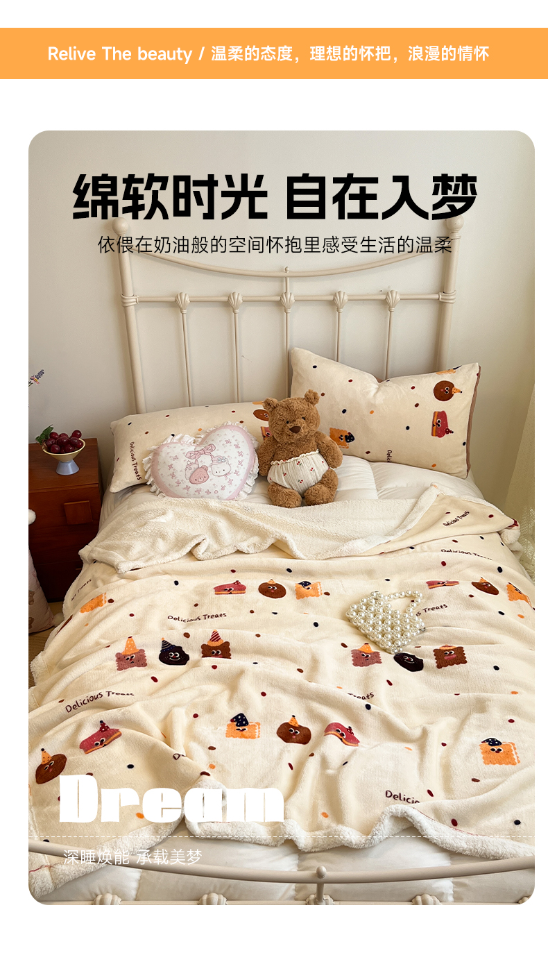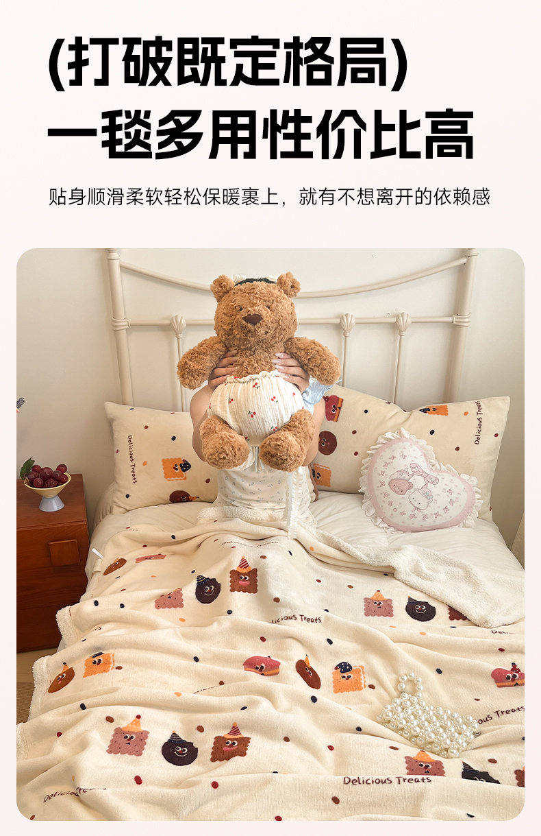 商品名称:红嘴企鹅 2026新款A类ins风卡通可爱加厚牛奶绒羊羔绒毛毯毯子办公室沙发儿童空调盖毯午休毯 点心