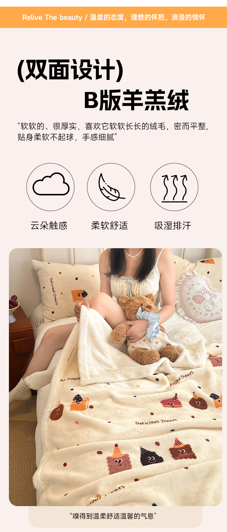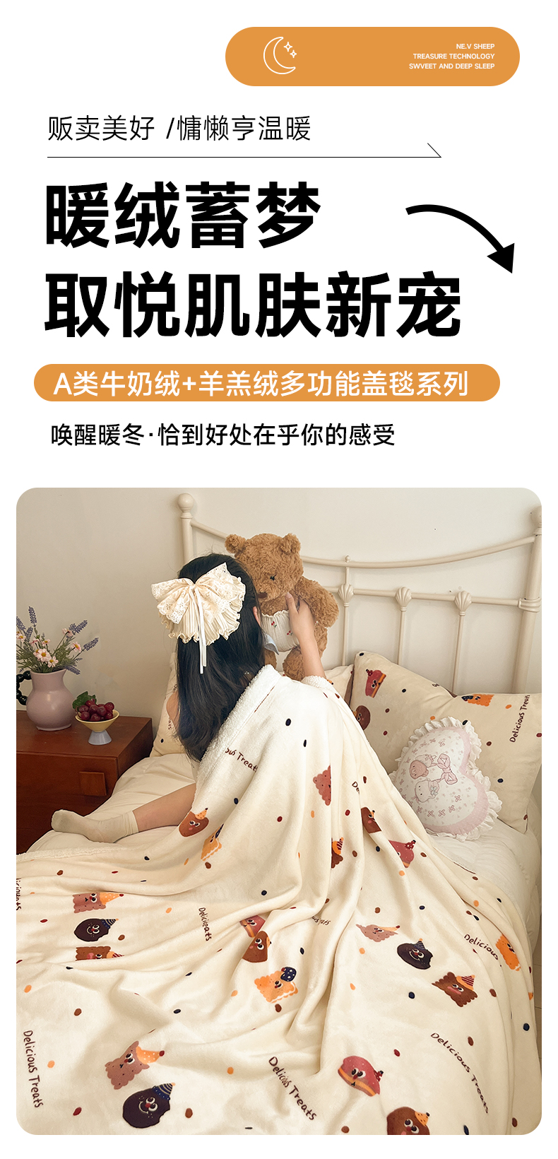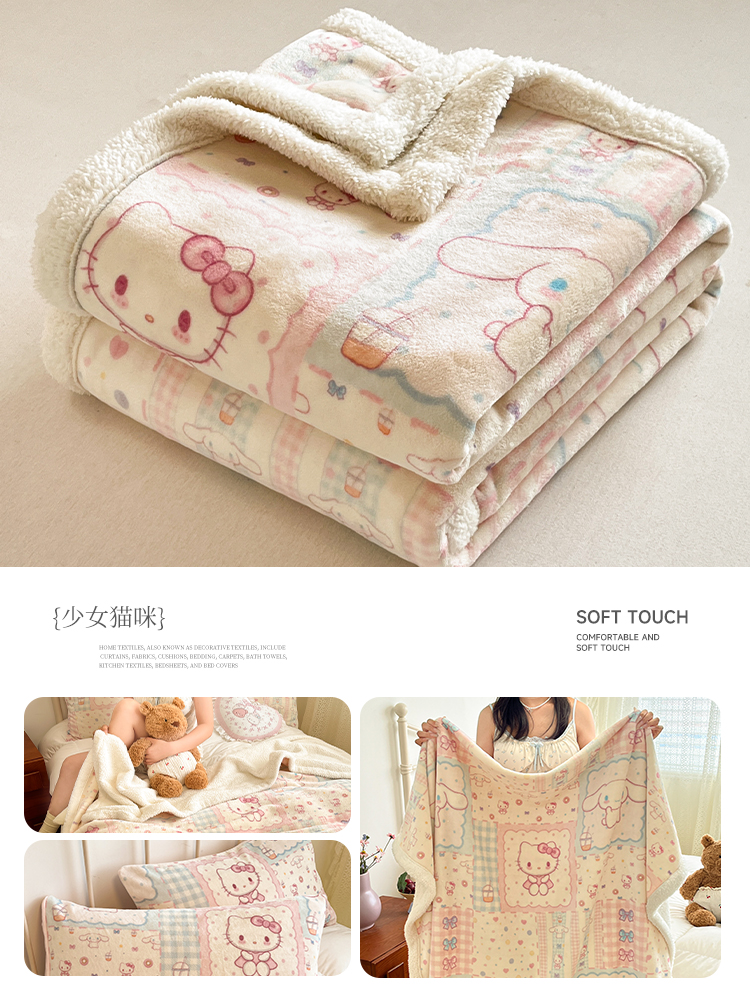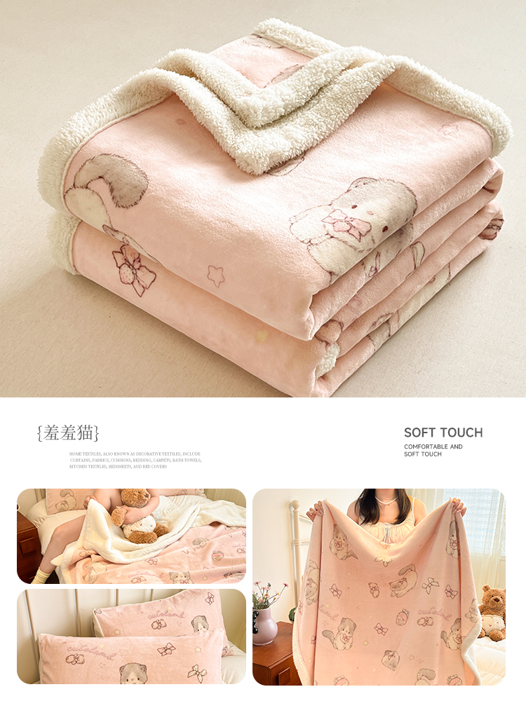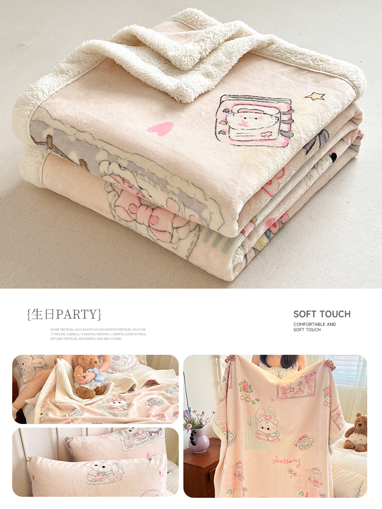 商品名称:红嘴企鹅 2026新款A类ins风卡通可爱加厚牛奶绒羊羔绒毛毯毯子办公室沙发儿童空调盖毯午休毯 点心