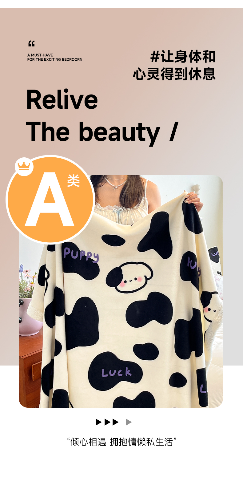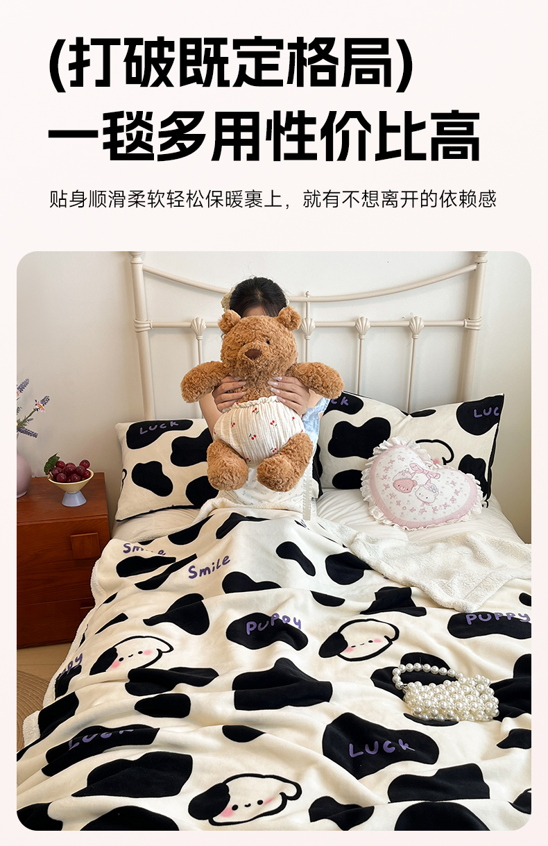 商品名称:红嘴企鹅 2025新款A类ins风卡通可爱加厚牛奶绒羊羔绒毛毯毯子办公室沙发儿童空调盖毯午休毯 奶油狗