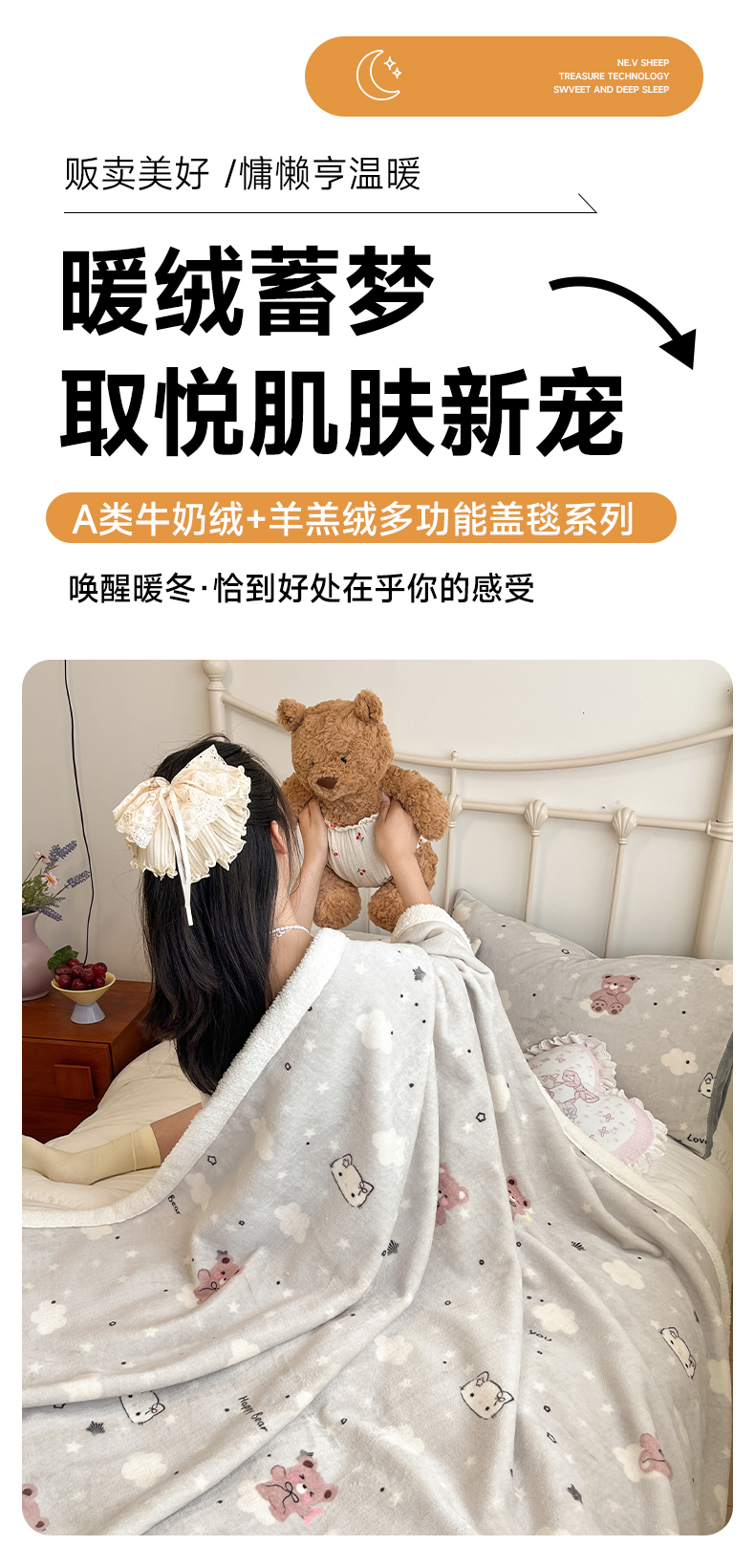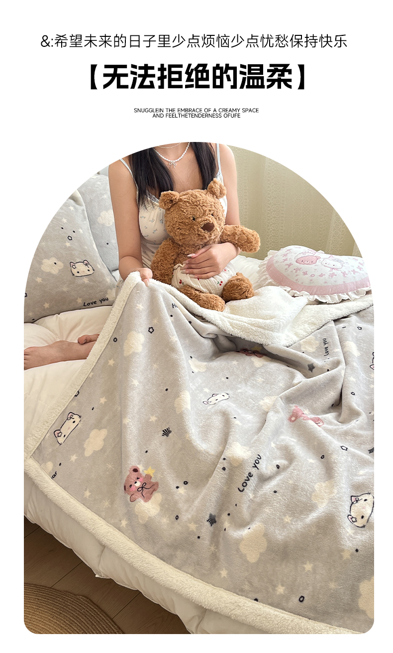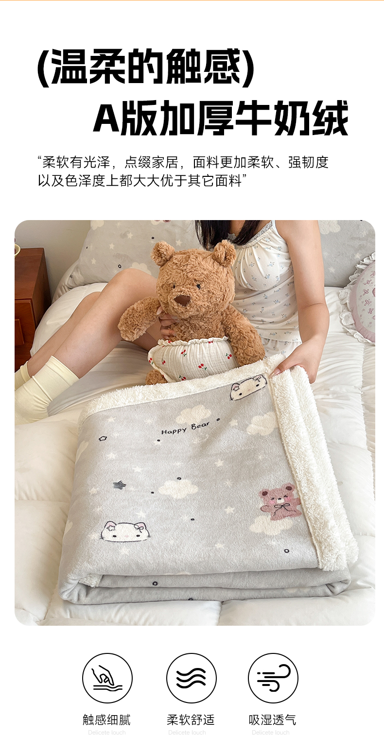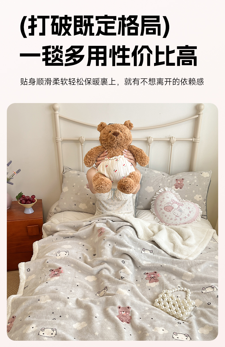 商品名称:红嘴企鹅 2025新款A类ins风卡通可爱加厚牛奶绒羊羔绒毛毯毯子办公室沙发儿童空调盖毯午休毯 星云小熊