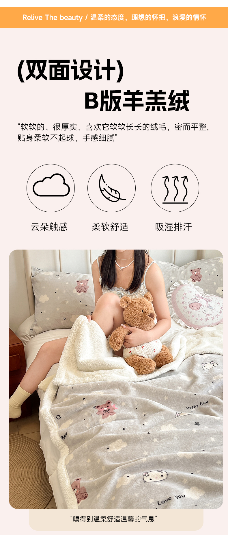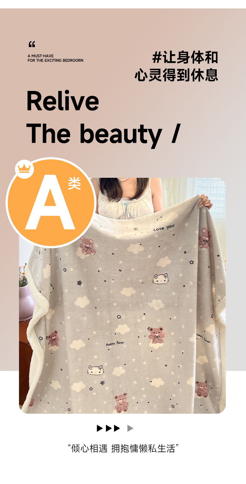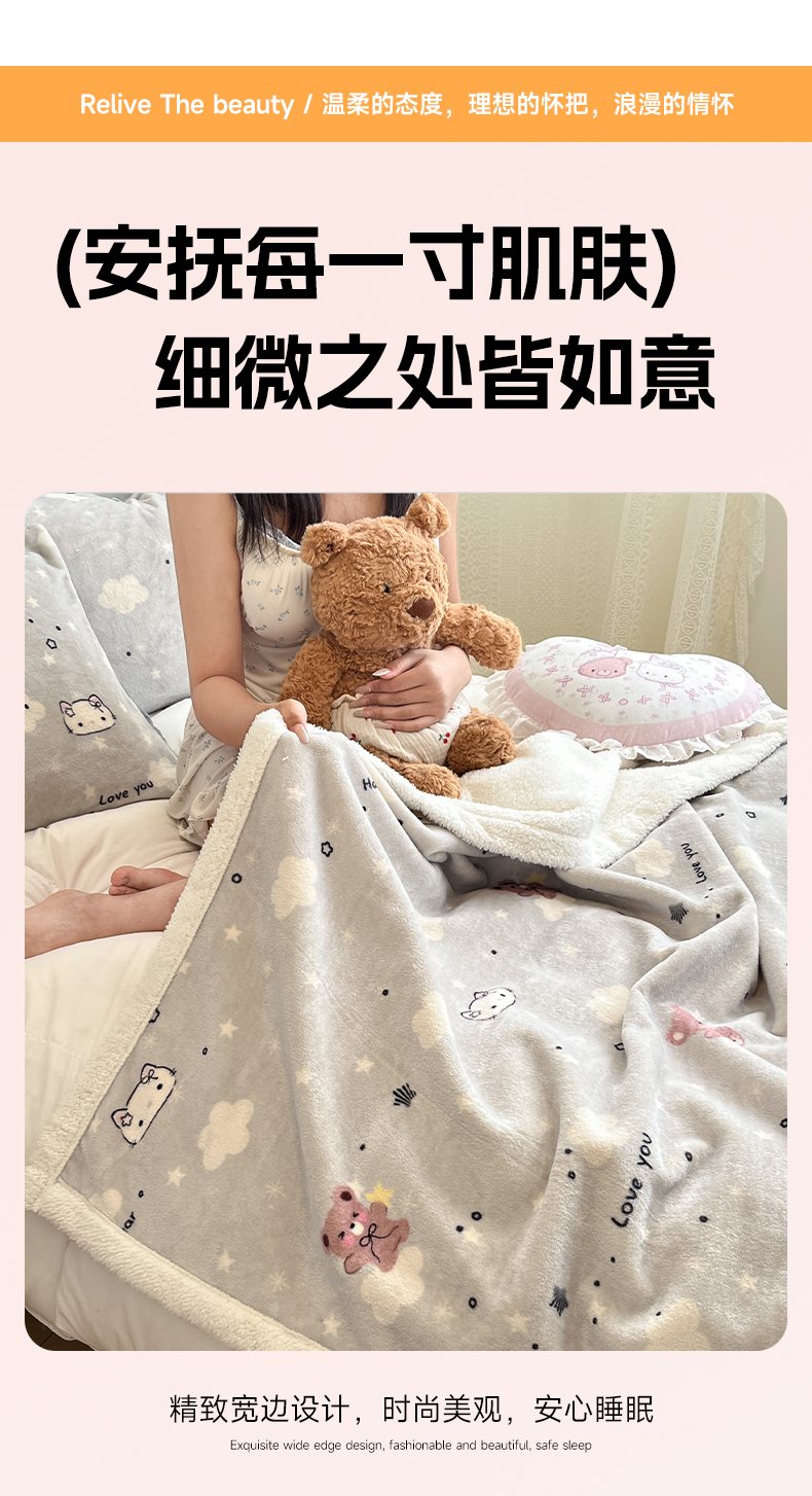 商品名称:红嘴企鹅 2025新款A类ins风卡通可爱加厚牛奶绒羊羔绒毛毯毯子办公室沙发儿童空调盖毯午休毯 星云小熊