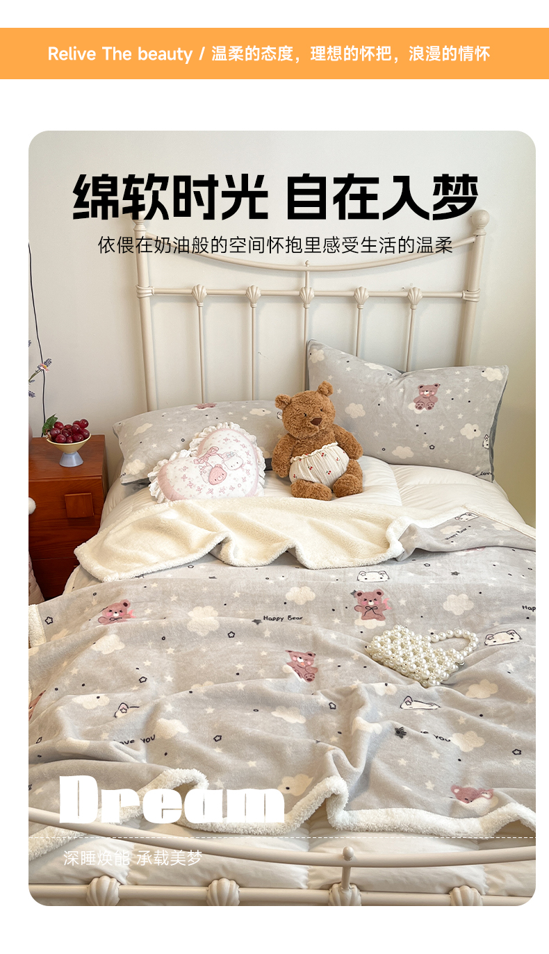 (总)红嘴企鹅 2025新款花边加厚牛奶绒单品床盖单件床盖三件套,波点狗,波点猫,大力,蛋糕狗,点心,蝶梦,动物乐园,蝴蝶狗狗,可爱比熊,萌萌熊,梦幻小熊,摩卡熊,奶油狗,平安猫,棋盘狗,少女猫咪,生日Party,圣诞老人,圣诞猫,淘气狗,小星甜点,星星乐园,星云小熊,羞羞猫,字母熊