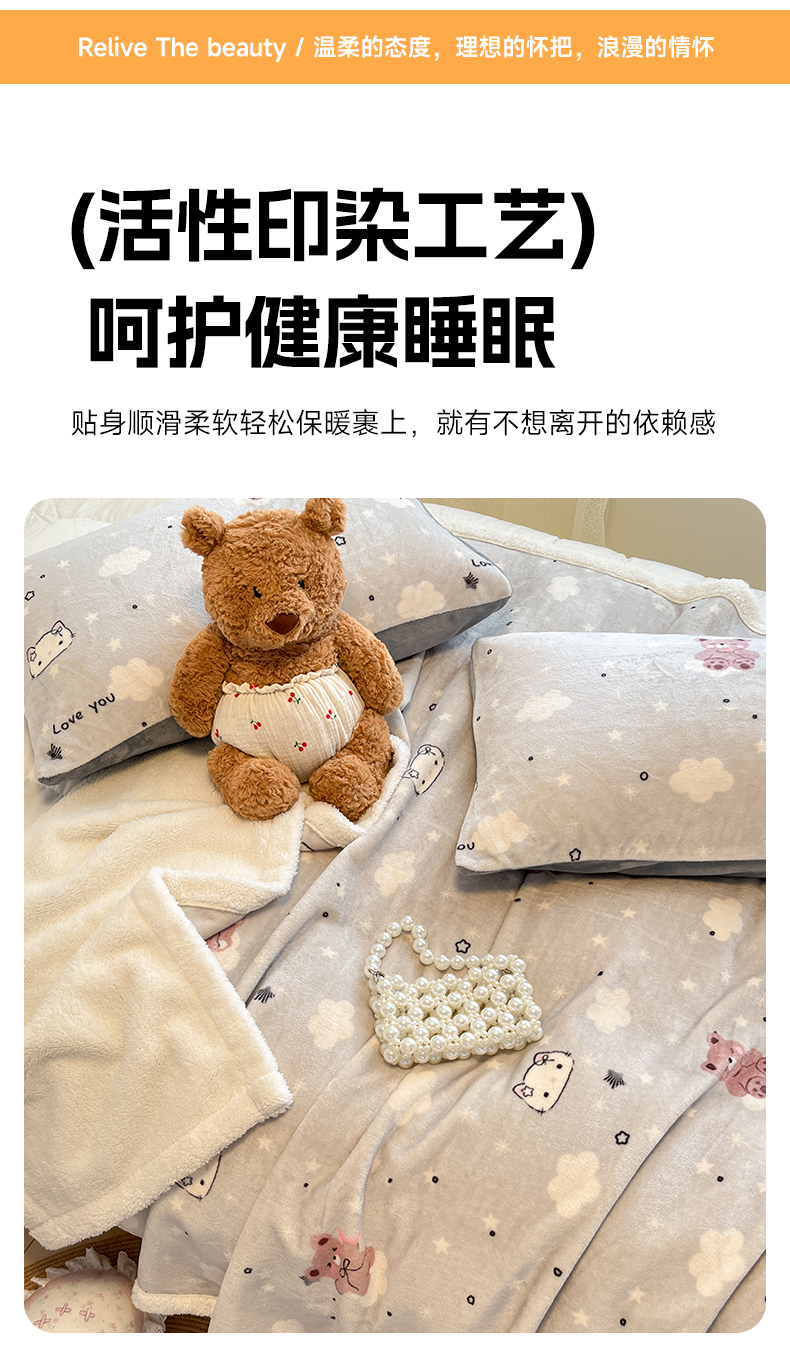 (总)红嘴企鹅 2025新款北欧良品牛奶绒四件套,良品橙色,良品粉色,良品灰色,良品蓝色,良品木绿,良品奶白,良品紫色