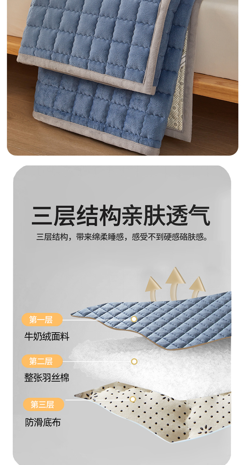 芊梵床垫 2025新款牛奶绒褥子系列-无烫画版 宾利蓝