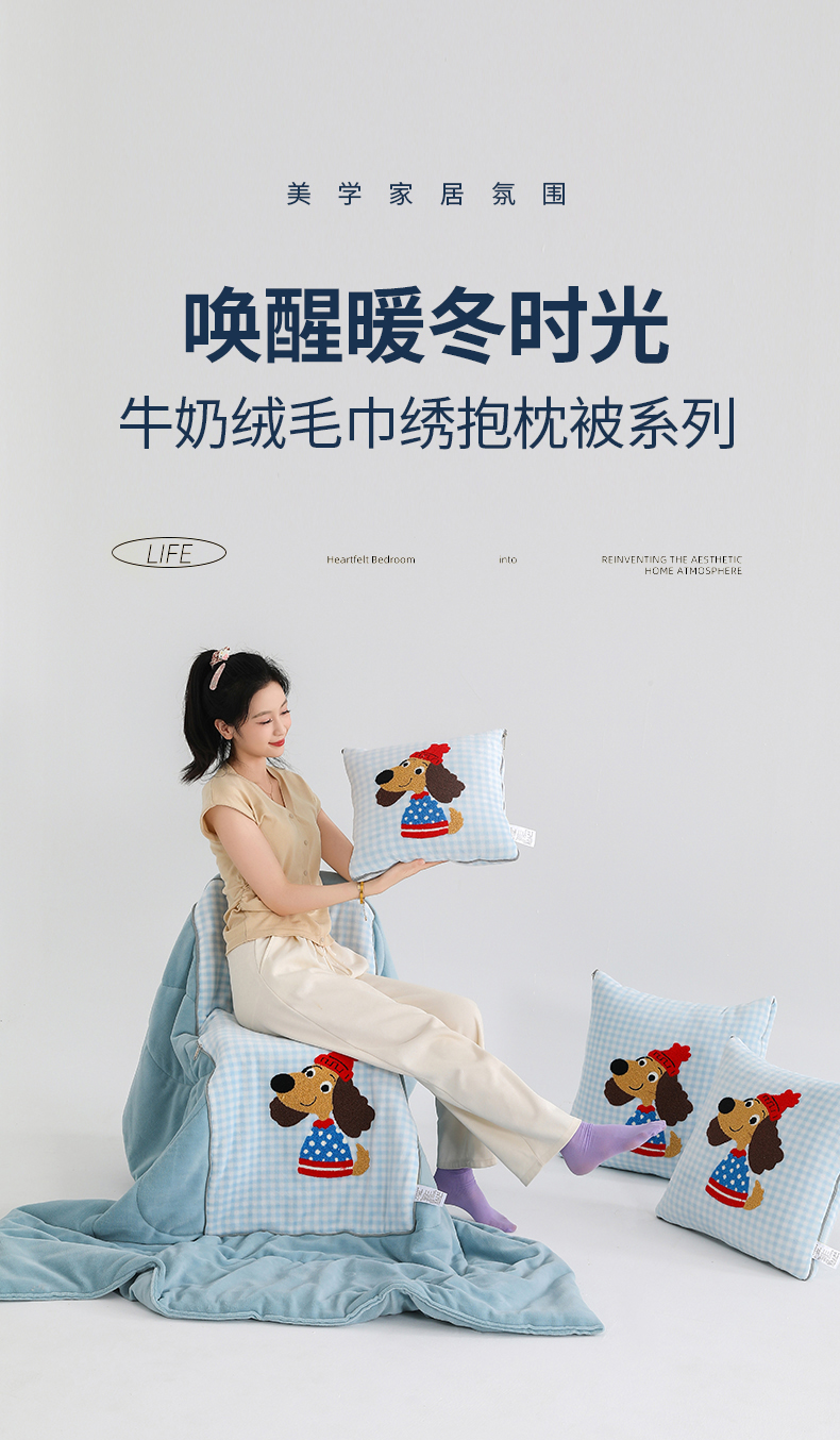 商品名称:(总)翰轩家居 2025新款卡通牛奶绒抱枕被毛巾绣系列