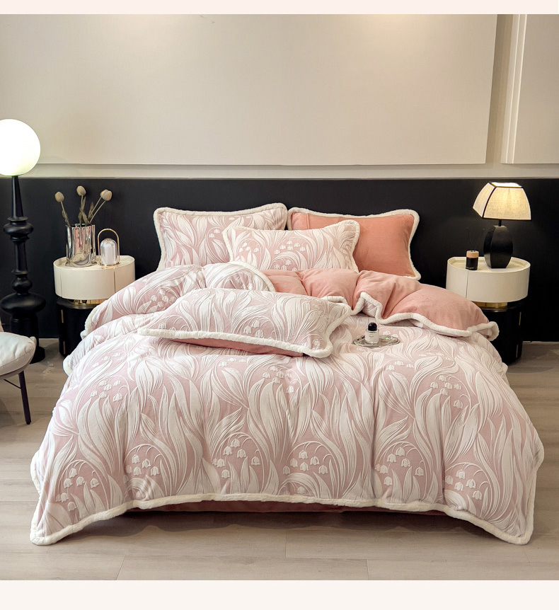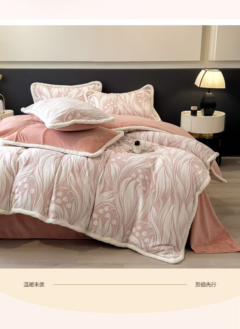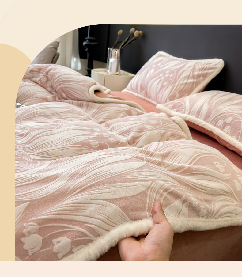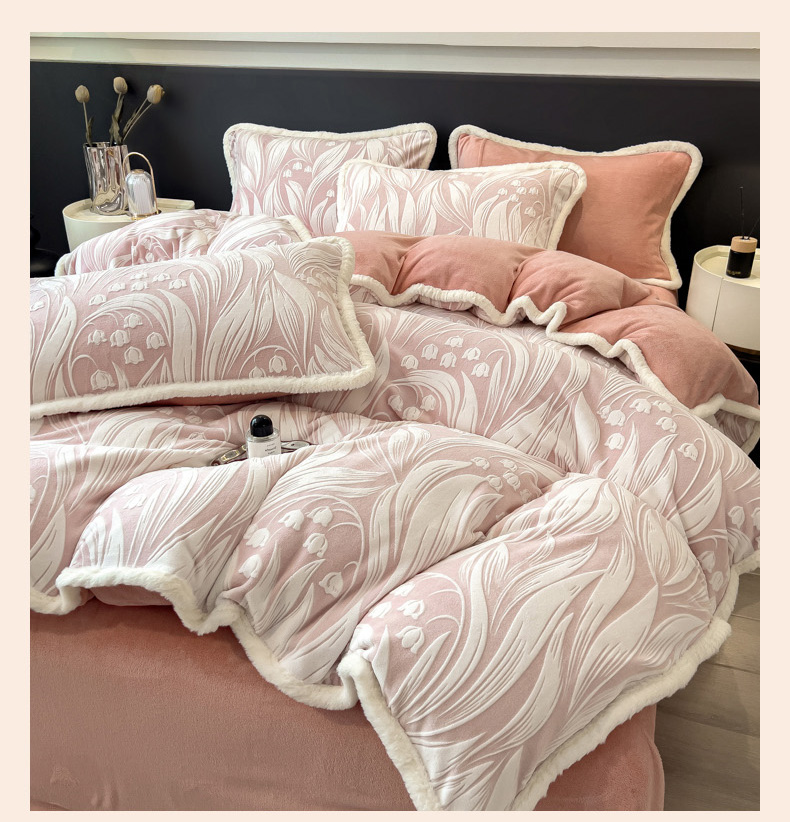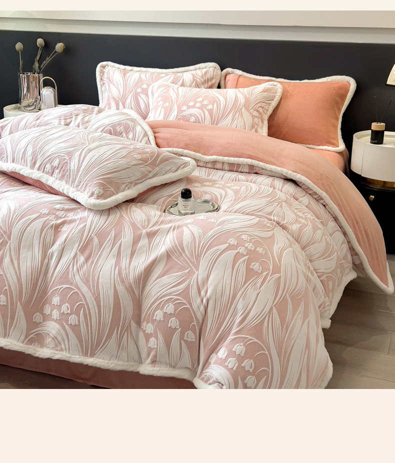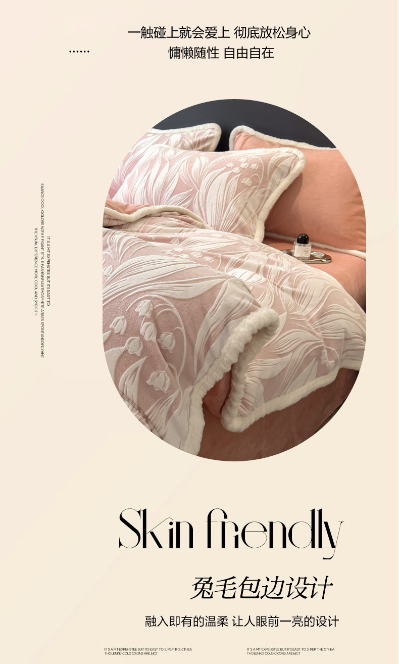 当前位置: 91家纺网 > 商品网购 > 床品套件 > 四件套 > 兔毛绒四件套 > 印季家纺 2025新款法式立体雕花绒兔毛包边四件套 铃兰梦境-粉