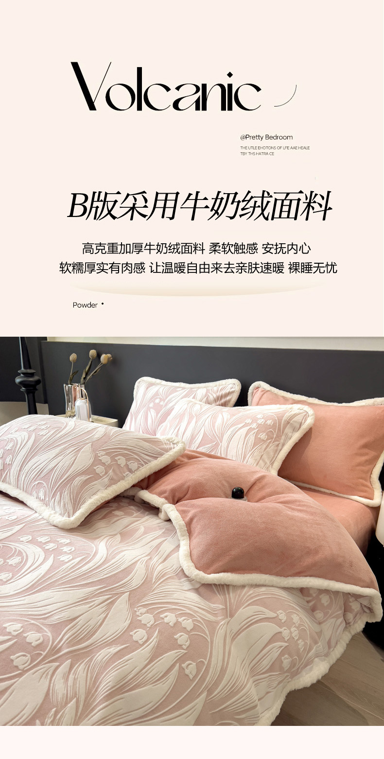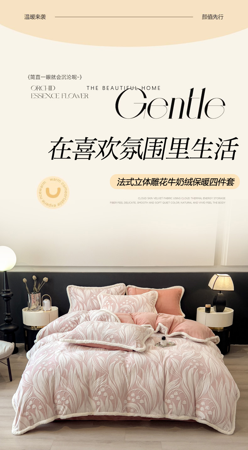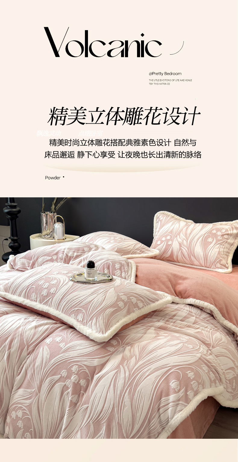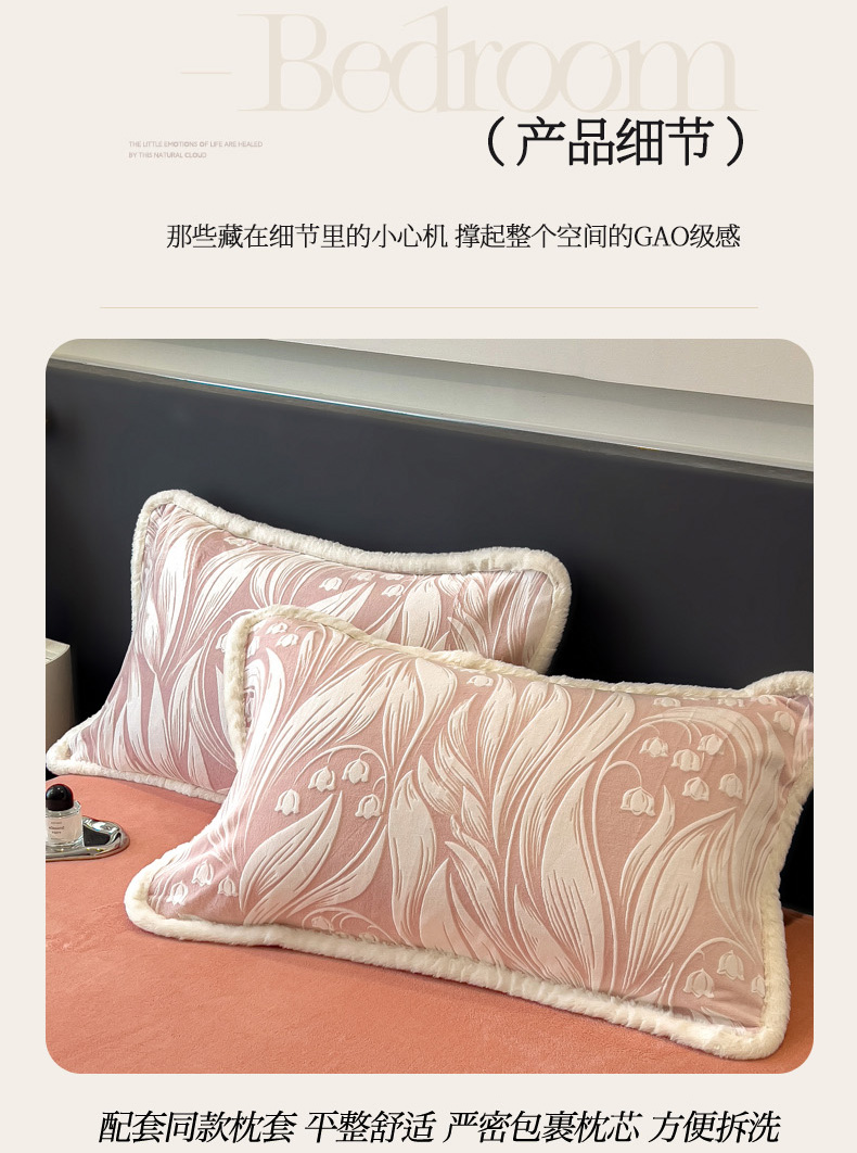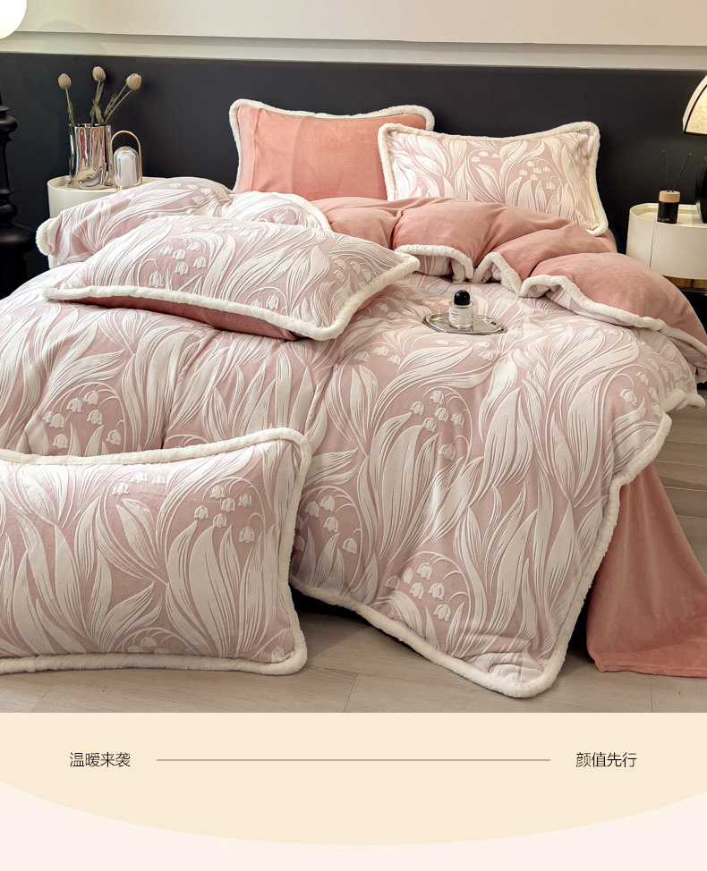 当前位置: 91家纺网 > 商品网购 > 床品套件 > 四件套 > 兔毛绒四件套 > 印季家纺 2025新款法式立体雕花绒兔毛包边四件套 铃兰梦境-粉