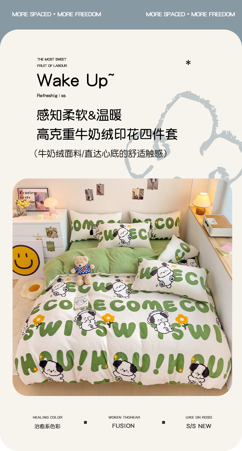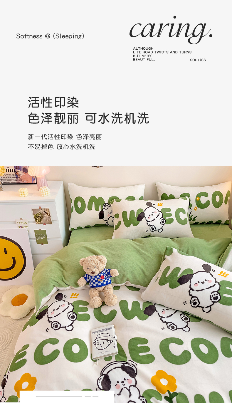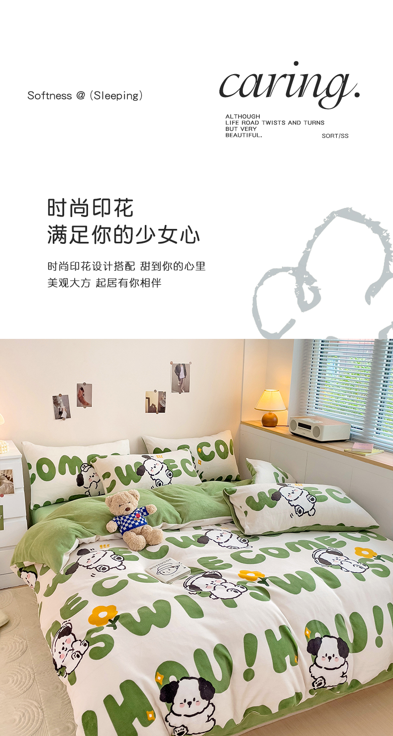 当前位置: 91家纺网 > 商品网购 > 床品套件 > 四件套 > 牛奶绒四件套 > 西引力 2025新款亲肤舒适加厚牛奶绒印花四件套 欢乐萌宠