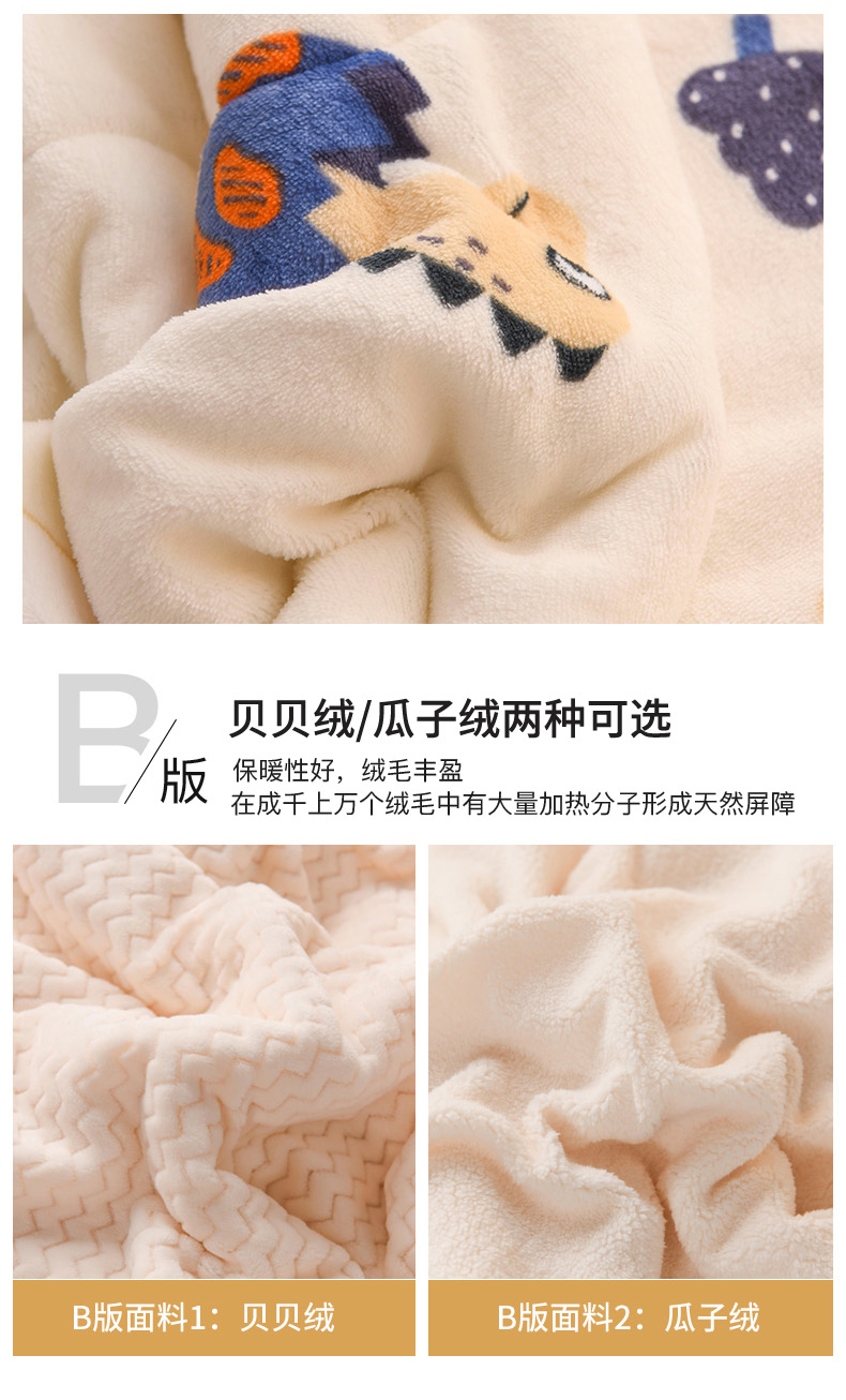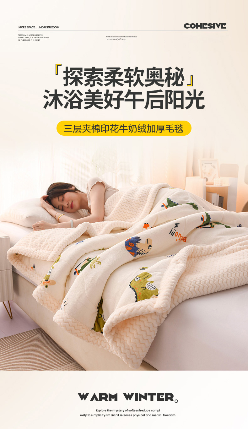 商品名称:印季家纺 2025新款三层夹棉印花牛奶绒毛毯毯子 趣味恐龙