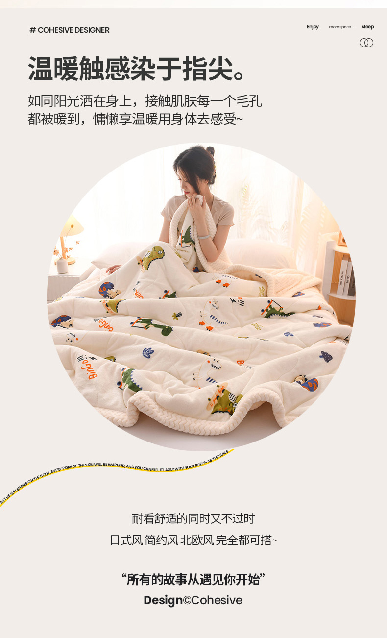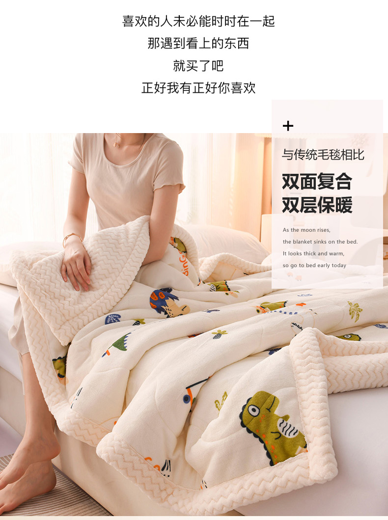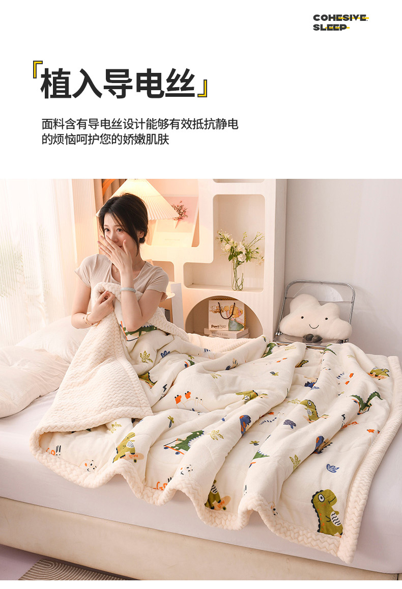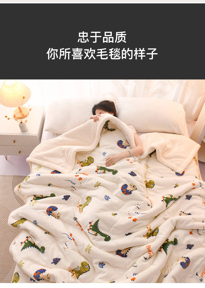 印季家纺 2025新款三层夹棉印花牛奶绒毛毯毯子 趣味恐龙