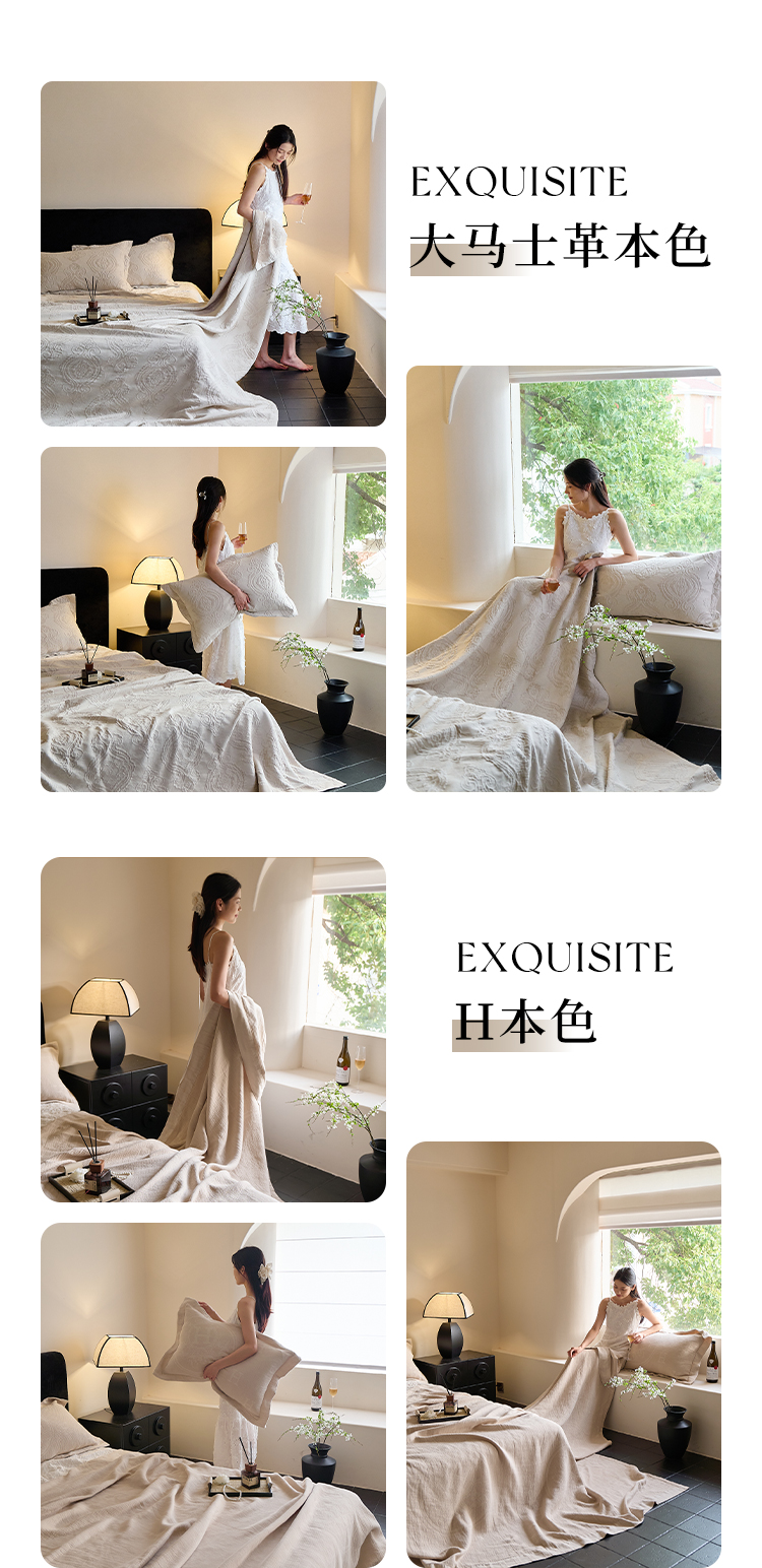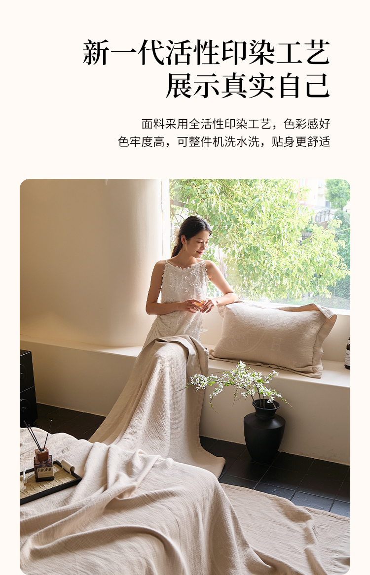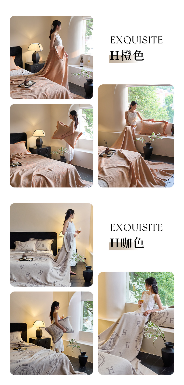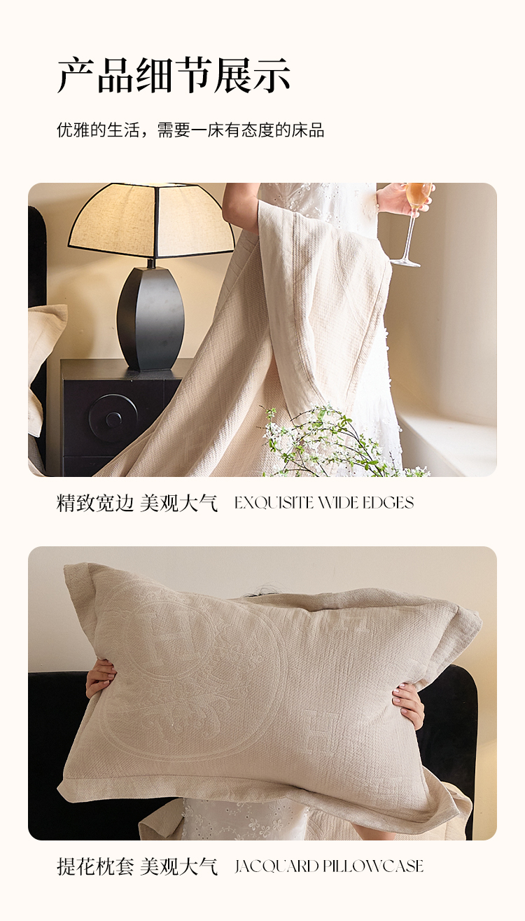 (总)沐瑟家纺 2025新款简约风多功能纱布盖毯纱布毯子毛巾被床盖沙发巾单毯枕巾枕套三件套,H本色,H橙色,H咖色,大马士革本色