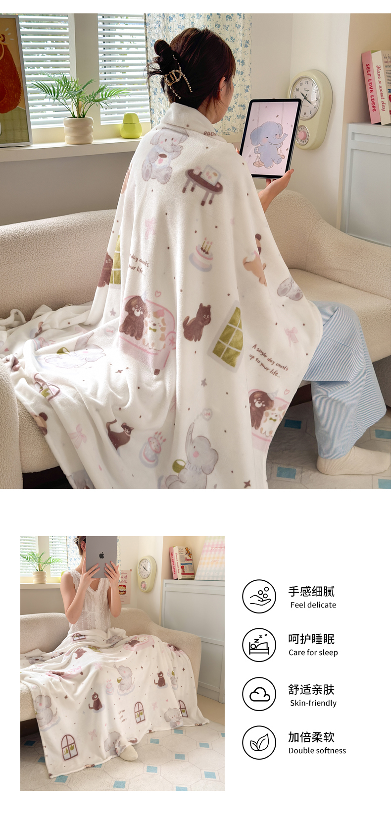 商品名称:沐芷 2025 A类牛奶绒毛毯印花盖毯毛毯午休毯卡通多功能沙发毯空调毯 提供买家秀(下载文件包,包含买家秀) 【绒】软萌小象