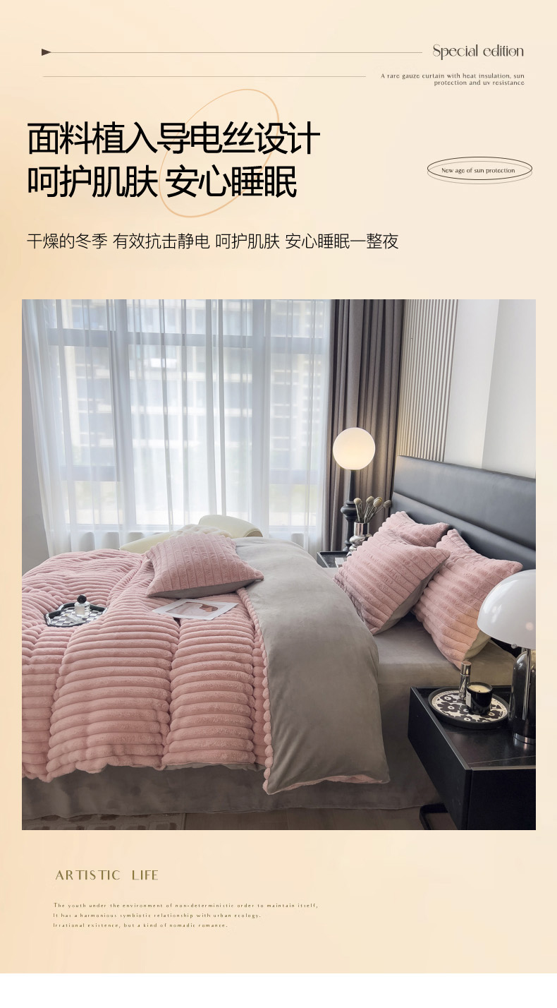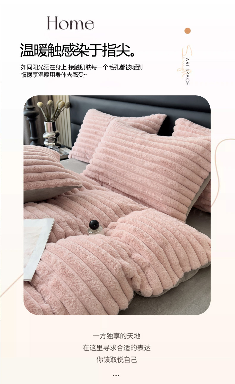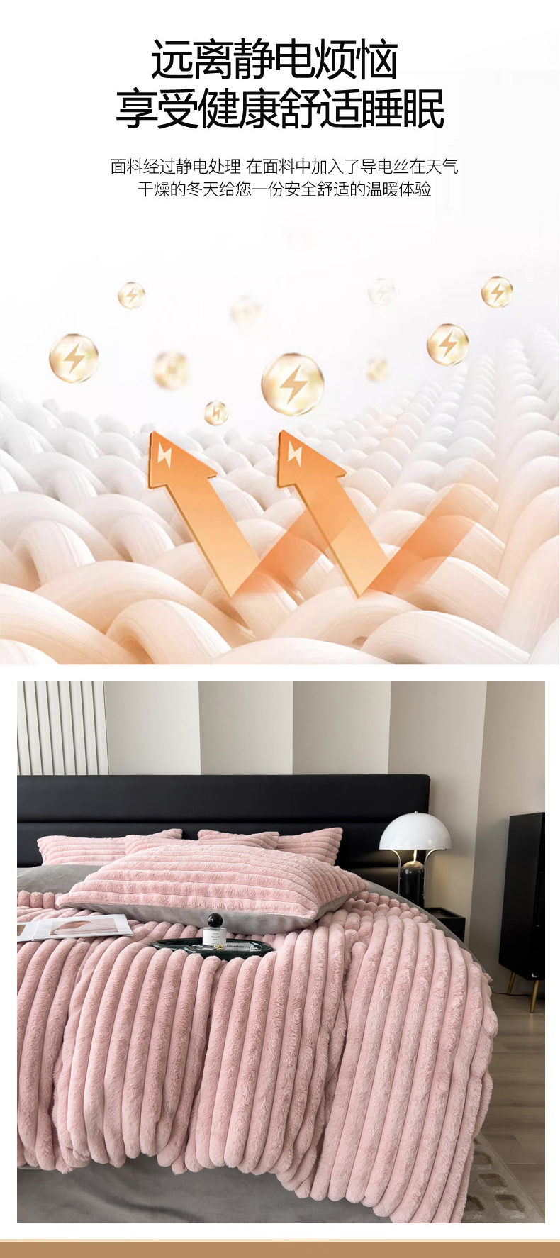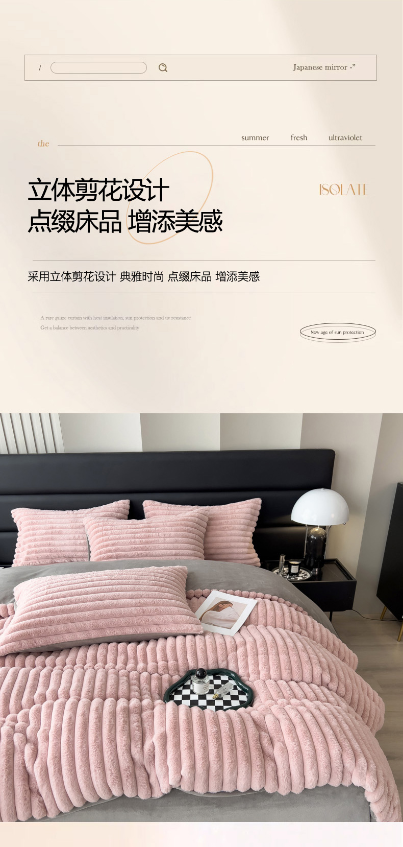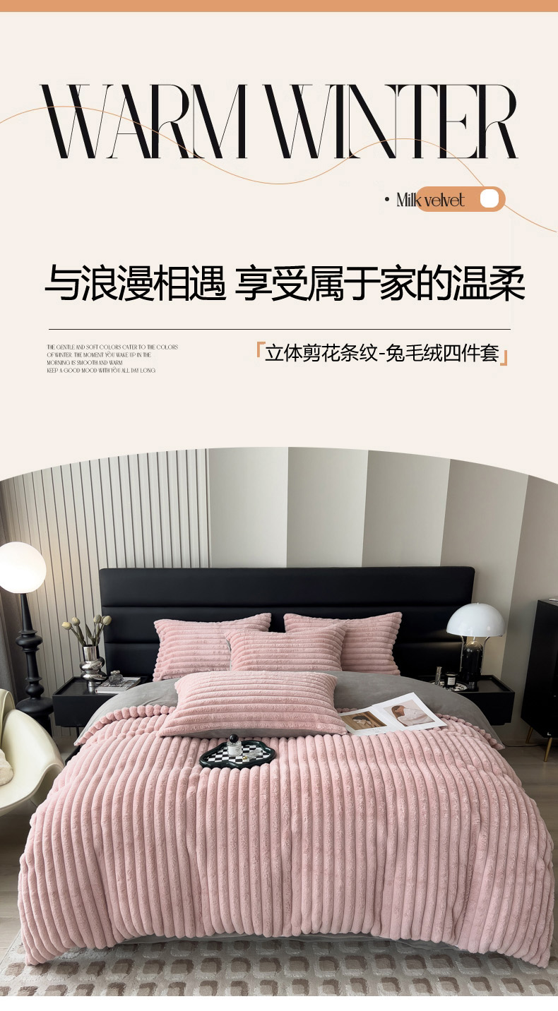 当前位置: 91家纺网 > 商品网购 > 床品套件 > 四件套 > 兔毛绒四件套 > 印季家纺 2025新款立体剪花条纹兔毛绒四件套 豆沙-灰