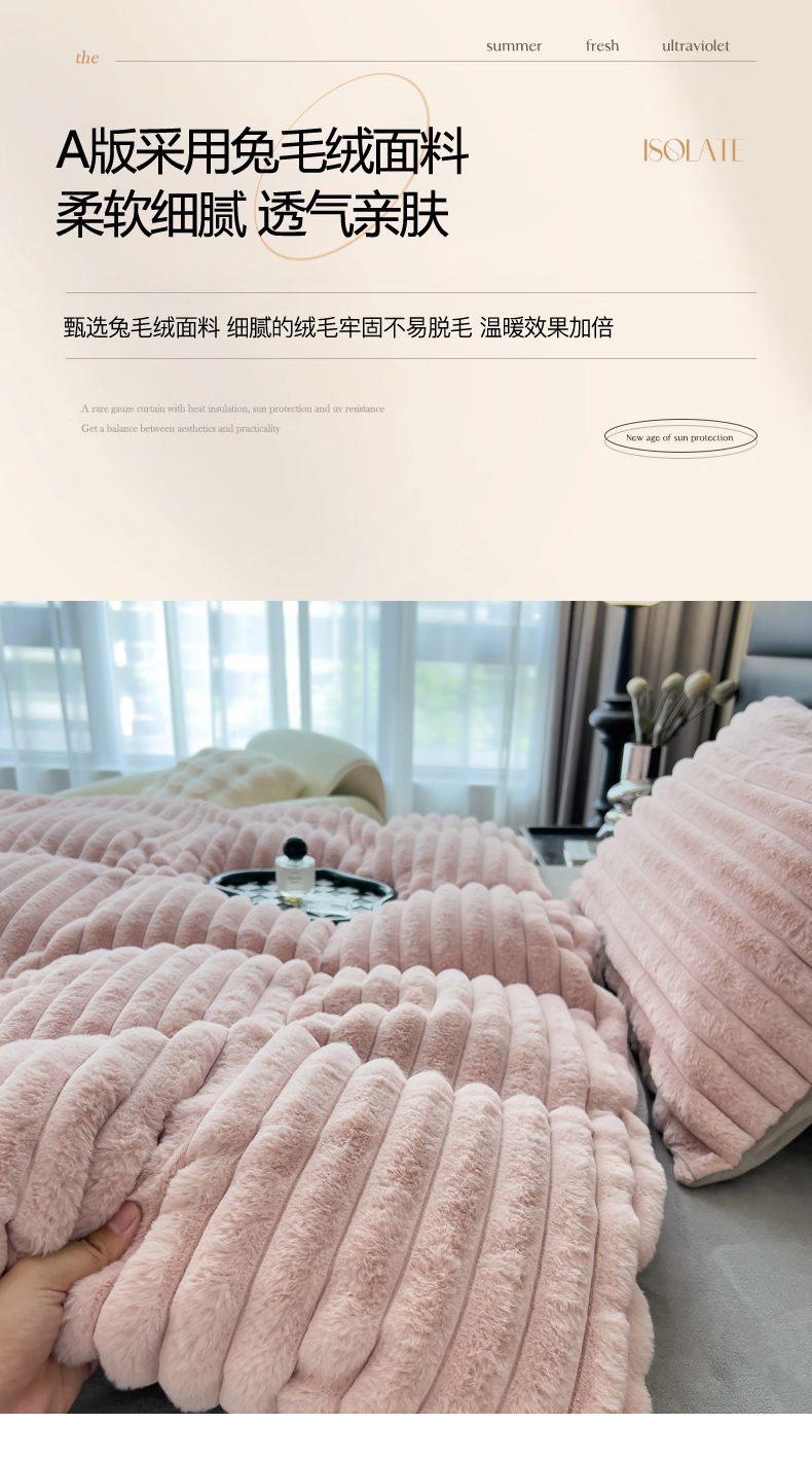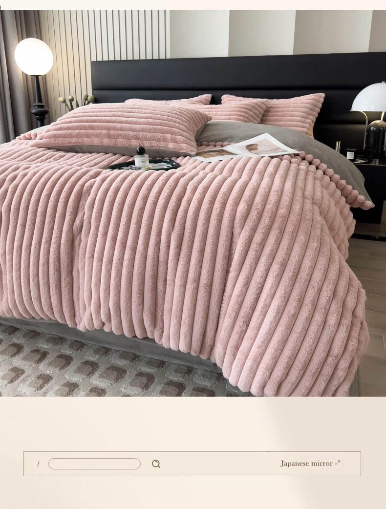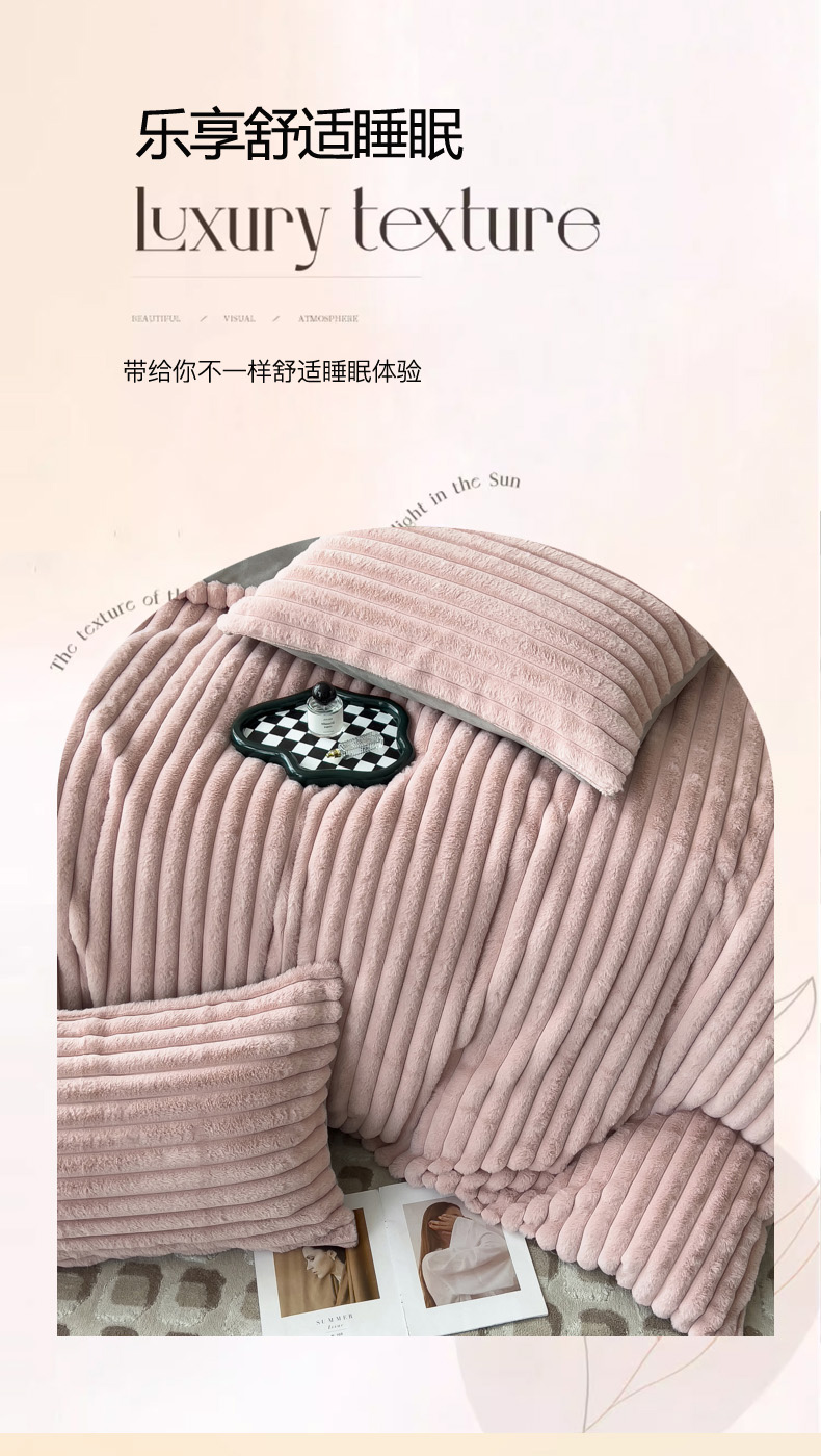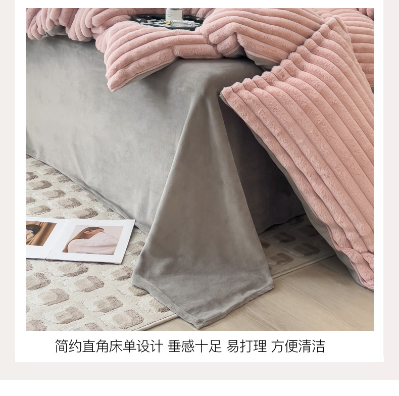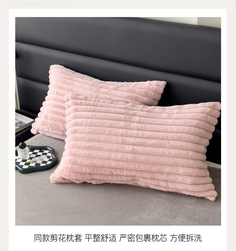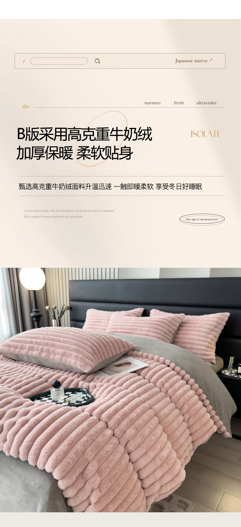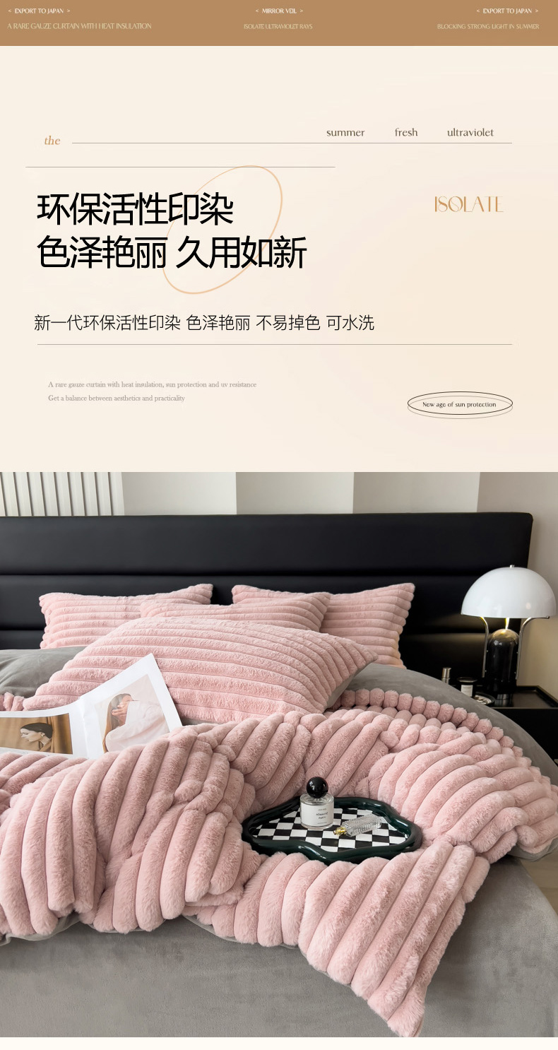 当前位置: 91家纺网 > 商品网购 > 床品套件 > 四件套 > 兔毛绒四件套 > 印季家纺 2025新款立体剪花条纹兔毛绒四件套 豆沙-灰