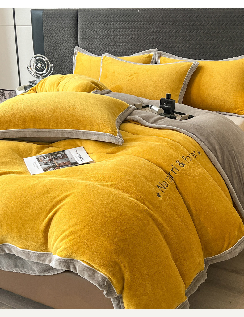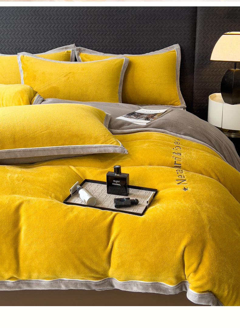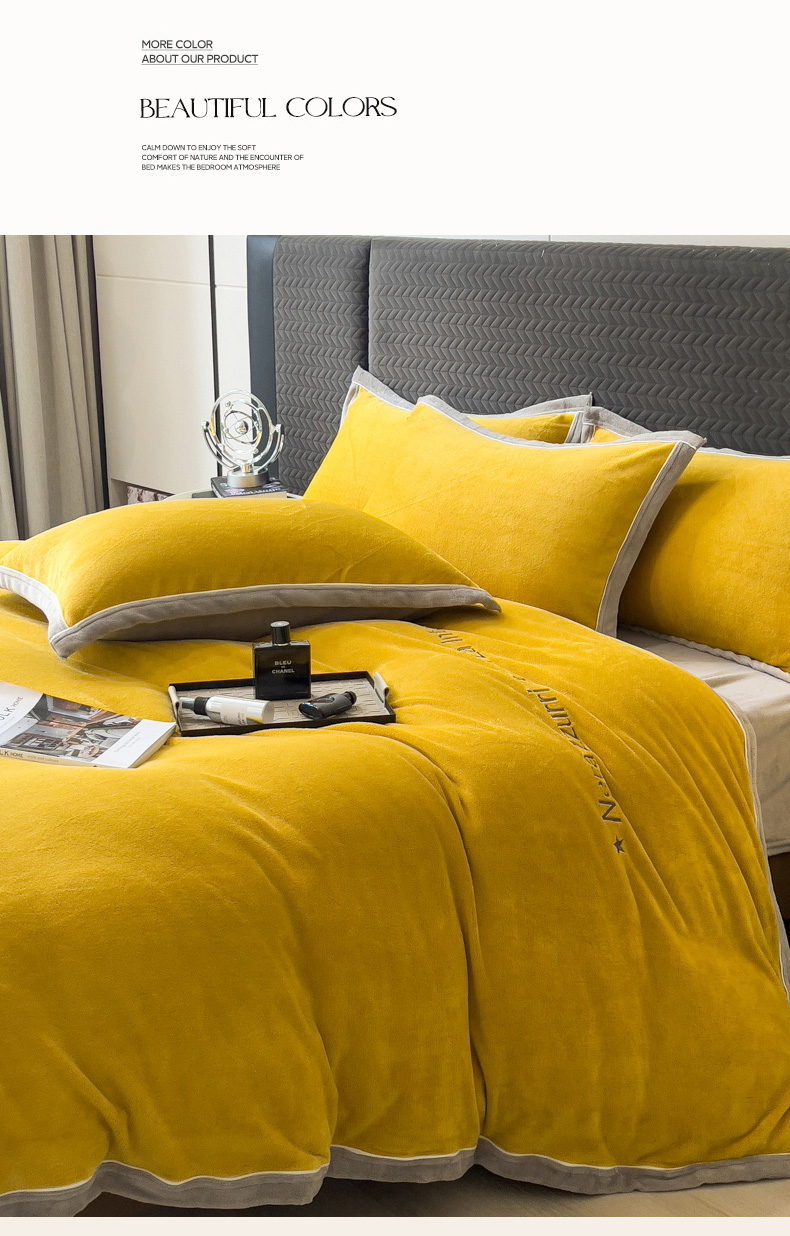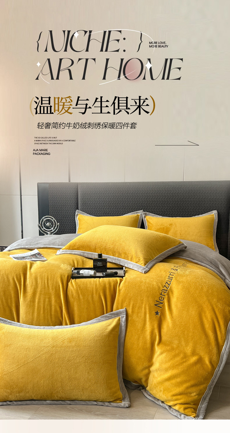 当前位置: 91家纺网 > 商品网购 > 床品套件 > 四件套 > 牛奶绒四件套 > 印季家纺 2025新款牛奶绒两星绣花包边四件套 姜黄-马丁灰