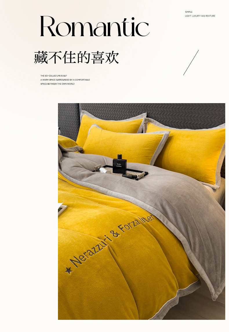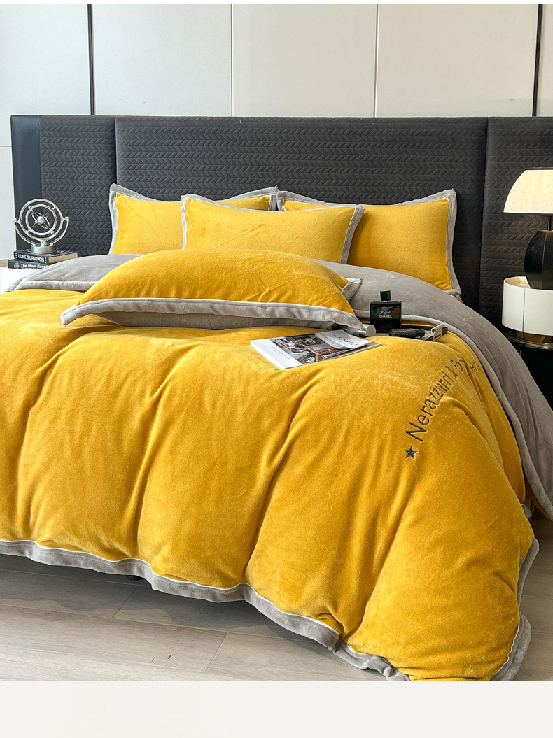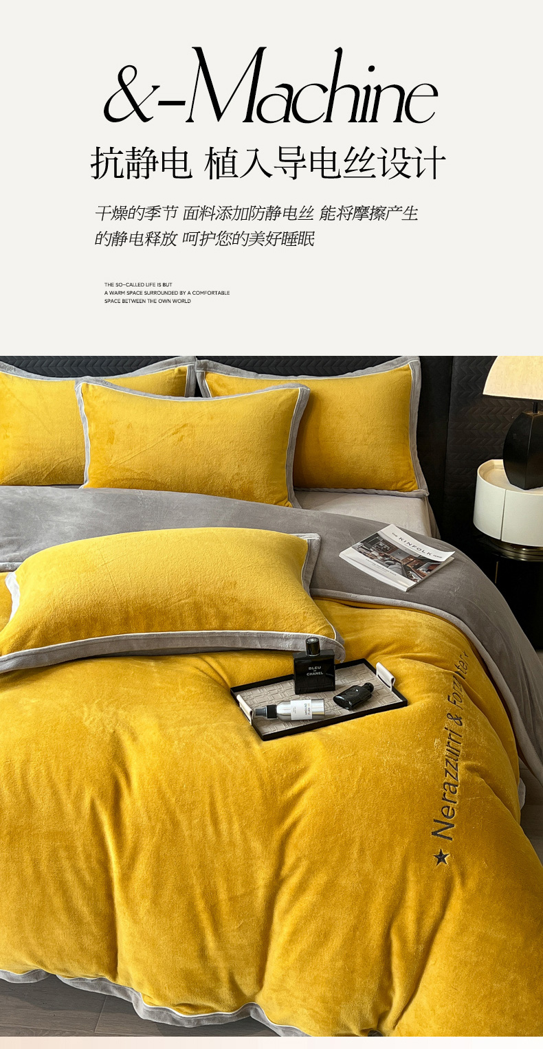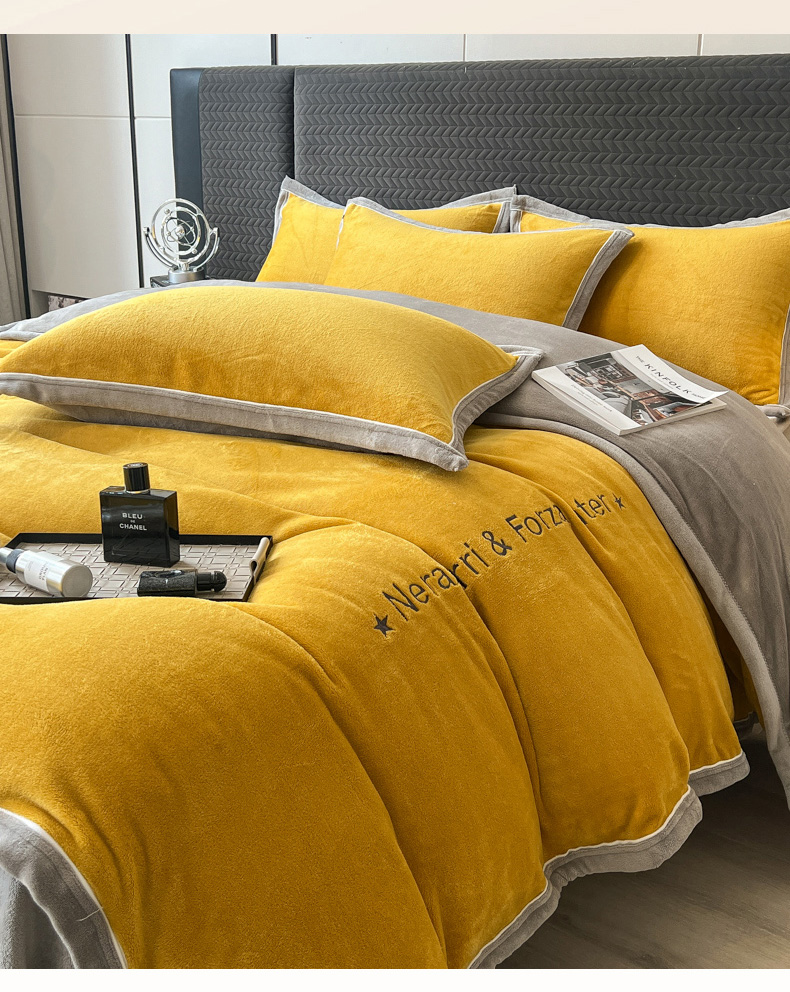当前位置: 91家纺网 > 商品网购 > 床品套件 > 四件套 > 牛奶绒四件套 > 印季家纺 2025新款牛奶绒两星绣花包边四件套 姜黄-马丁灰
