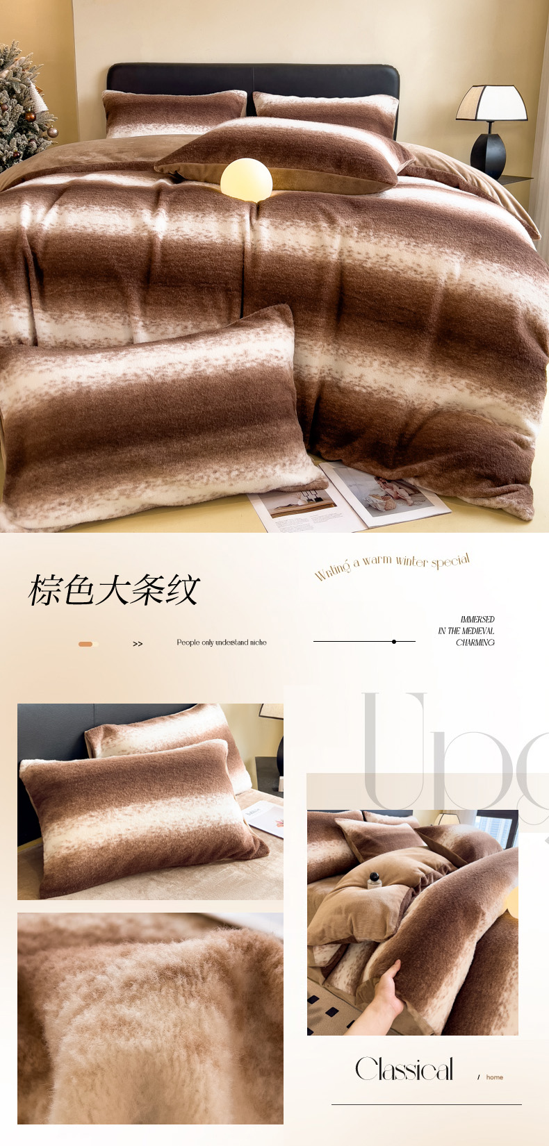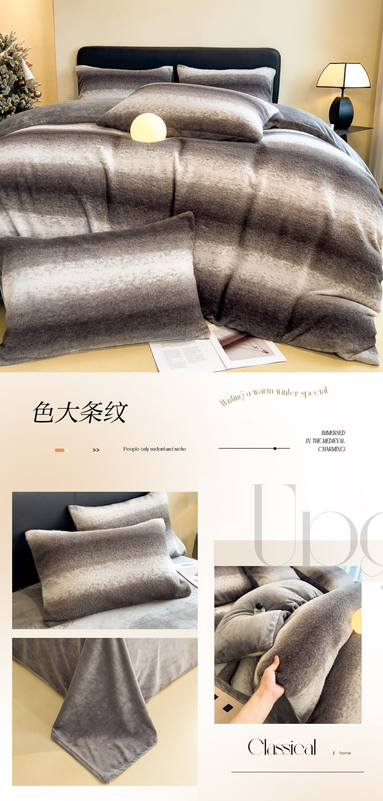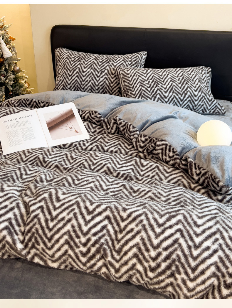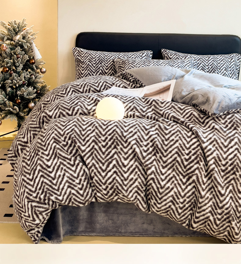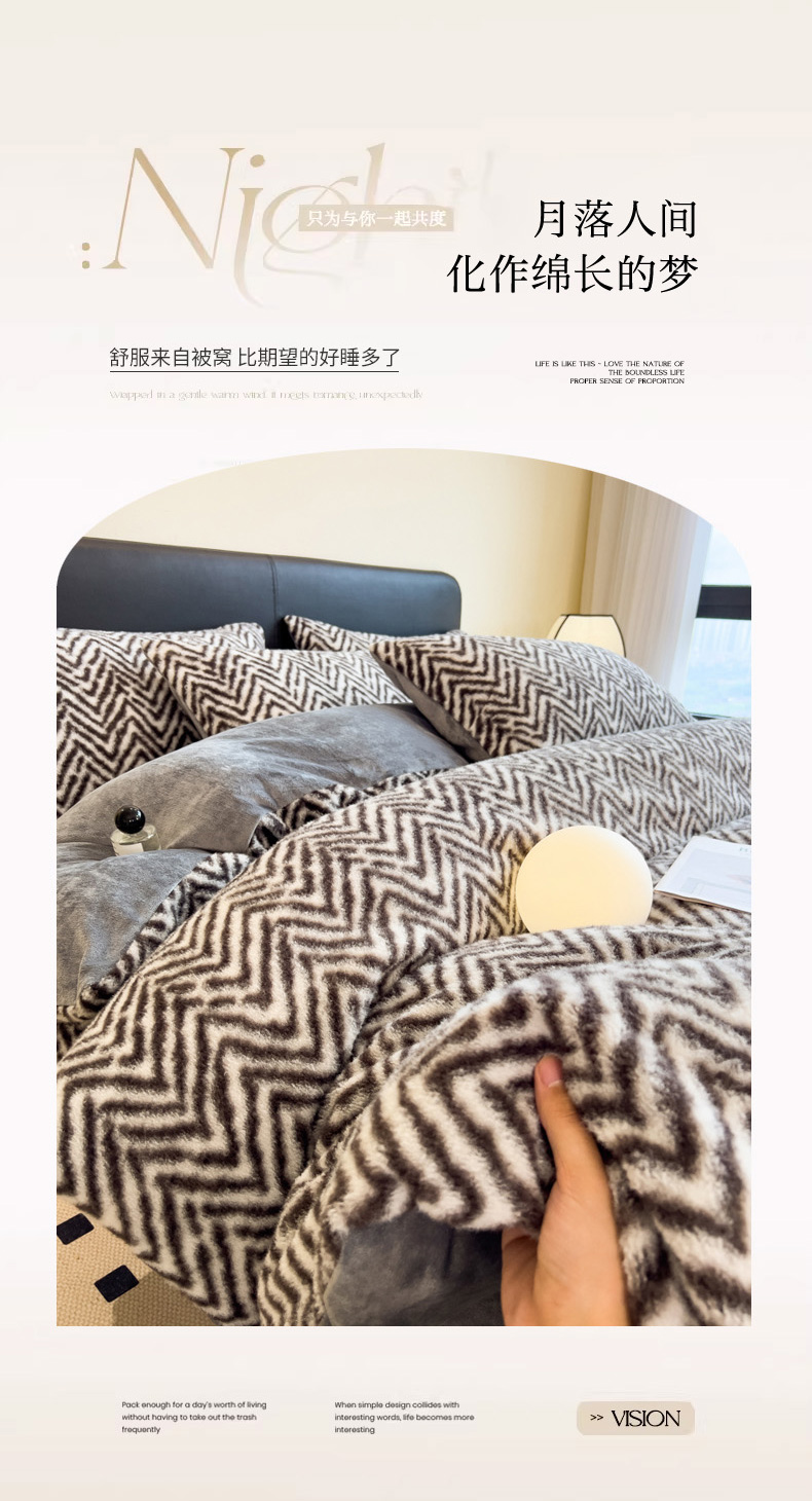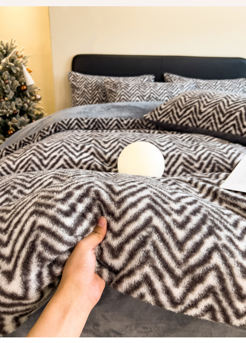 当前位置: 91家纺网 > 商品网购 > 床品套件 > 四件套 > 其它四件套 > 印季家纺 2025新款轻奢简约羊呢绒亲肤保暖四件套 灰色波浪