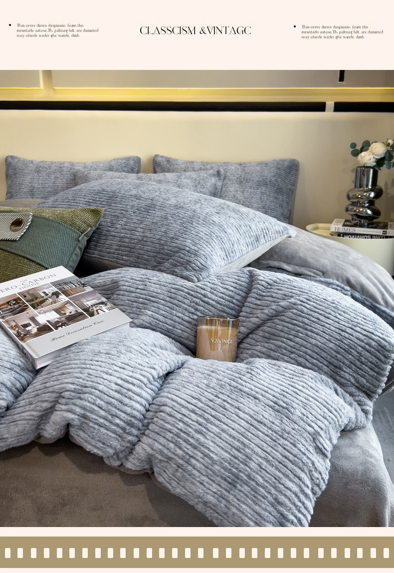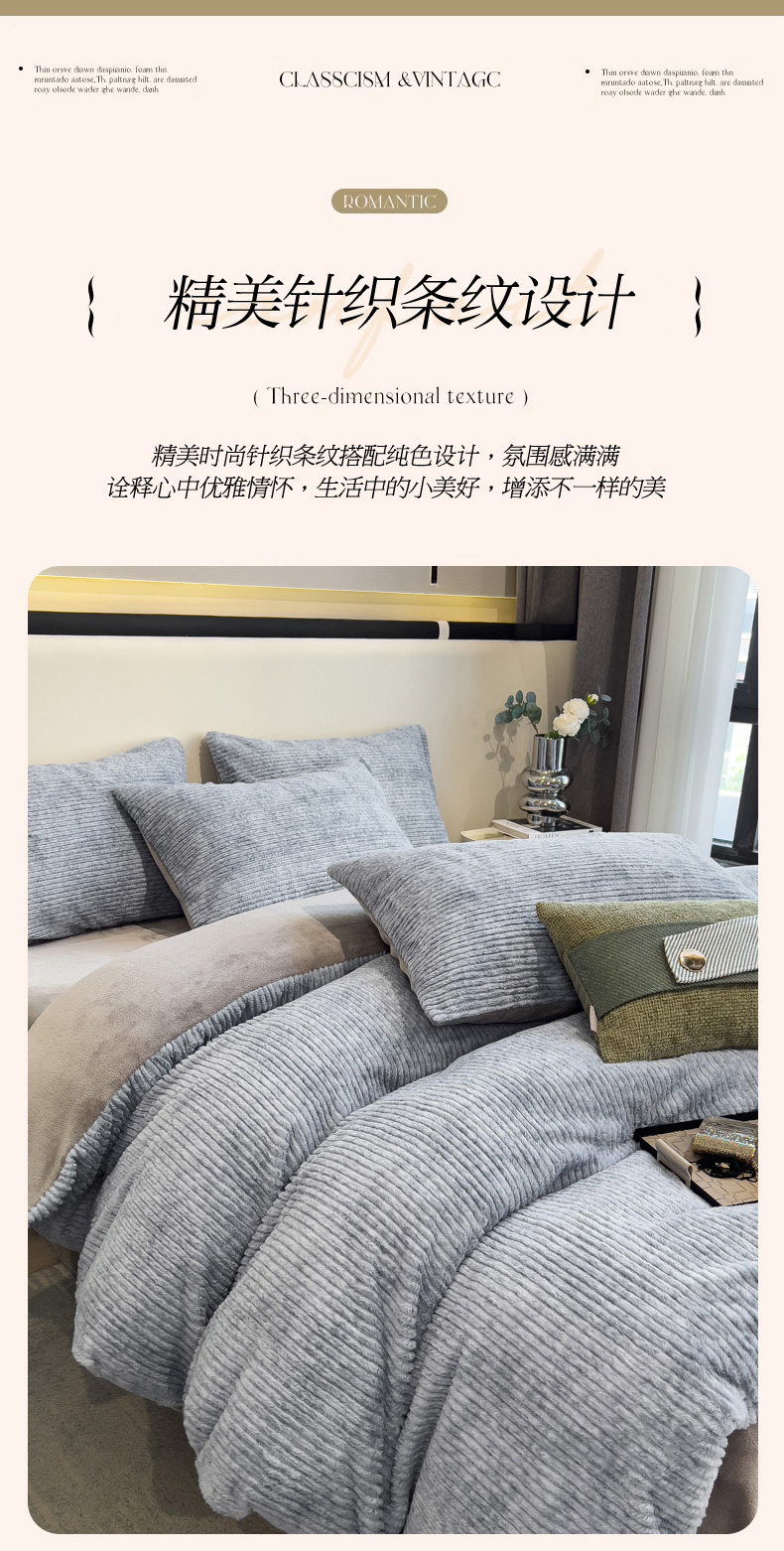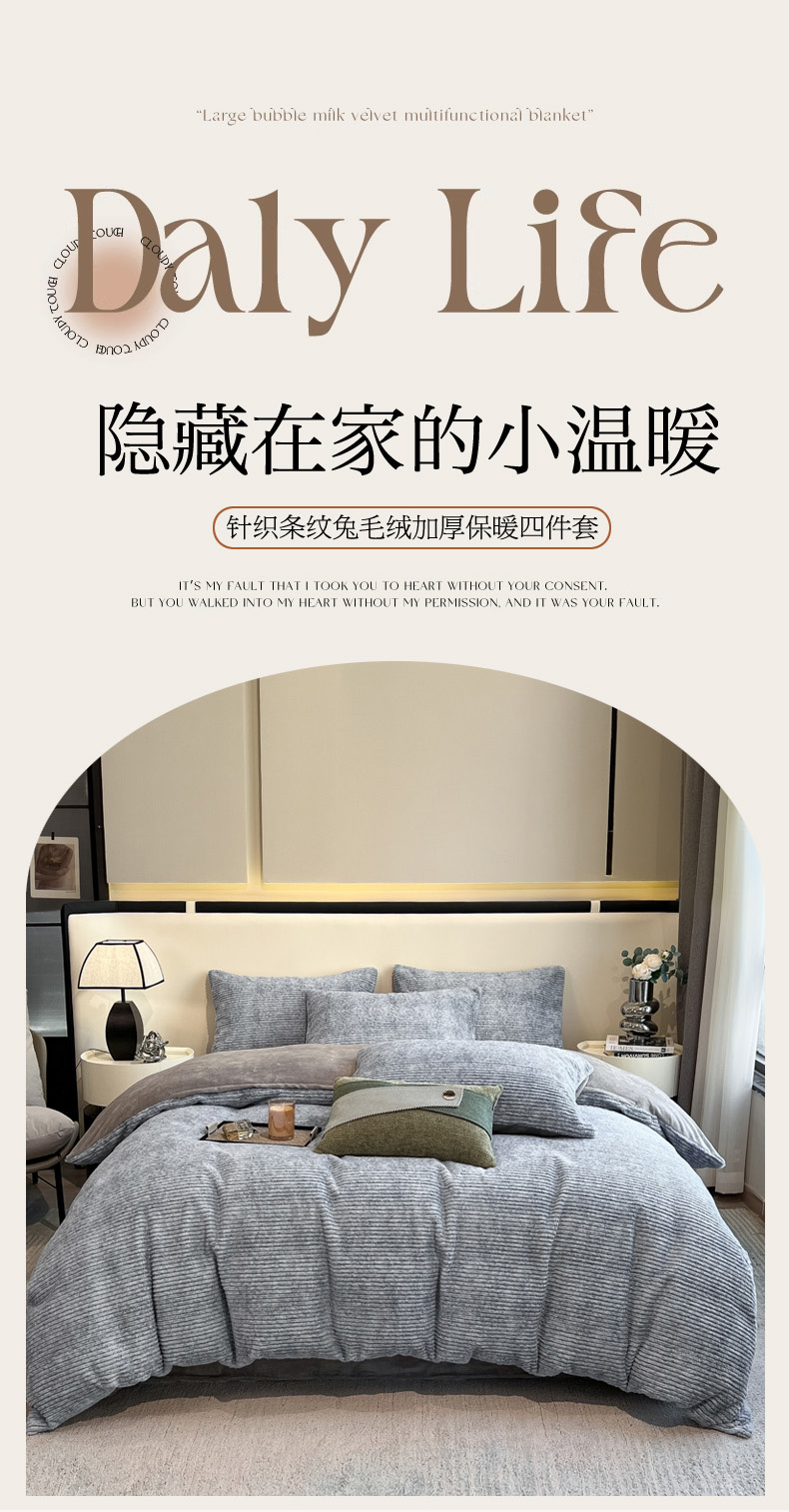 当前位置: 91家纺网 > 商品网购 > 床品套件 > 四件套 > 其它四件套 > 印季家纺 2025新款针织兔毛条纹四件套 蓝灰-马丁灰