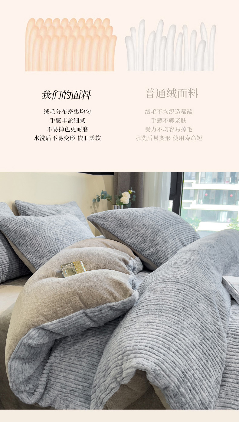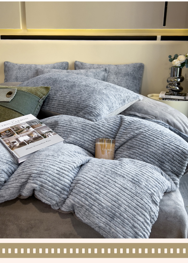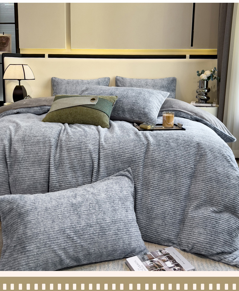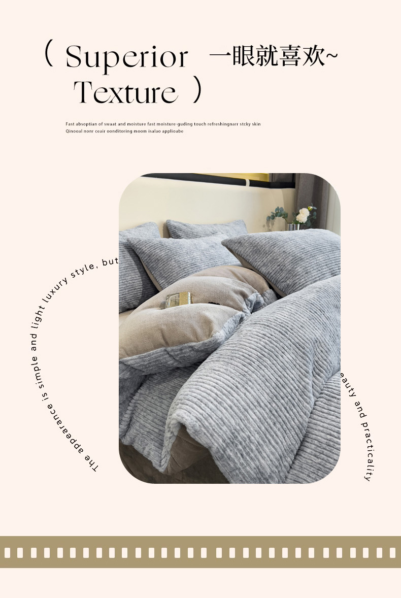 当前位置: 91家纺网 > 商品网购 > 床品套件 > 四件套 > 其它四件套 > 印季家纺 2025新款针织兔毛条纹四件套 蓝灰-马丁灰